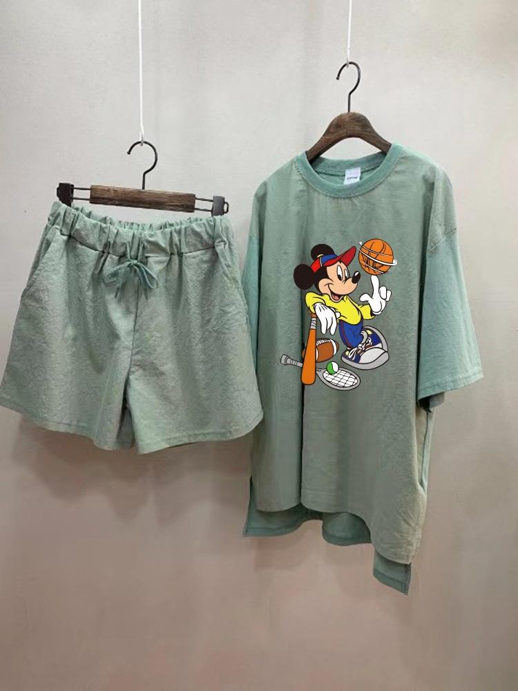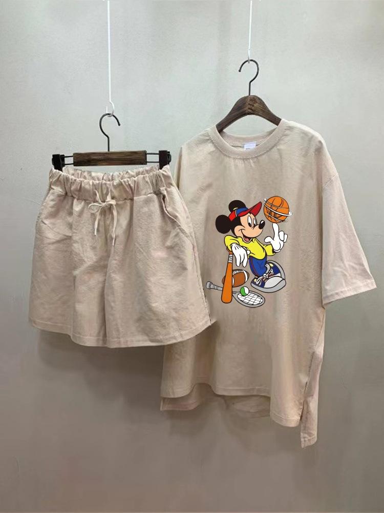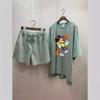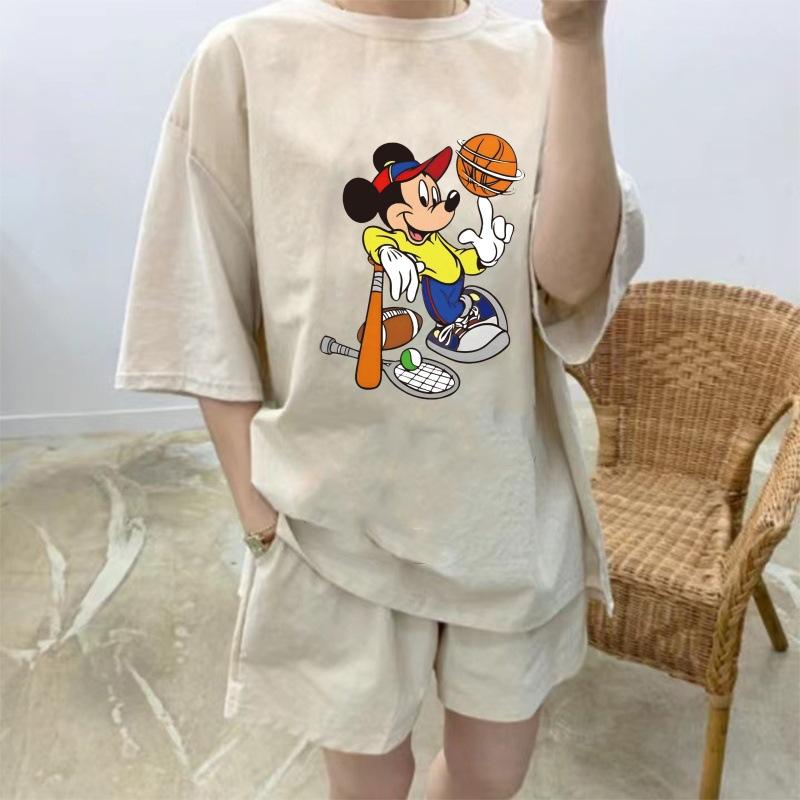 ¡Alto sentido! Traje Deportivo Casual Cómodo para Mujer Verano Holgado Cómodo Shorts Manga Corta Conjunto de Dos Piezas Moderno Blanco