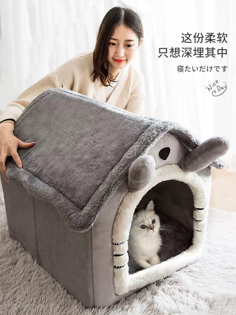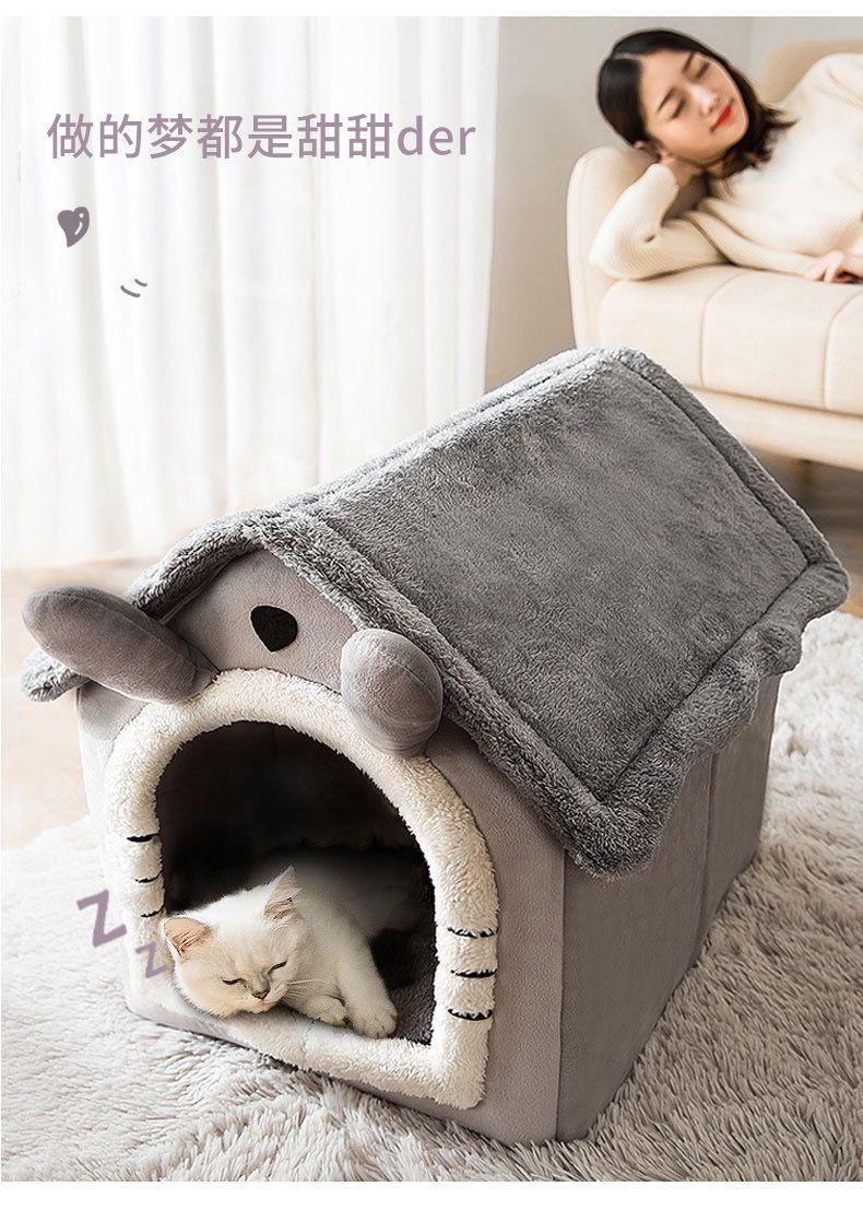 Nido para gatos, caseta para perros, linda casa para gatos, extraíble y lavable, nido cerrado para mascotas, cuatro estaciones, universal, cálido para invierno.