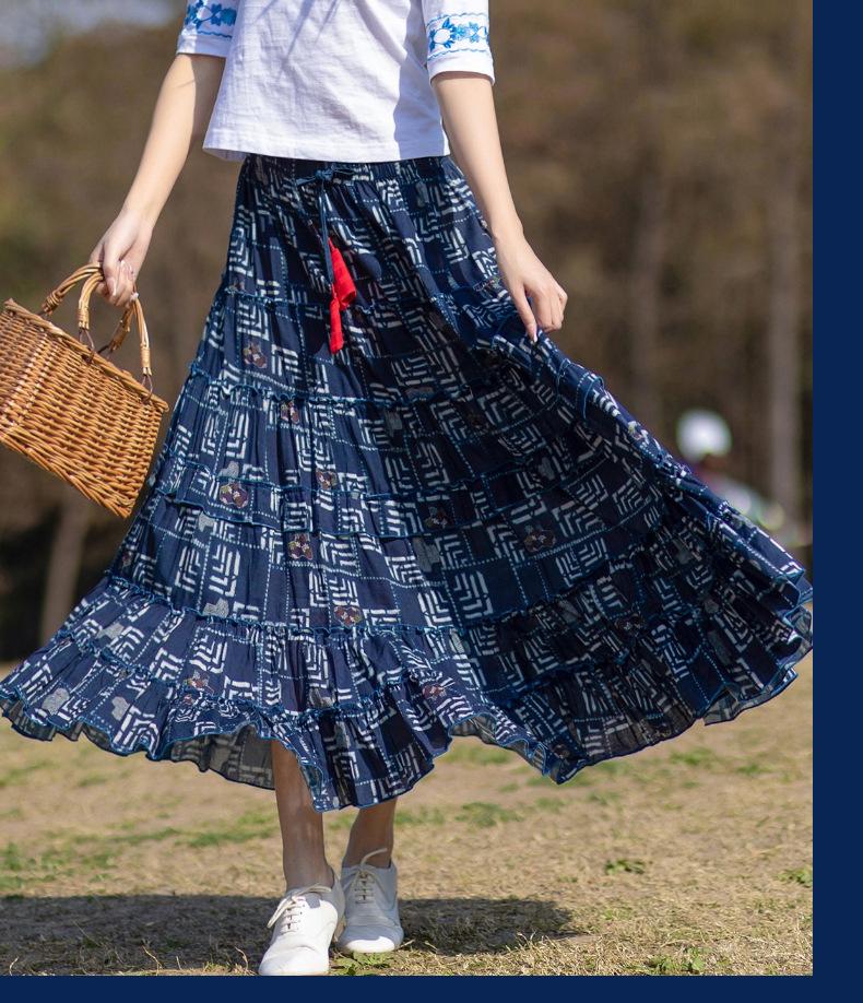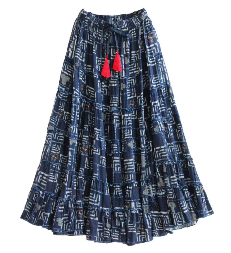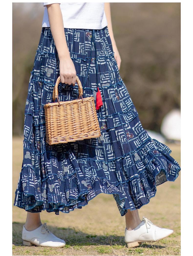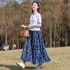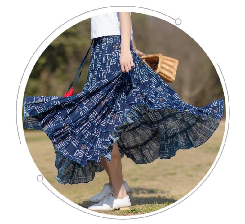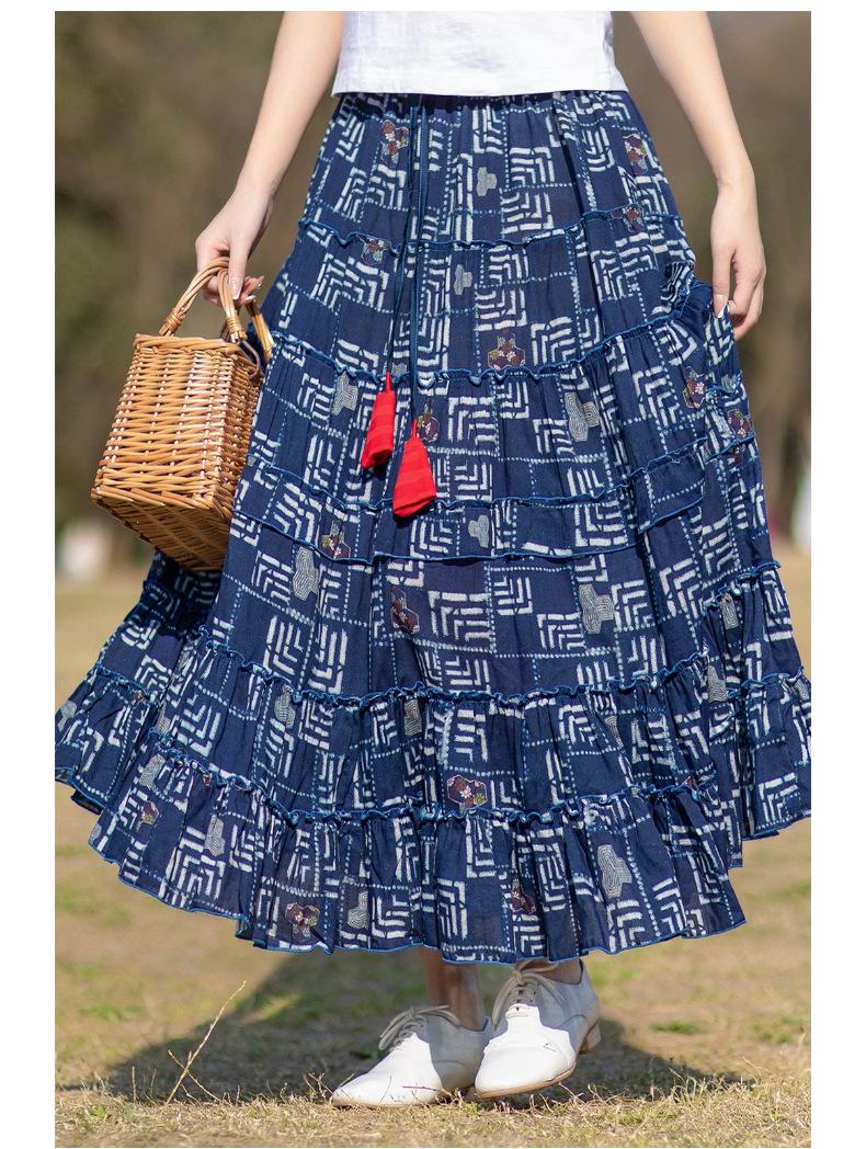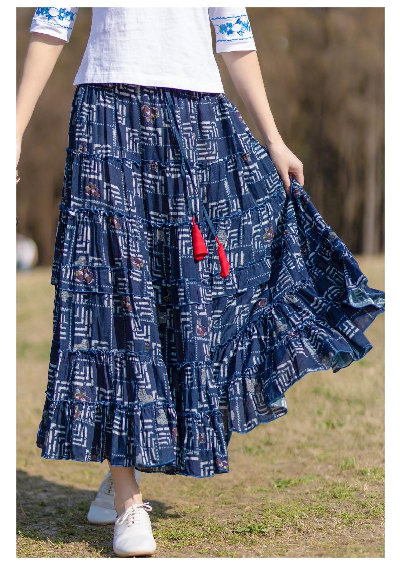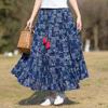 Falda Estilo Artístico Primavera y Otoño 2025 Nueva Estilo Étnico Cintura Elástica Creativa Flor Capullo Suelta Acampanada Falda Larga para Mujer