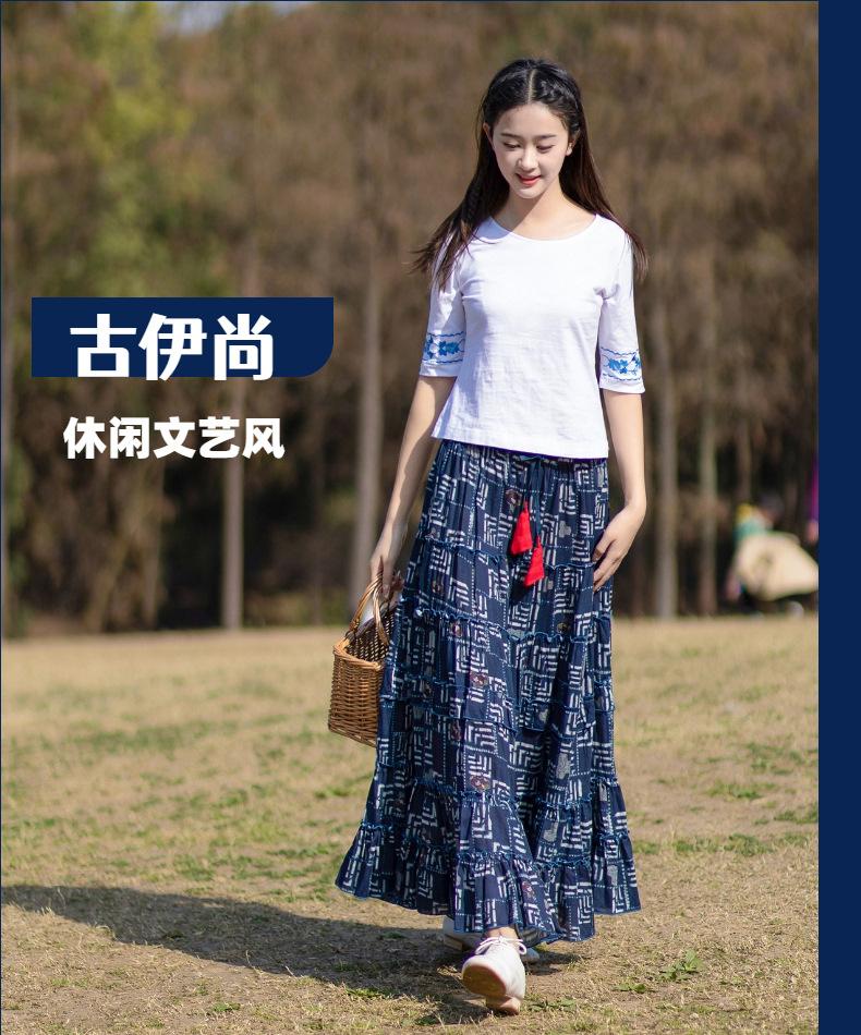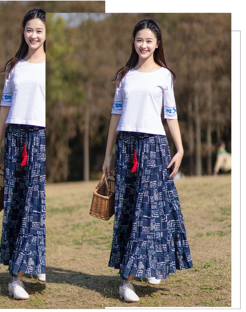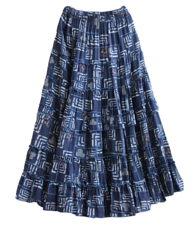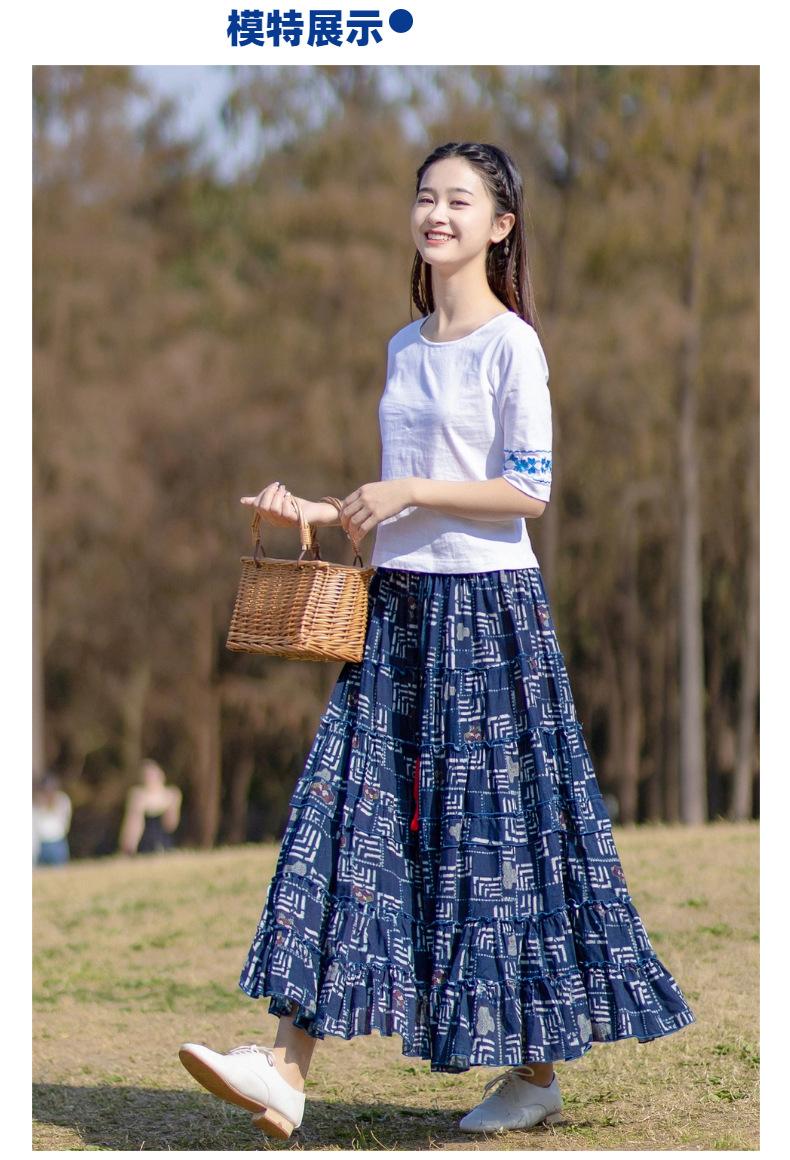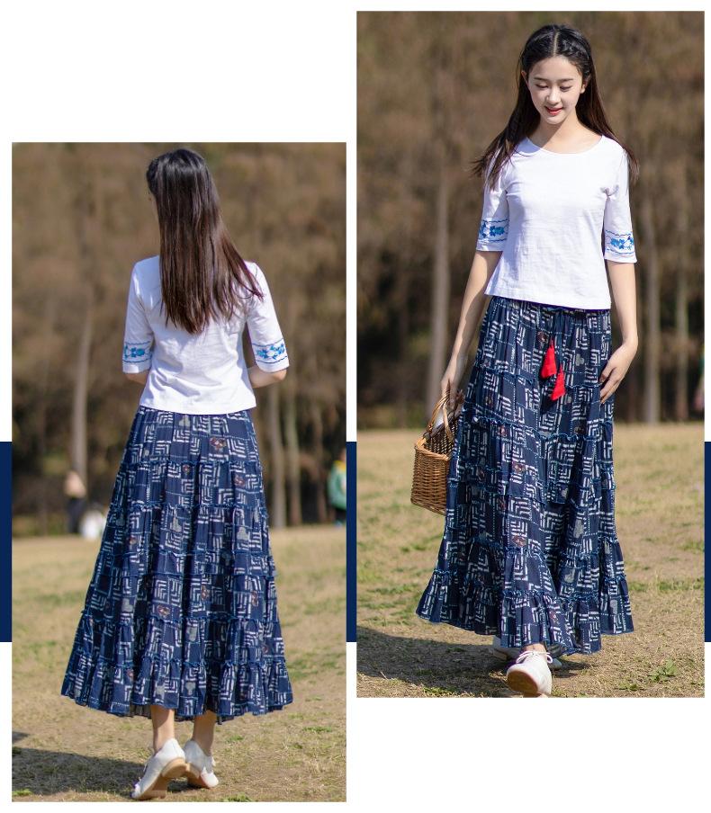 Falda Estilo Artístico Primavera y Otoño 2025 Nueva Estilo Étnico Cintura Elástica Creativa Flor Capullo Suelta Acampanada Falda Larga para Mujer