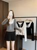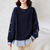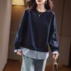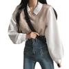 Venta al por mayor 2023 otoño hilo de talla grande gordita chica falsa de dos piezas camiseta de mujer costura cuello POLO suéter de manga larga moda suelta
