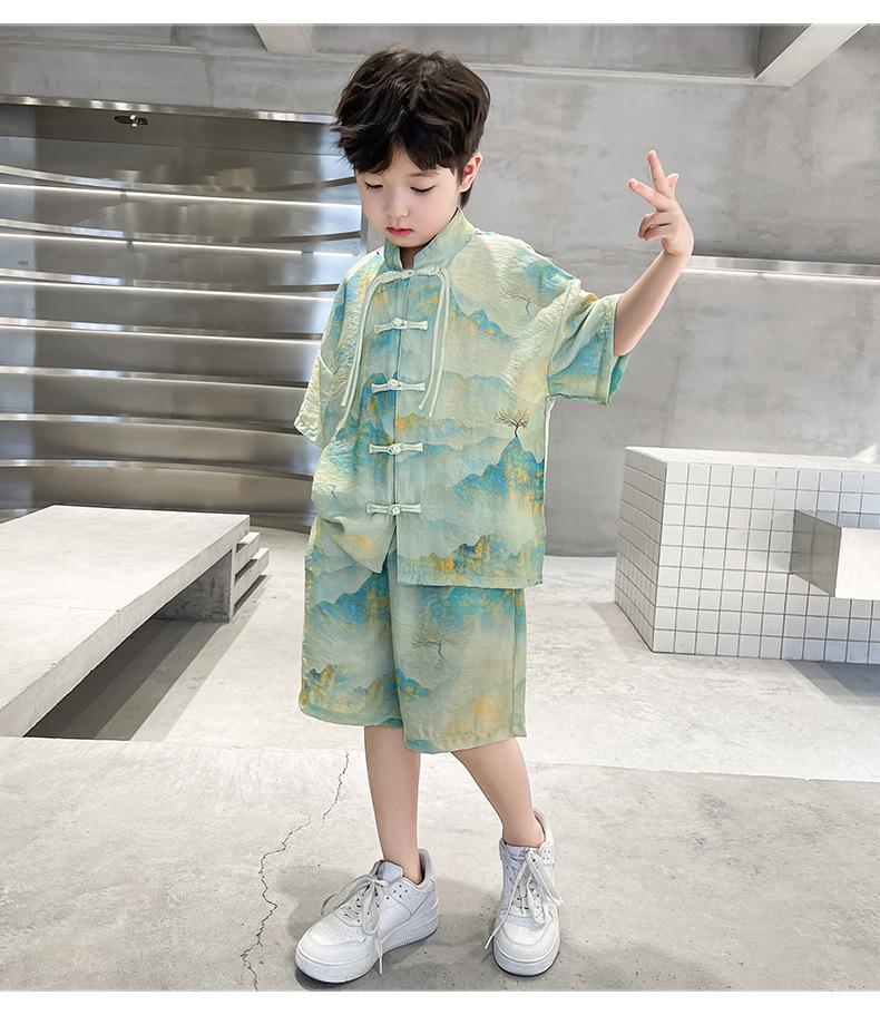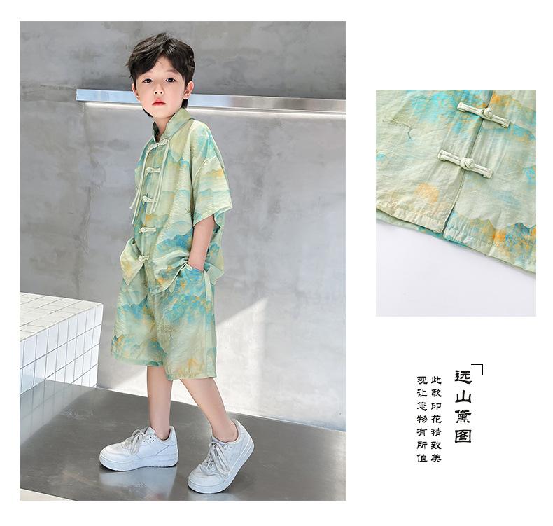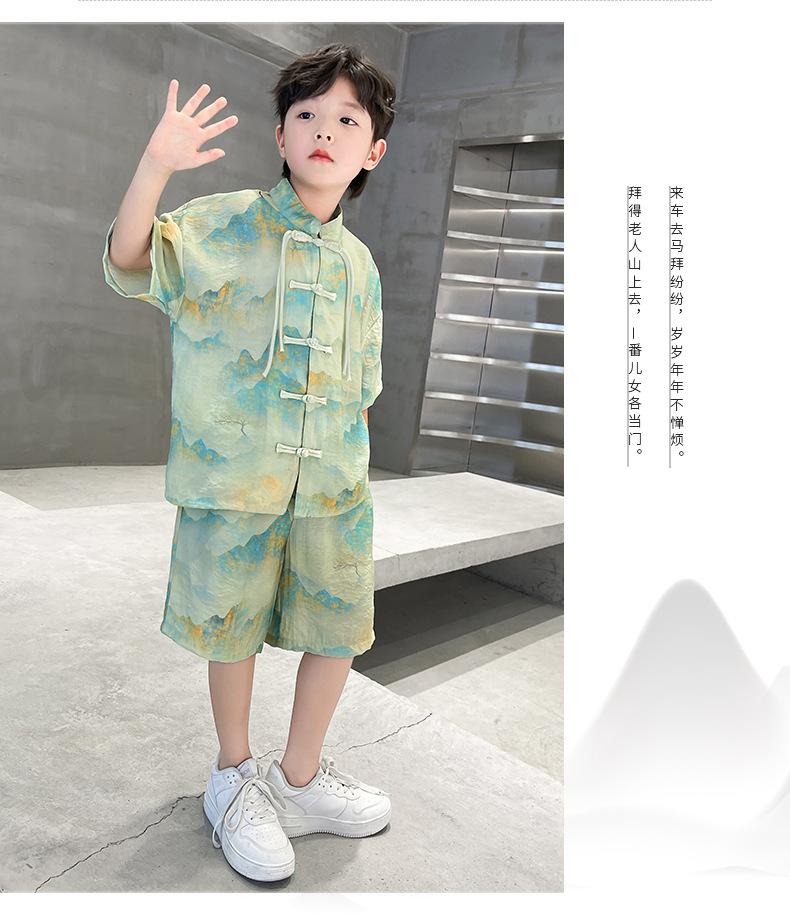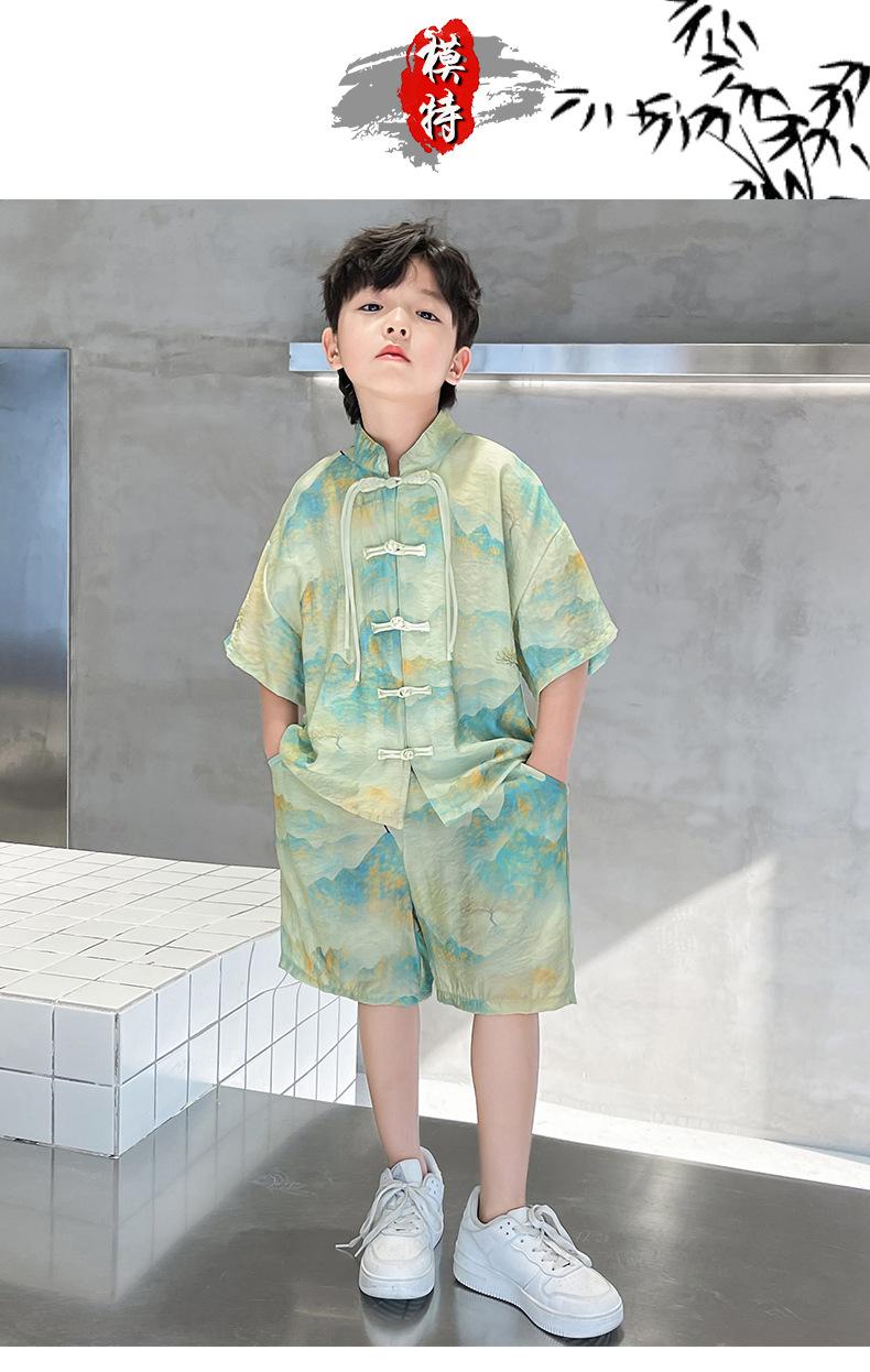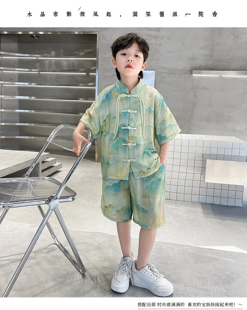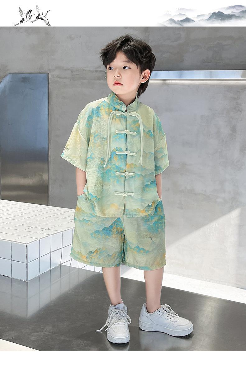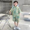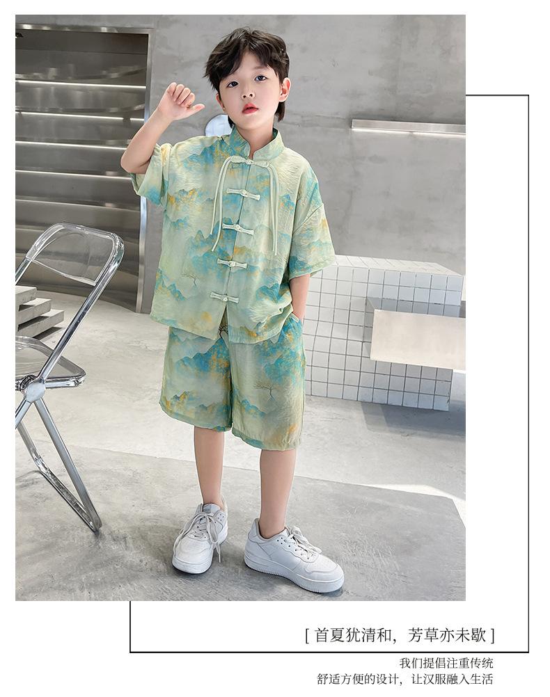 Traje de verano para niños 2024, nueva moda, traje para niños medianos y grandes, traje de pantalones cortos de manga corta de estilo chino de moda