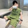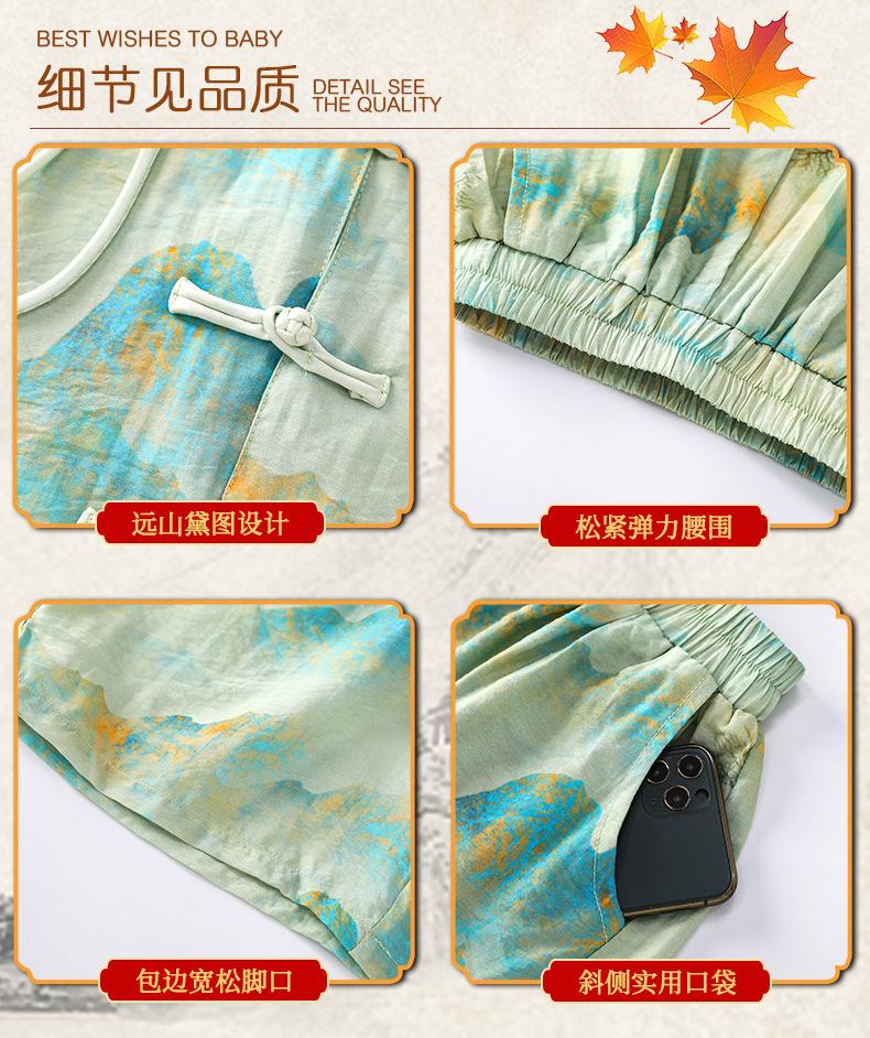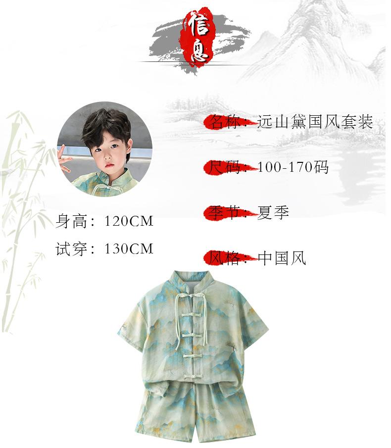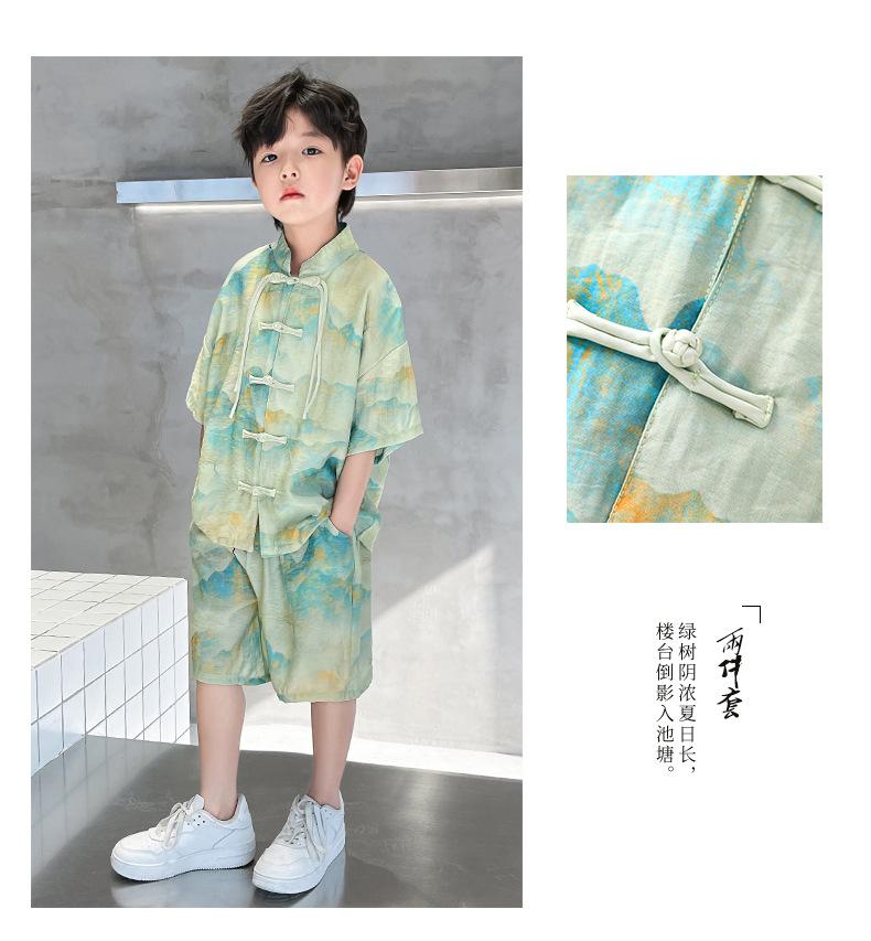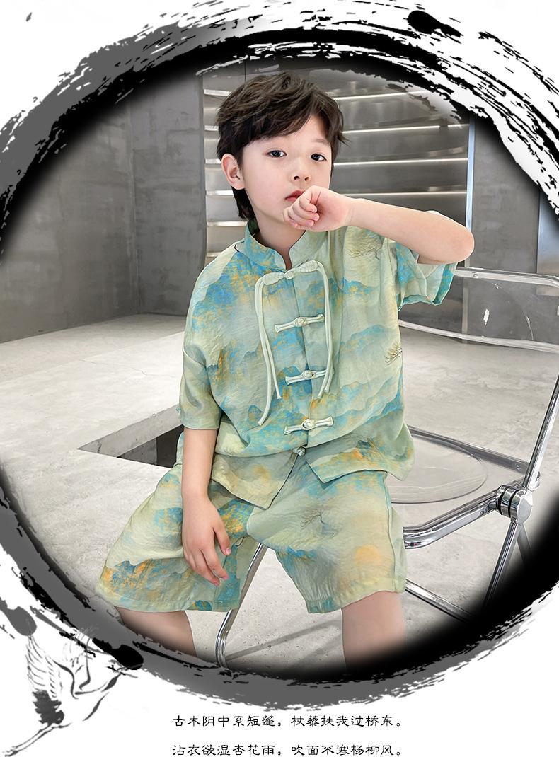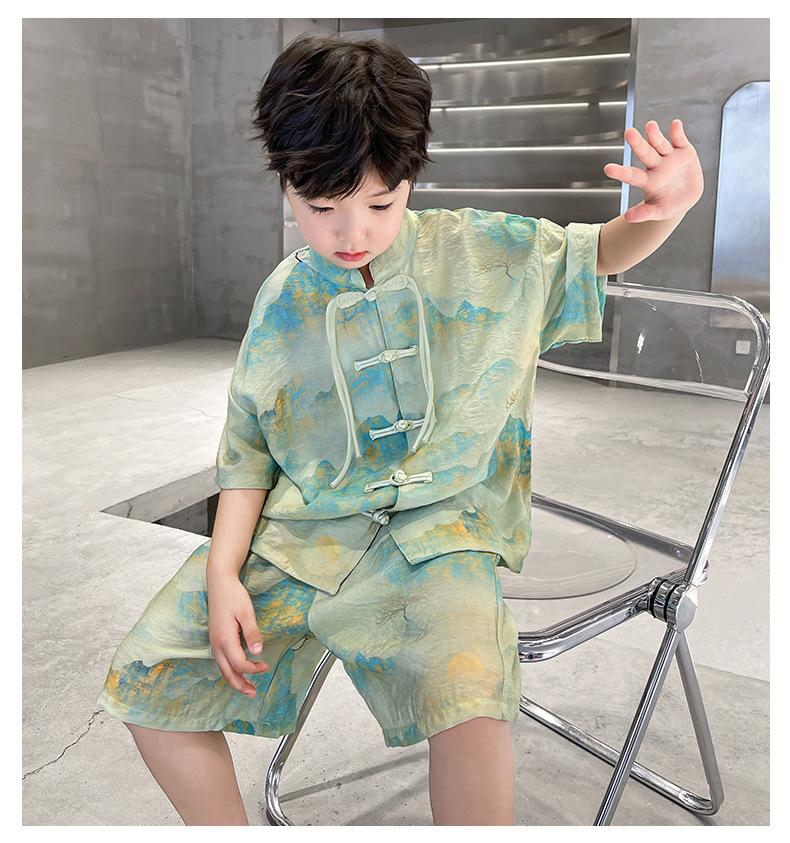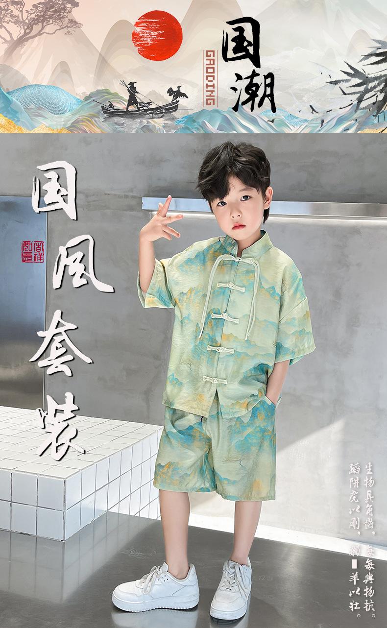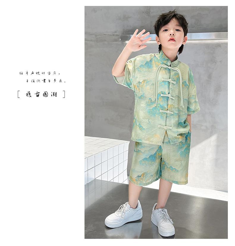 Traje de verano para niños 2024, nueva moda, traje para niños medianos y grandes, traje de pantalones cortos de manga corta de estilo chino de moda