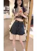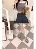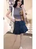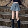 Falda vaquera plisada estilo retro americano para mujer, nueva falda de verano de cintura alta, ajustada, de corte A, con volantes en la cadera