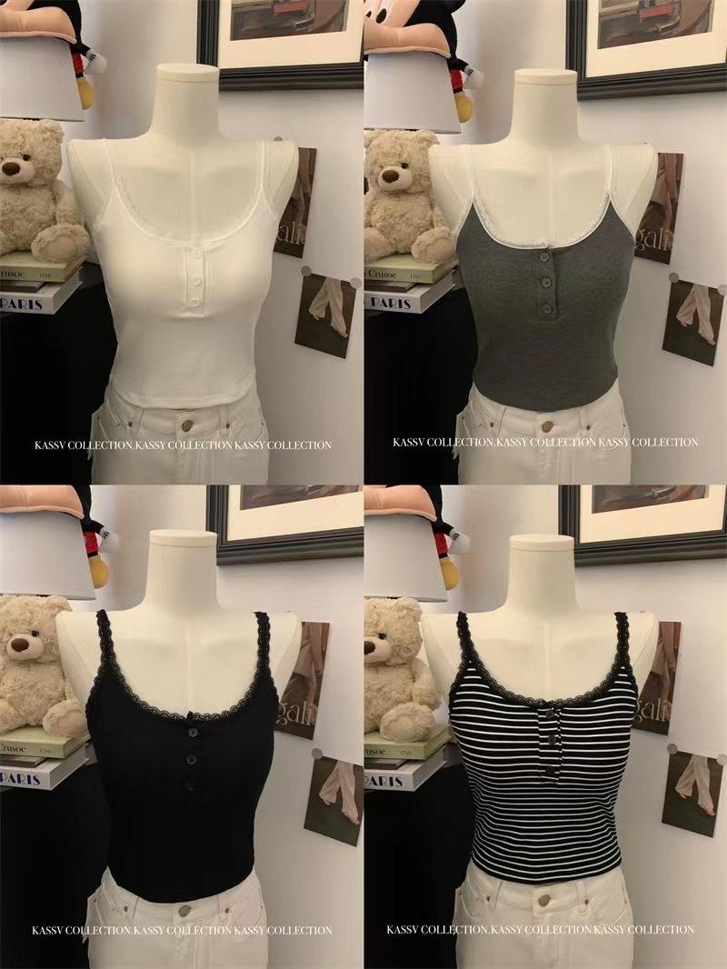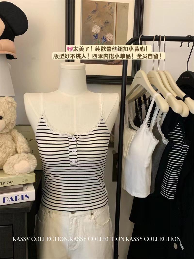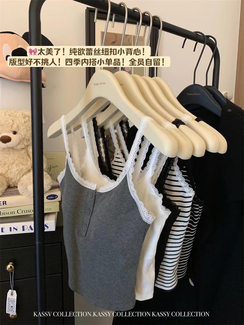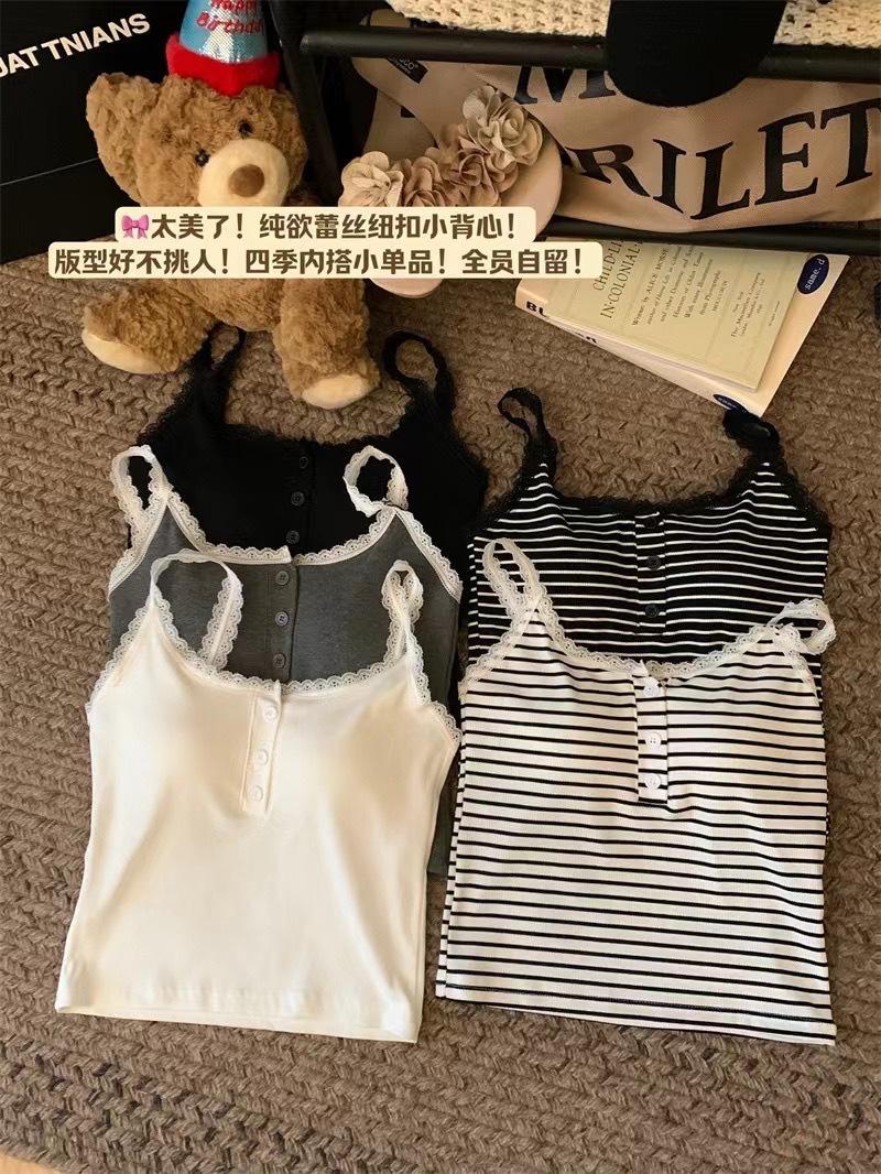 Deseo Puro Encaje Pequeño Encaje Botón Tirantes Chaleco con Almohadilla para el Pecho Ropa Interior para Mujer Primavera y Verano Ropa Exterior Ajustado Adelgazante Versátil