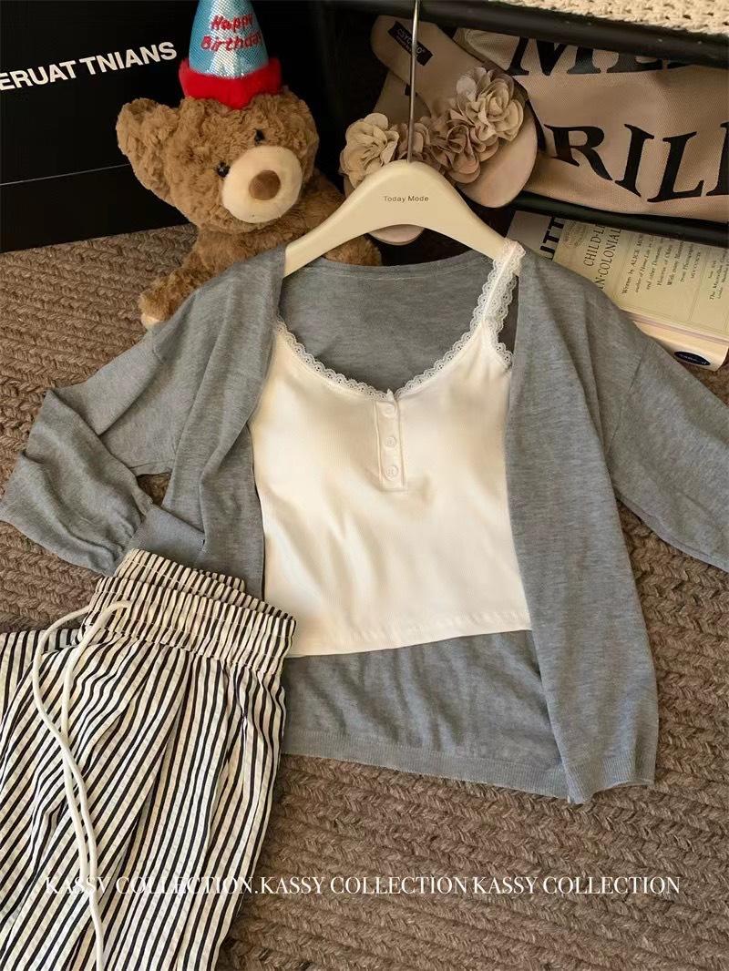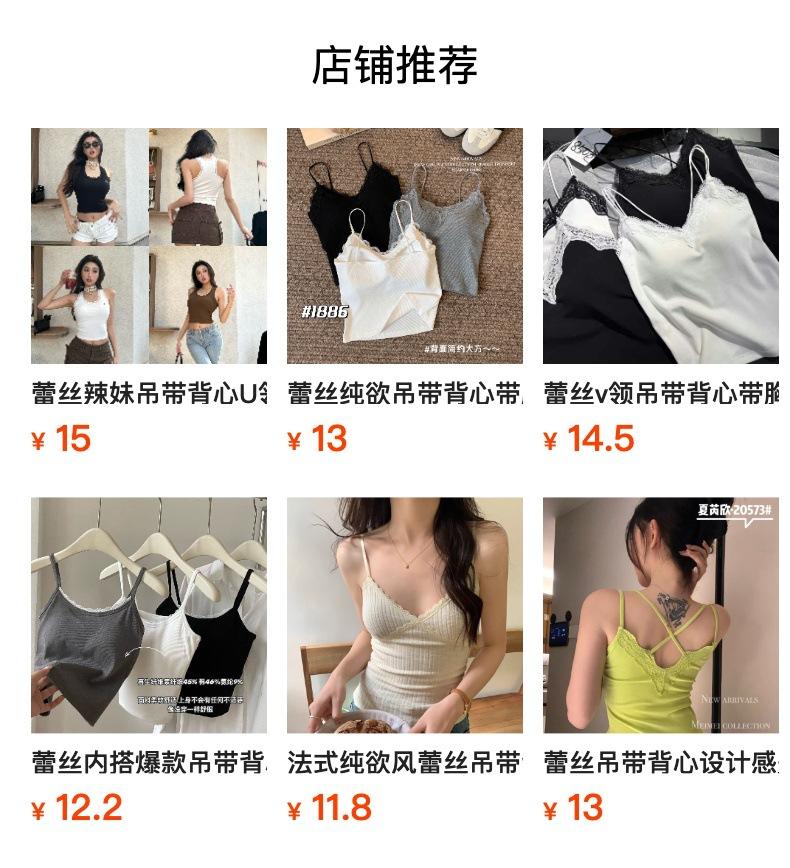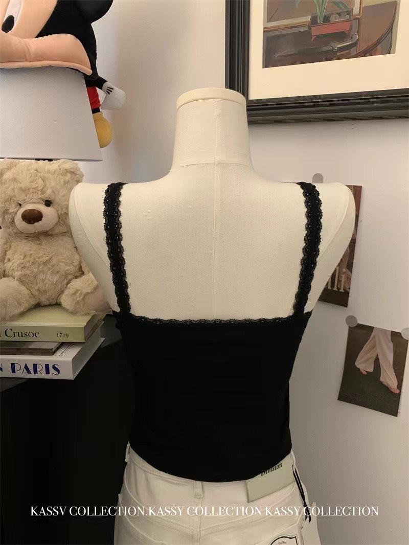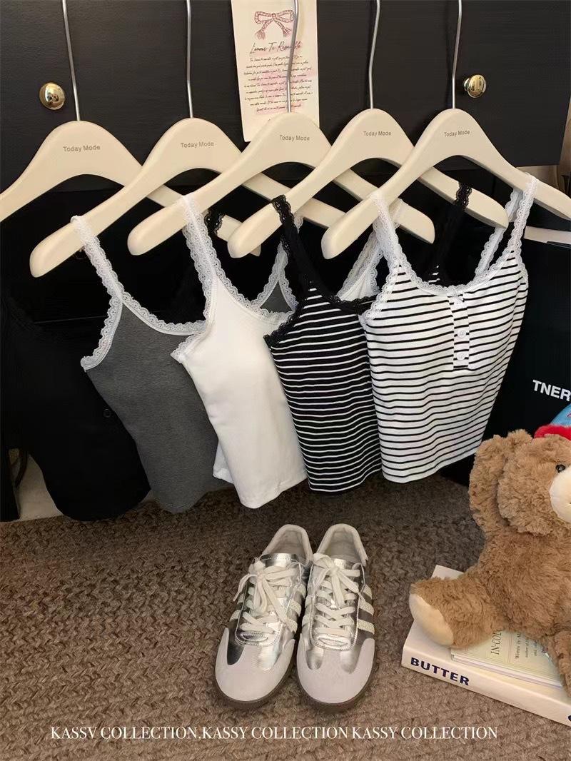 Deseo Puro Encaje Pequeño Encaje Botón Tirantes Chaleco con Almohadilla para el Pecho Ropa Interior para Mujer Primavera y Verano Ropa Exterior Ajustado Adelgazante Versátil