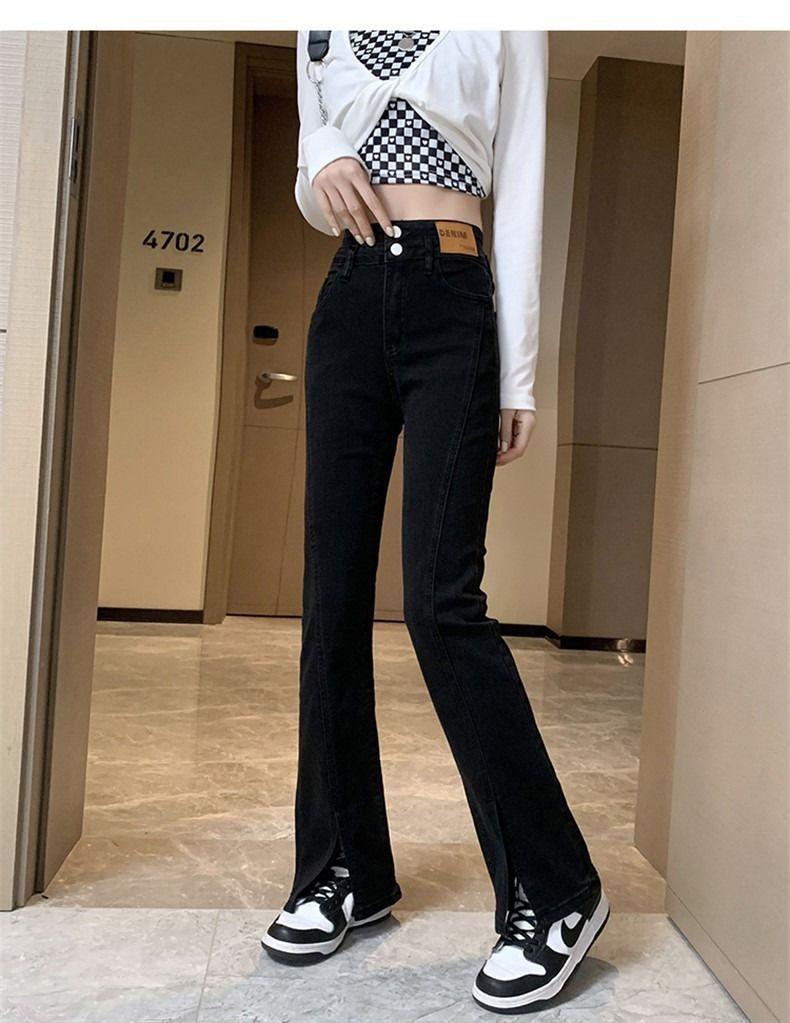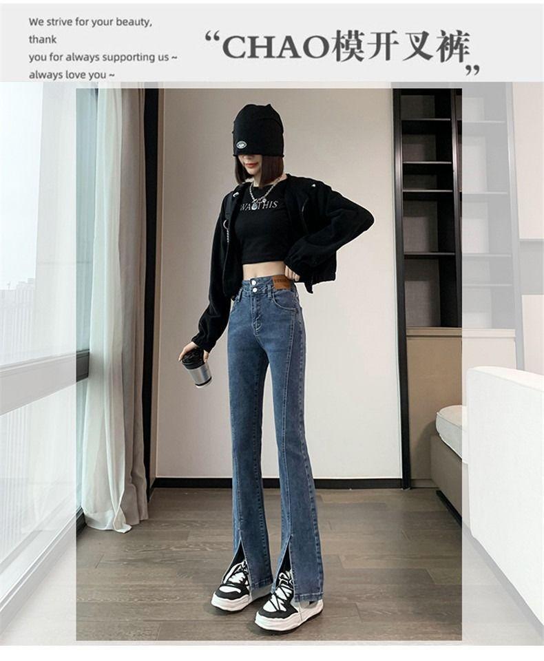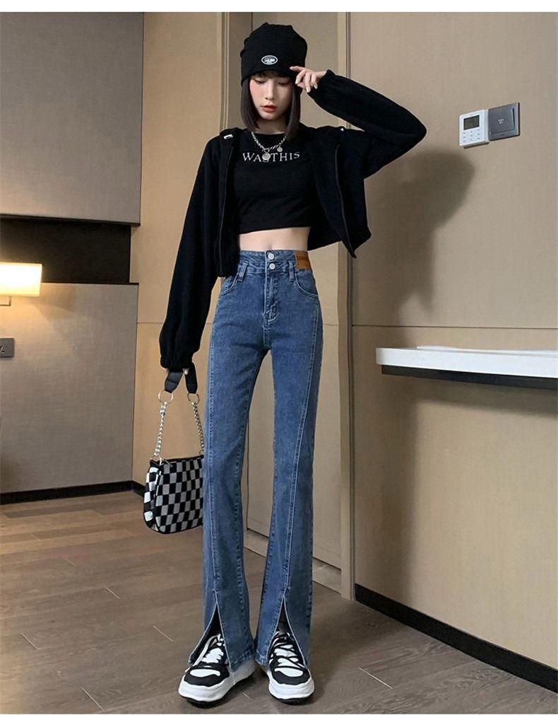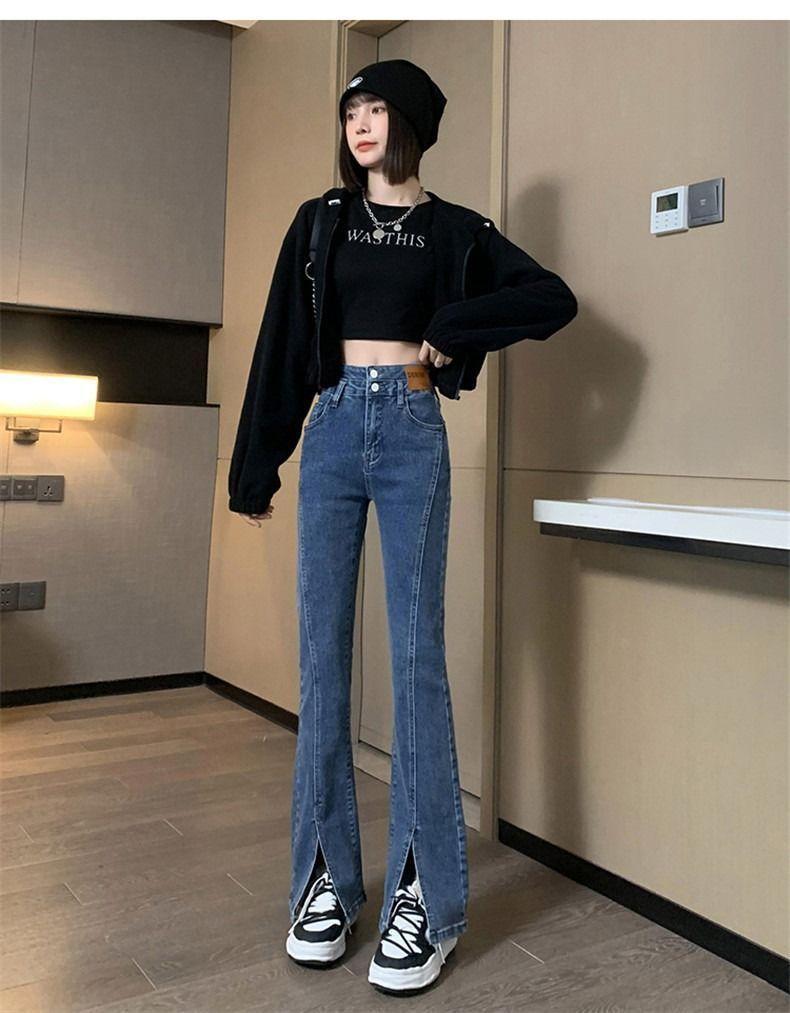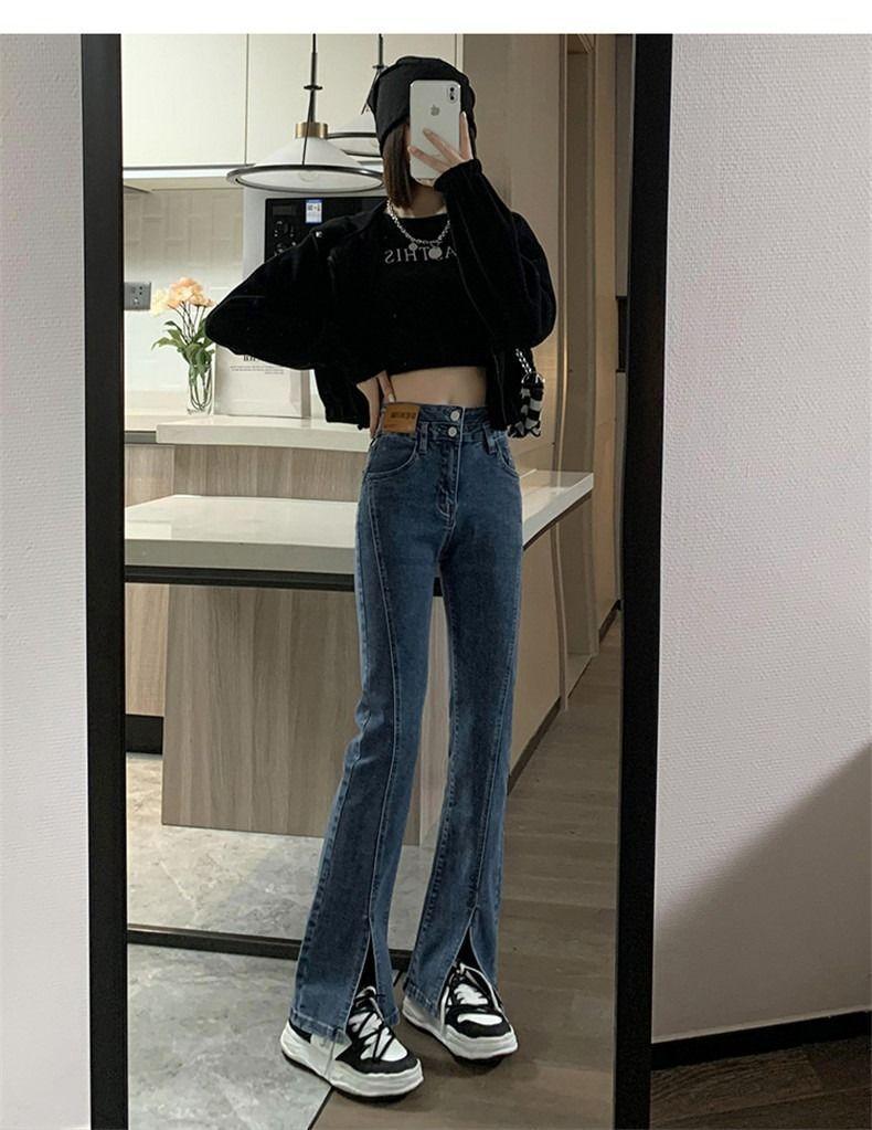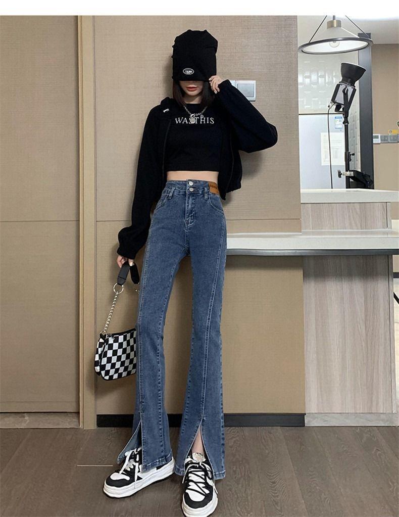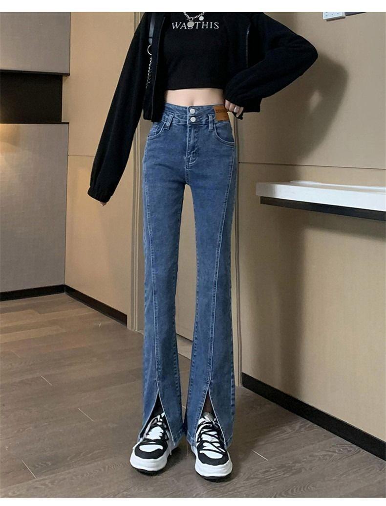 Pantalones vaqueros de cintura alta con abertura y corte estilo coreano para mujer, primavera y verano 2023, adelgazantes, de pierna ancha y corte trompeta, para mujer