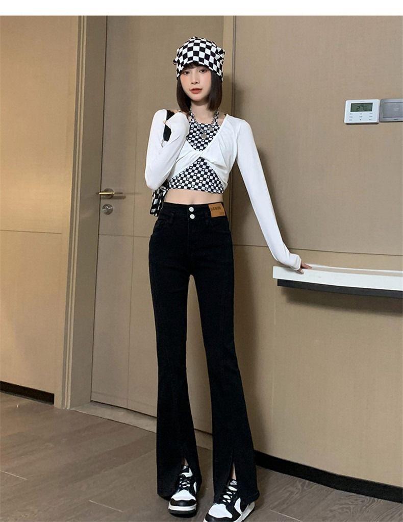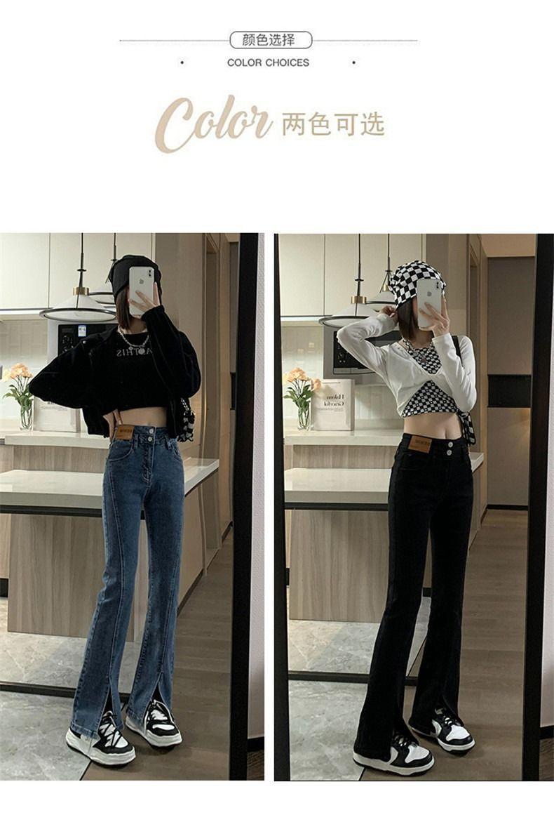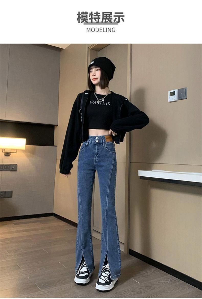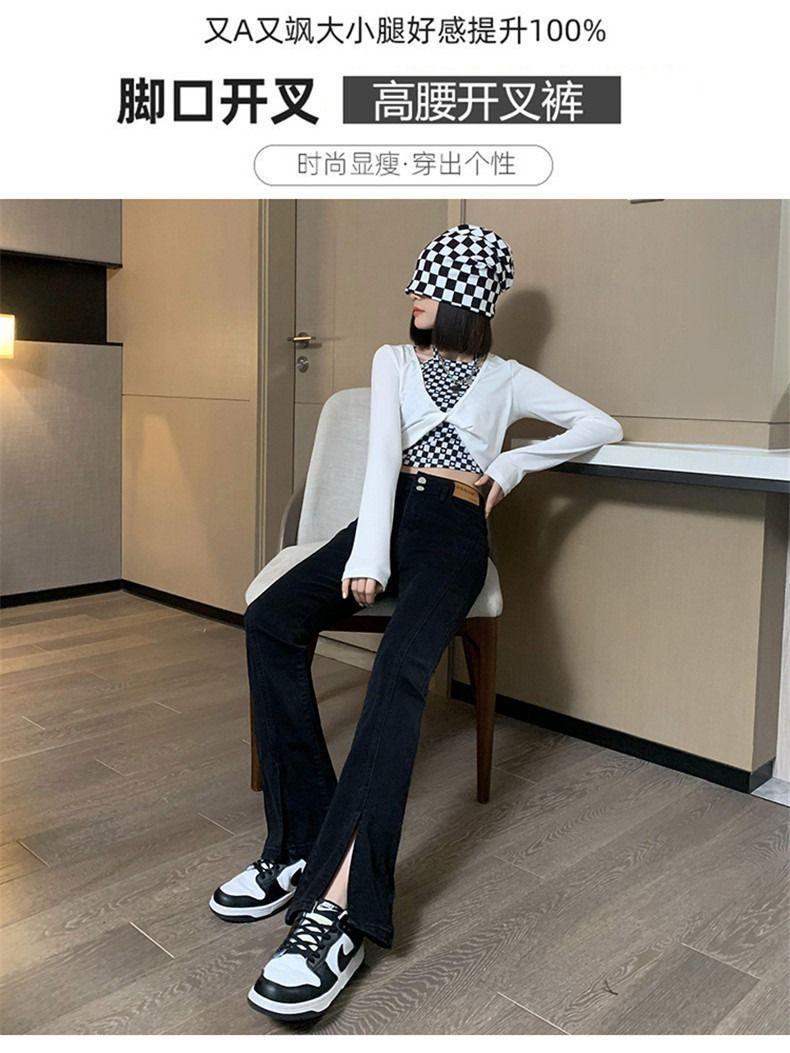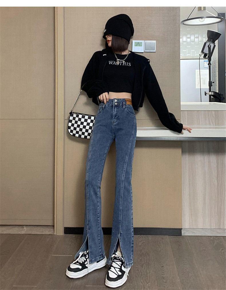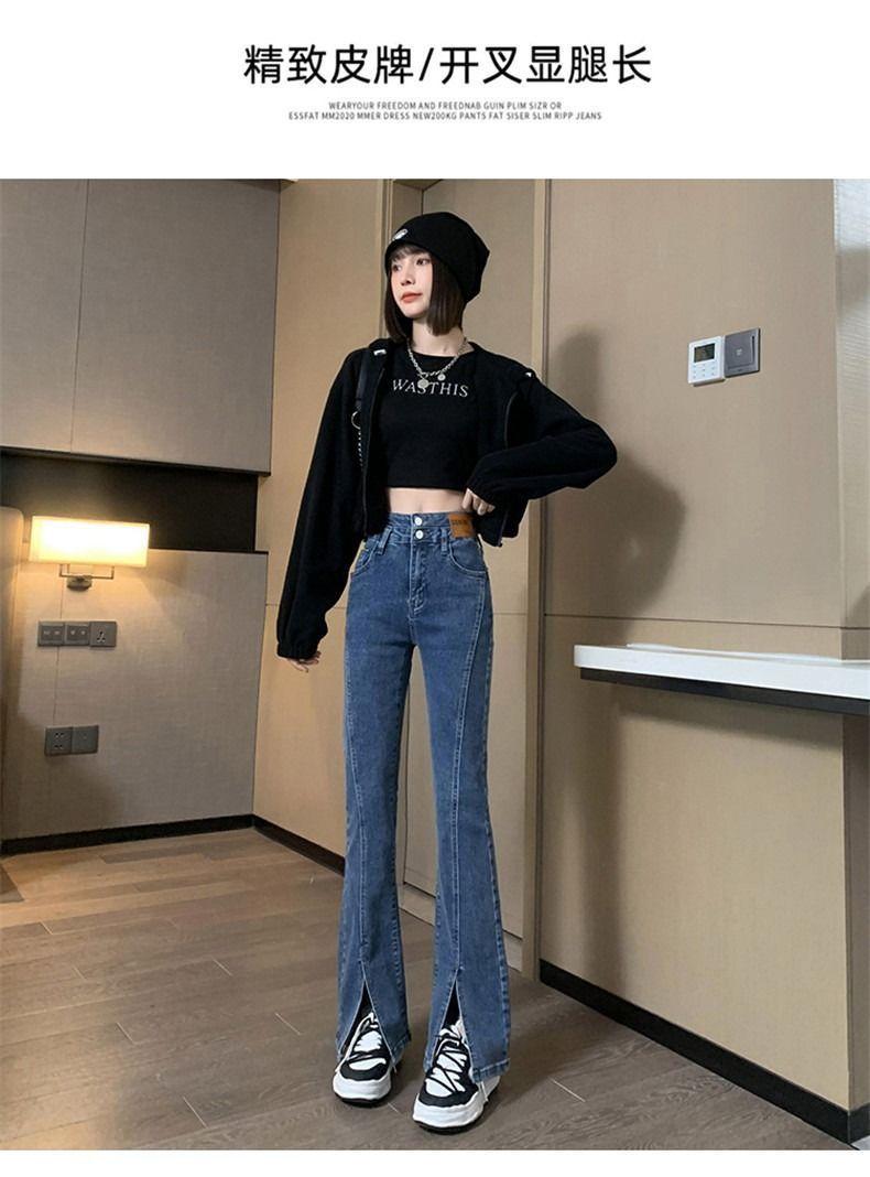 Pantalones vaqueros de cintura alta con abertura y corte estilo coreano para mujer, primavera y verano 2023, adelgazantes, de pierna ancha y corte trompeta, para mujer