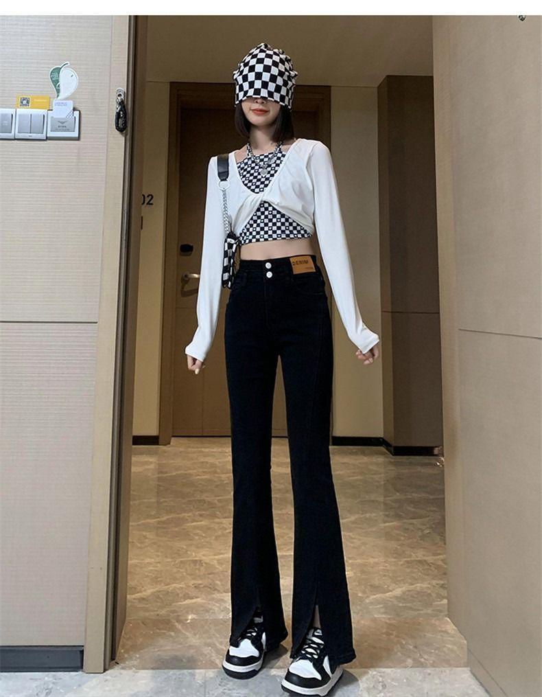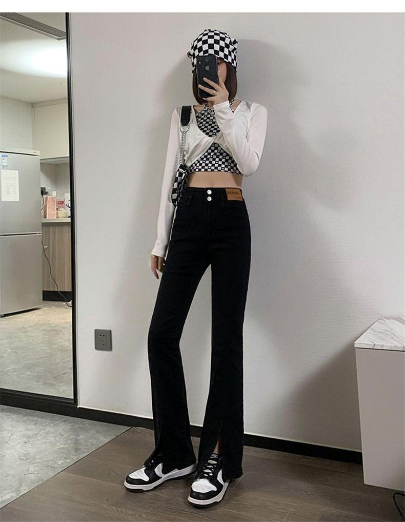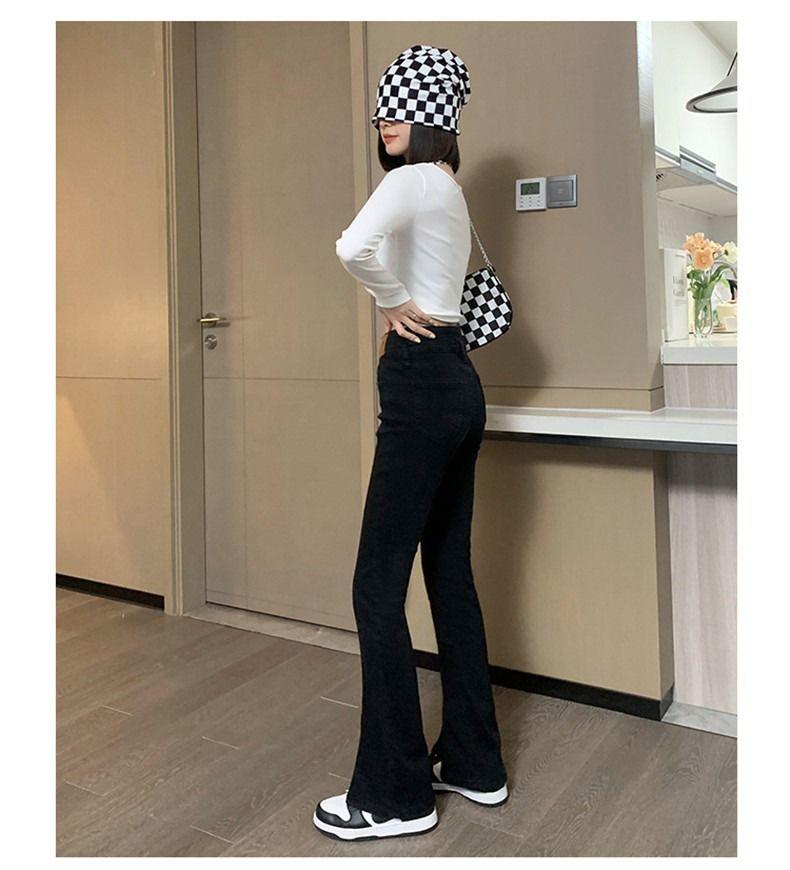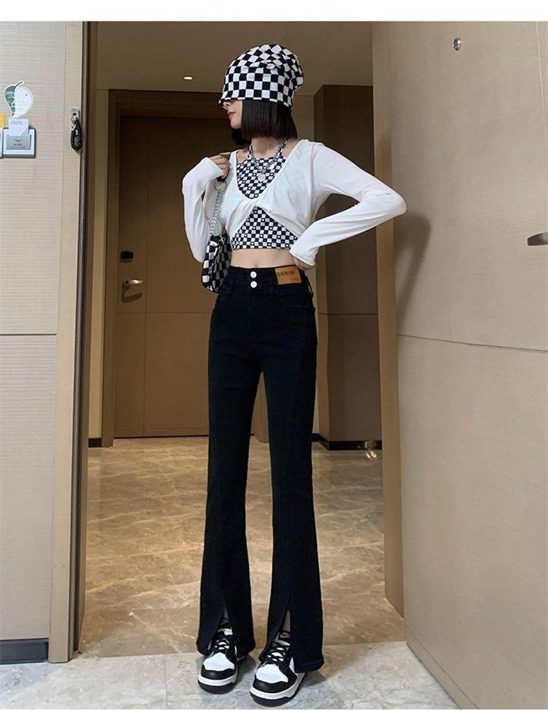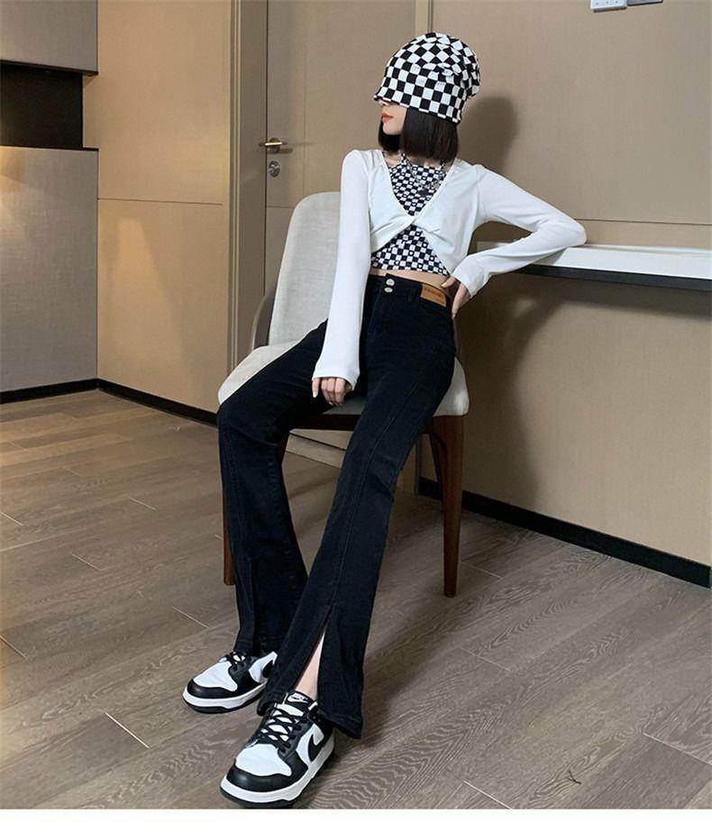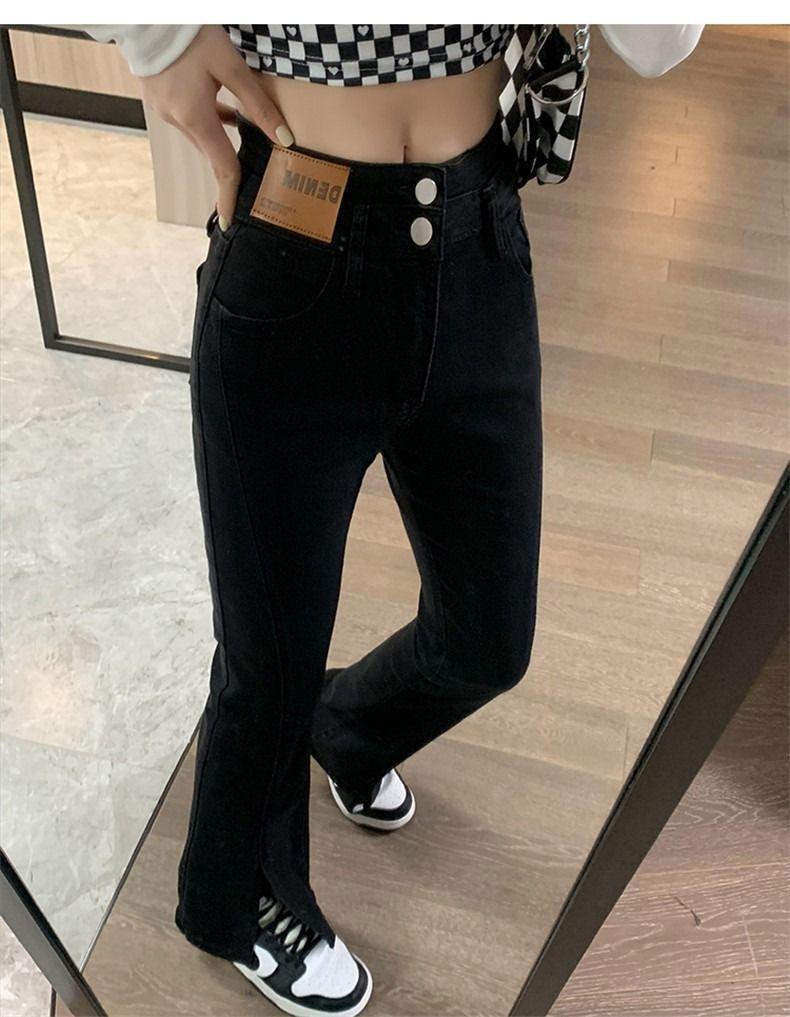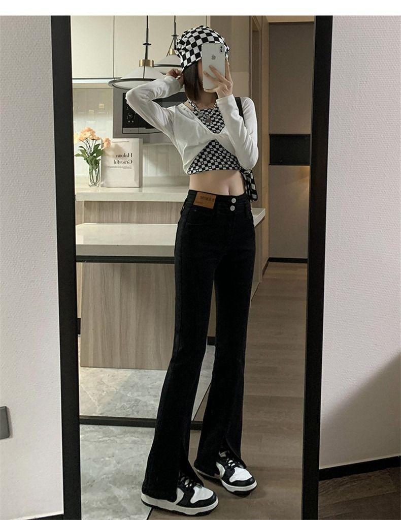 Pantalones vaqueros de cintura alta con abertura y corte estilo coreano para mujer, primavera y verano 2023, adelgazantes, de pierna ancha y corte trompeta, para mujer