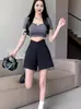 Pantalones cortos de traje para mujer, novedad de verano 2024, cintura alta, adelgazantes, informales, combinables, línea A, falda, pantalones de pierna ancha