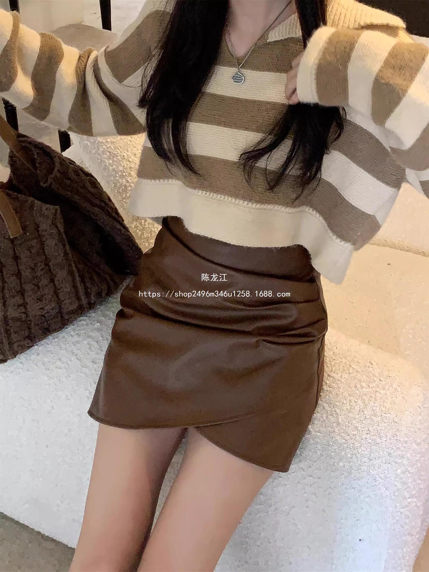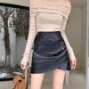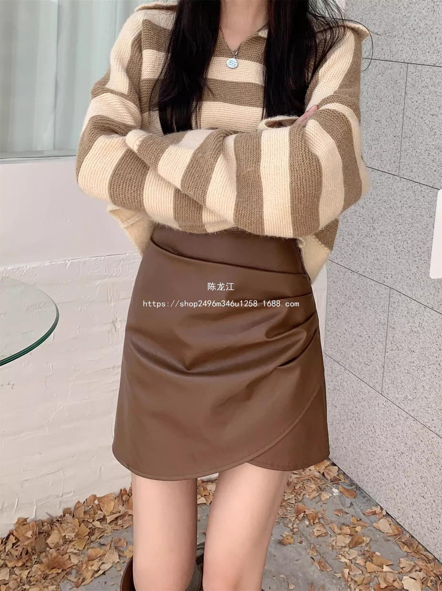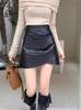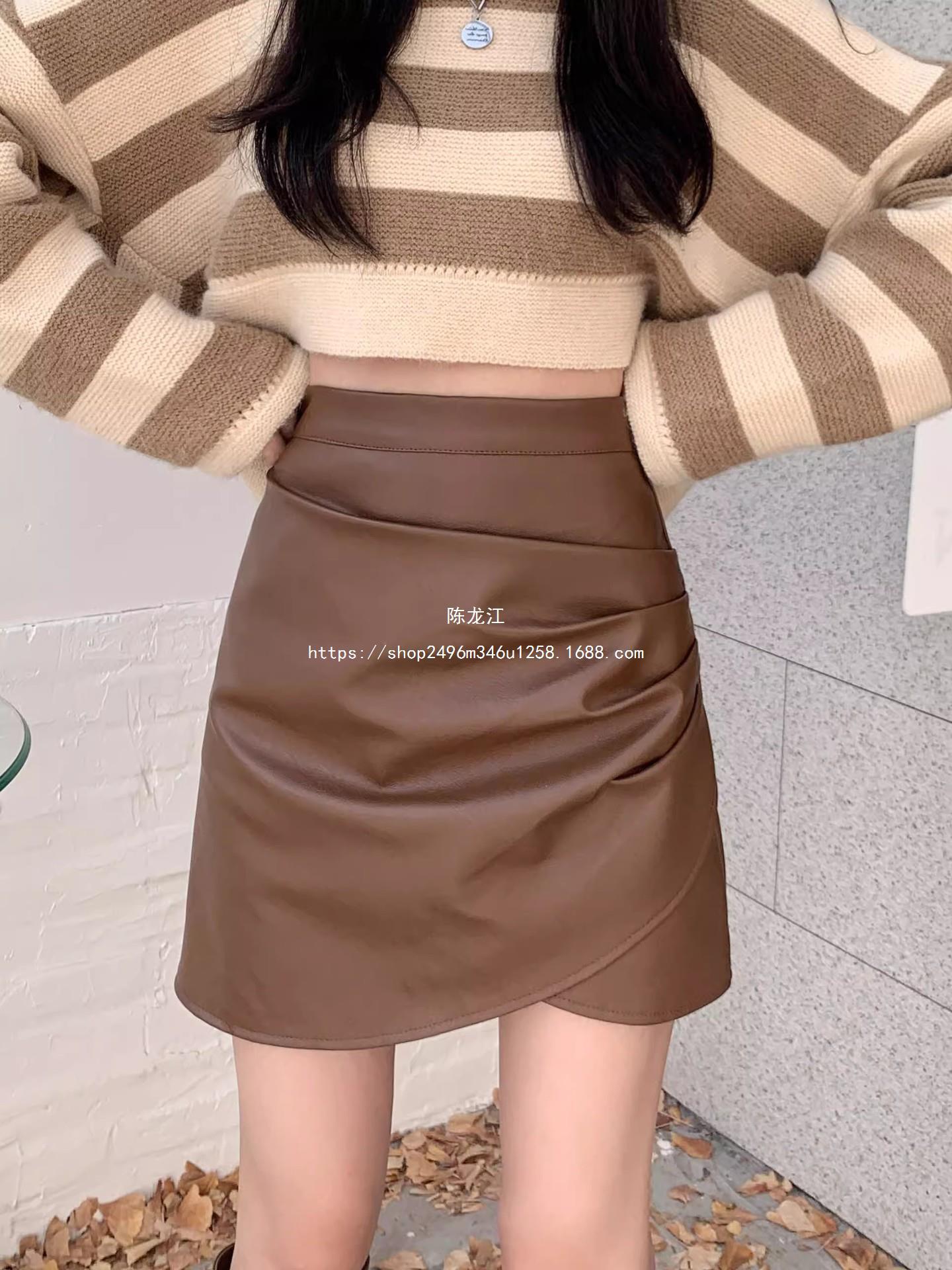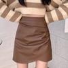 Falda plisada de cintura alta para mujer, color marrón, para otoño e invierno, nueva falda de cadera de cuero PU, ajustada, estilo retro, para chica sexy.