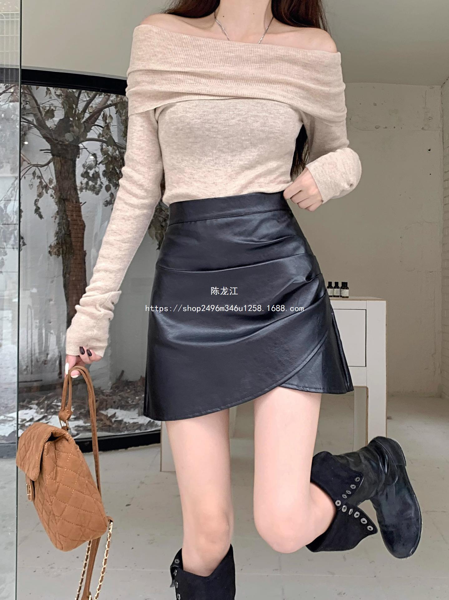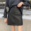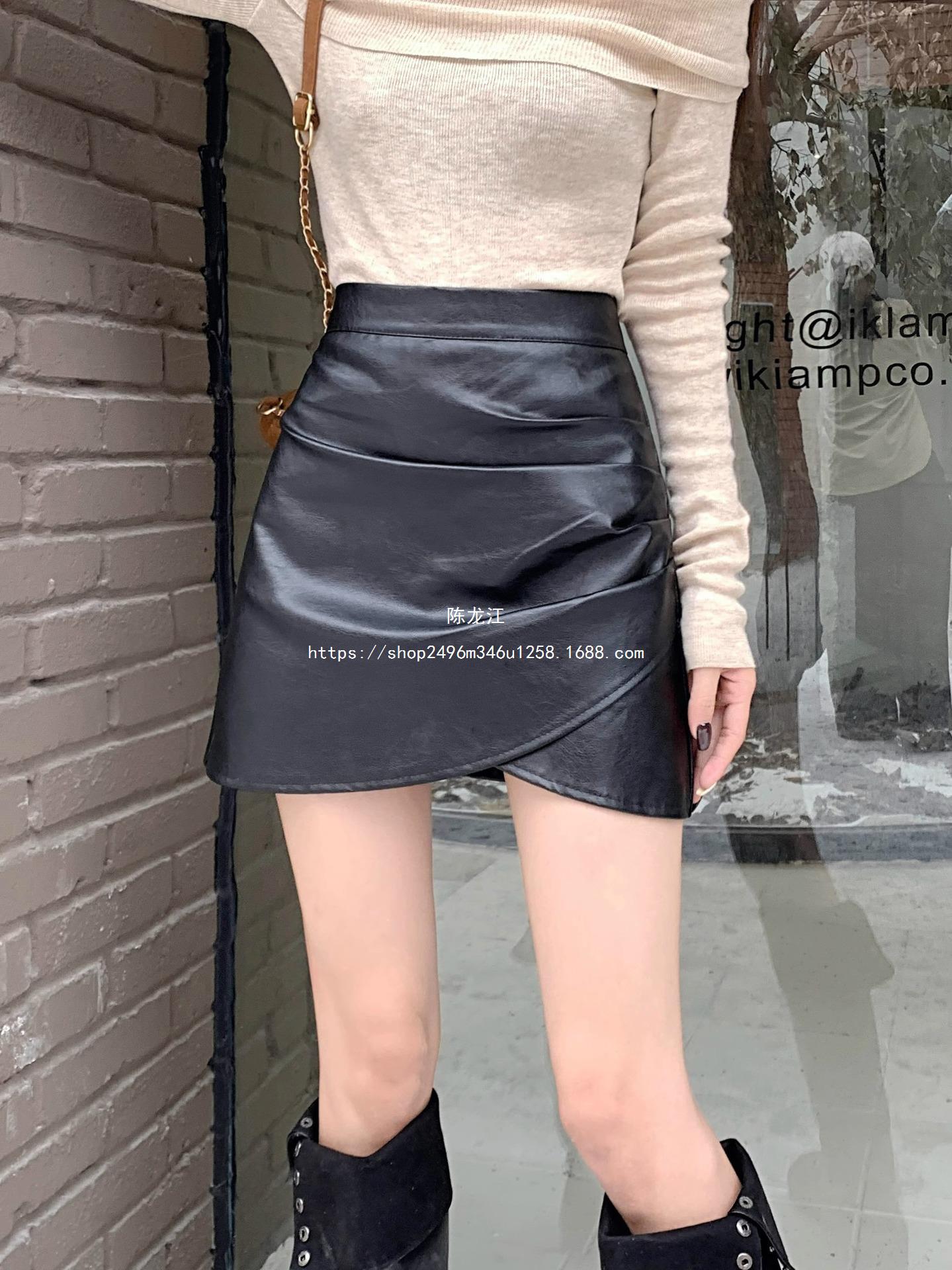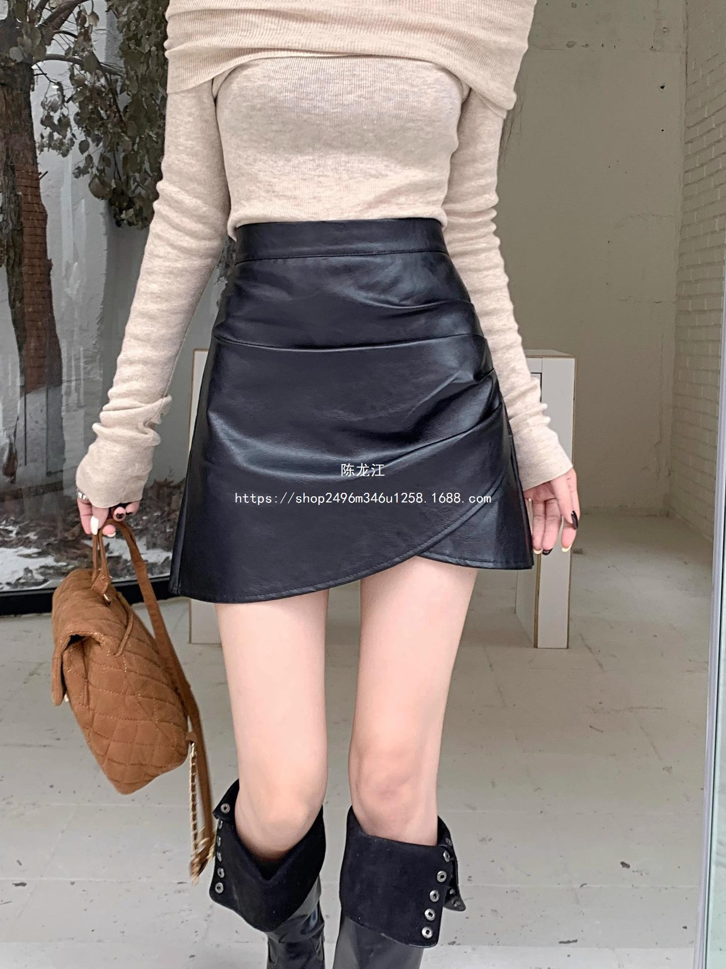 Falda plisada de cintura alta para mujer, color marrón, para otoño e invierno, nueva falda de cadera de cuero PU, ajustada, estilo retro, para chica sexy.