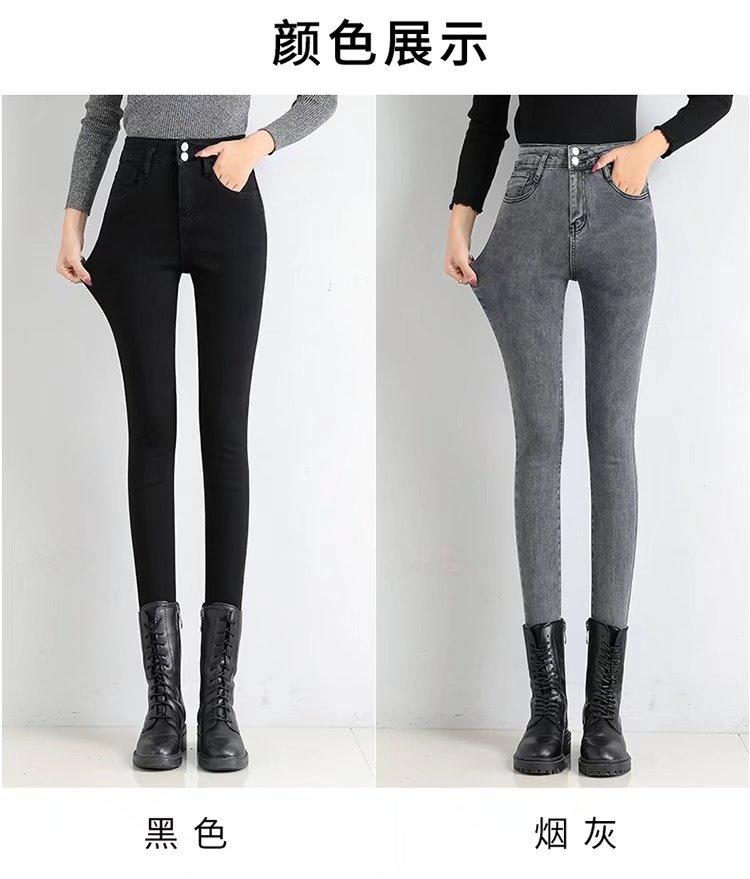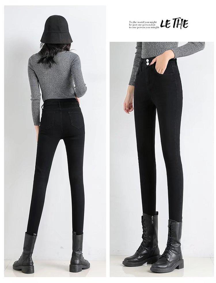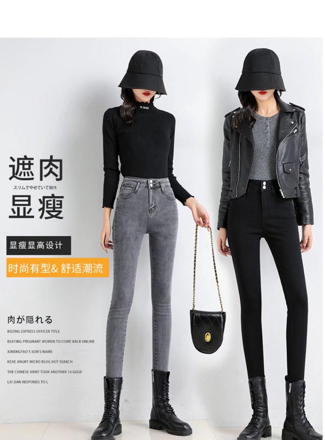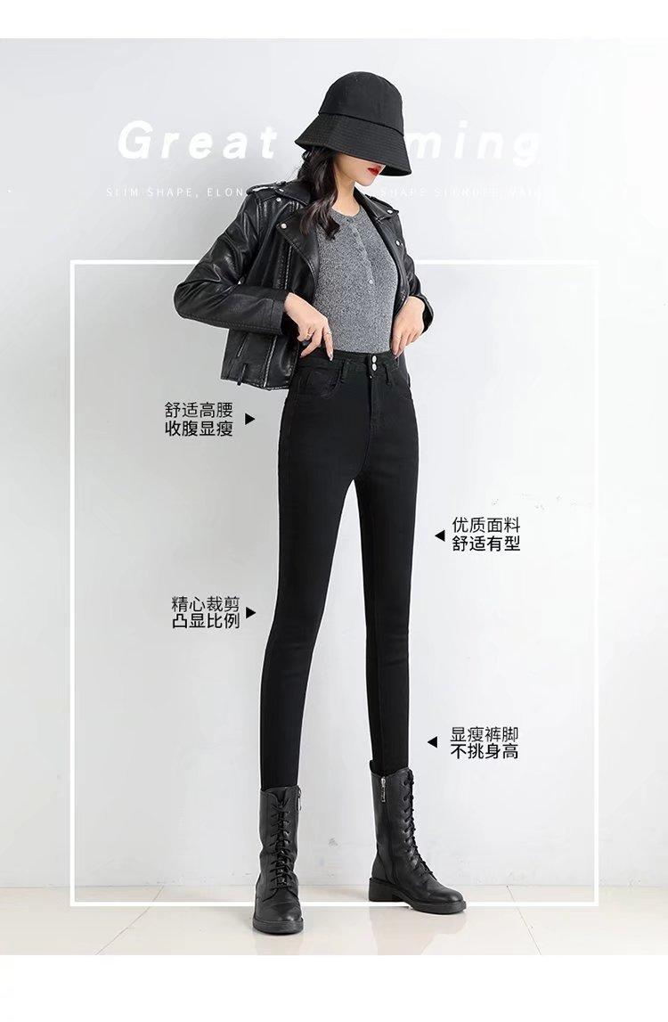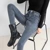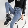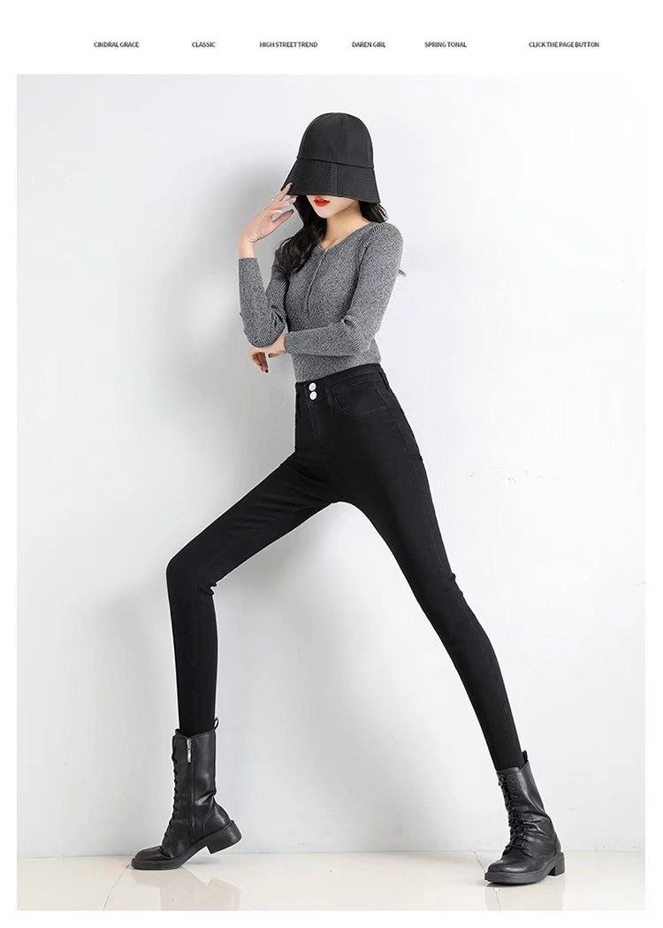 Pantalones vaqueros de cintura alta para mujer, de primavera y otoño, ajustados, adelgazantes, negros, elásticos, estilo coreano, con leggings y pantalones pitillo.