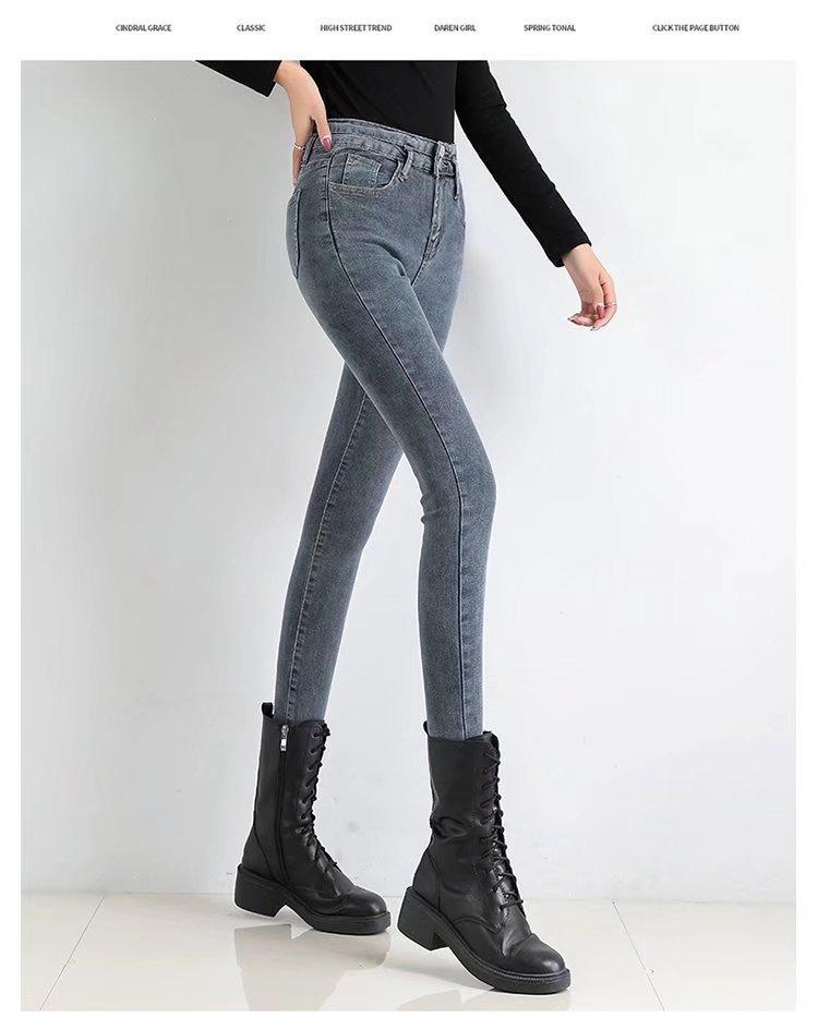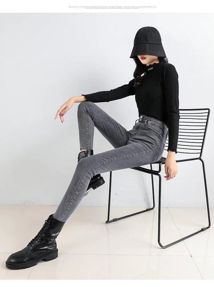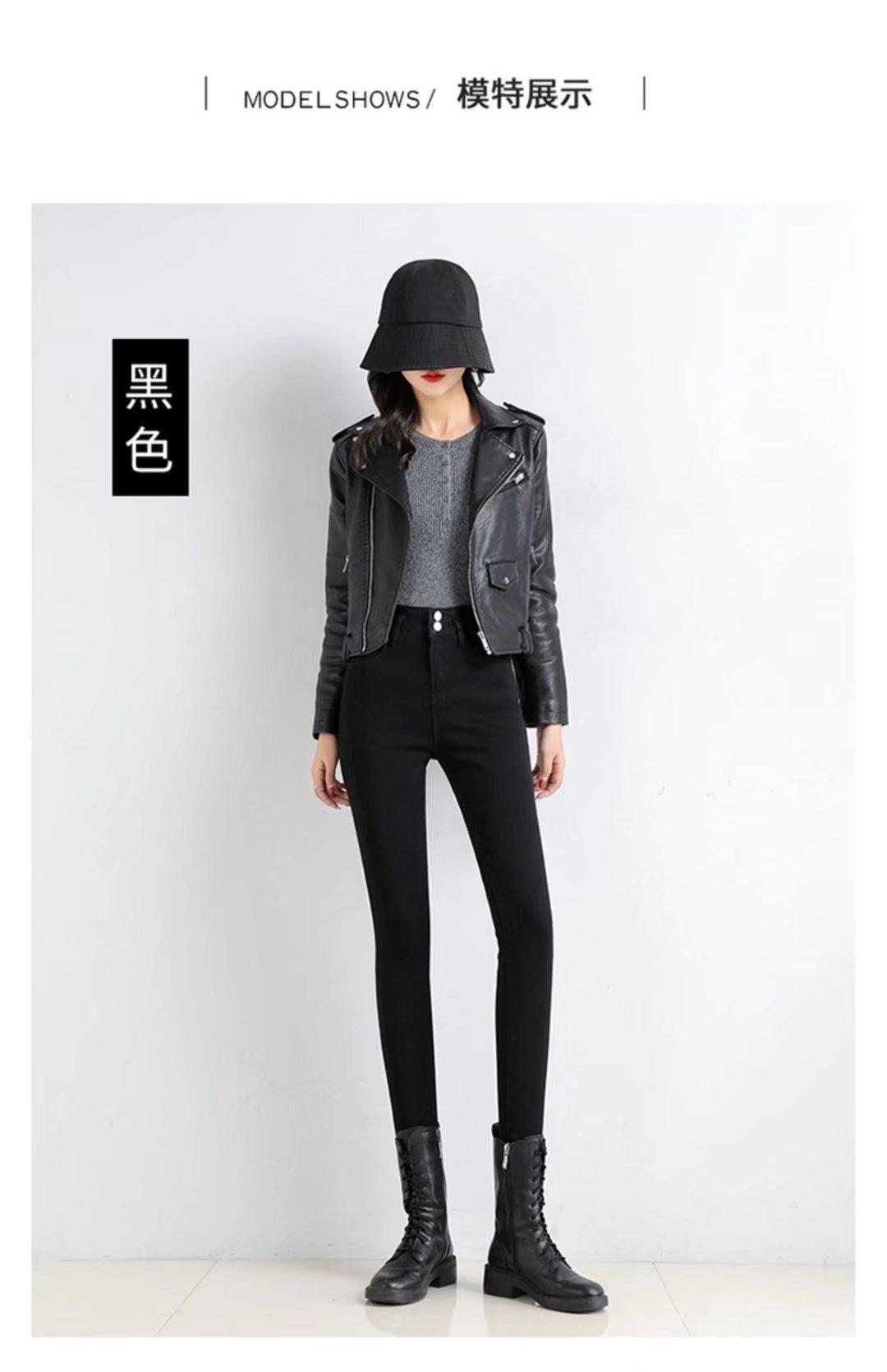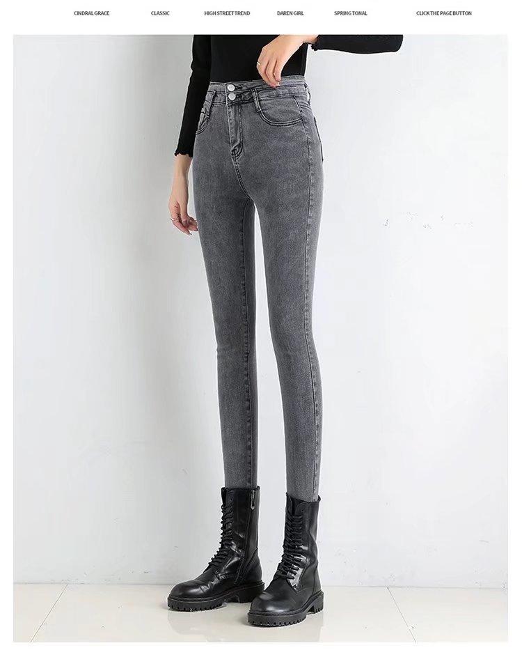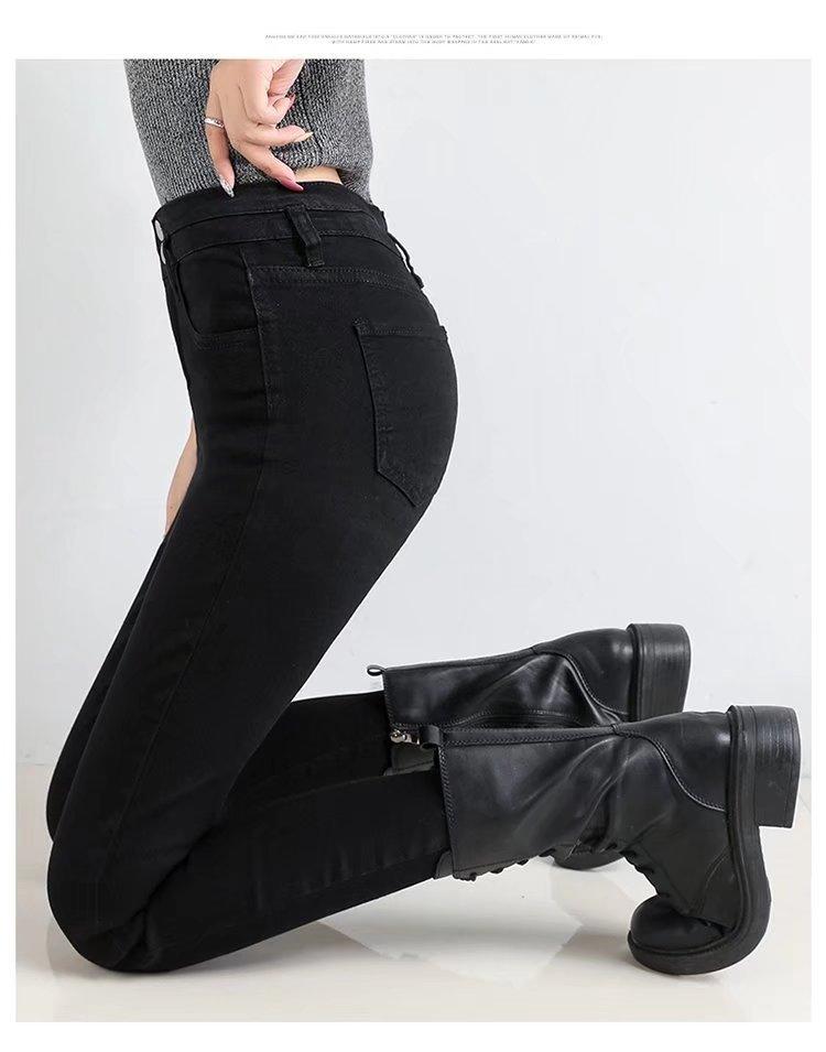 Pantalones vaqueros de cintura alta para mujer, de primavera y otoño, ajustados, adelgazantes, negros, elásticos, estilo coreano, con leggings y pantalones pitillo.
