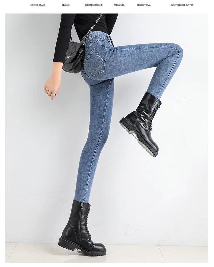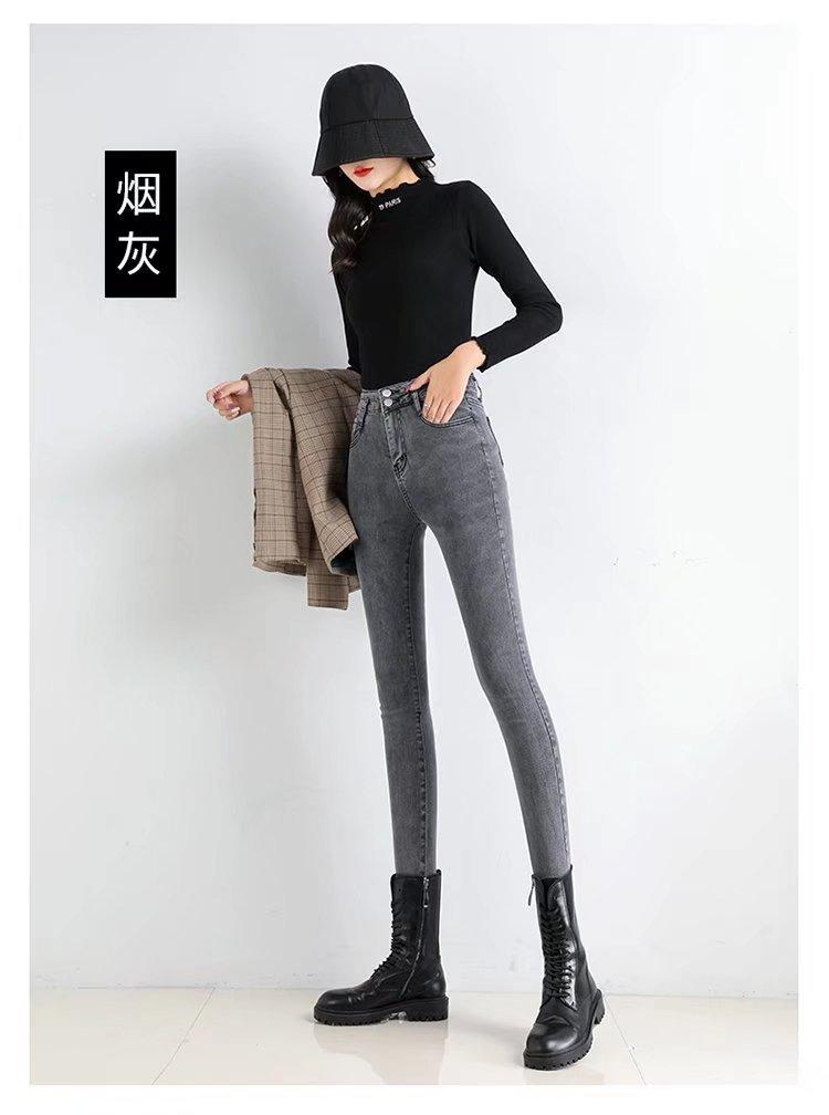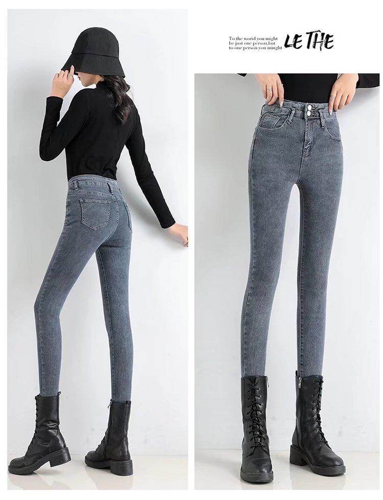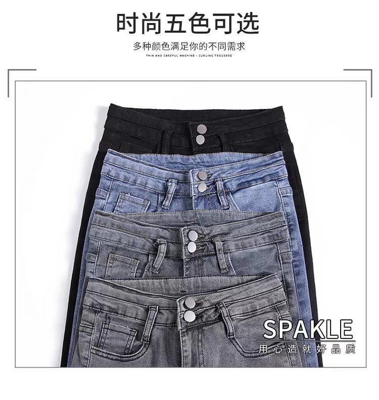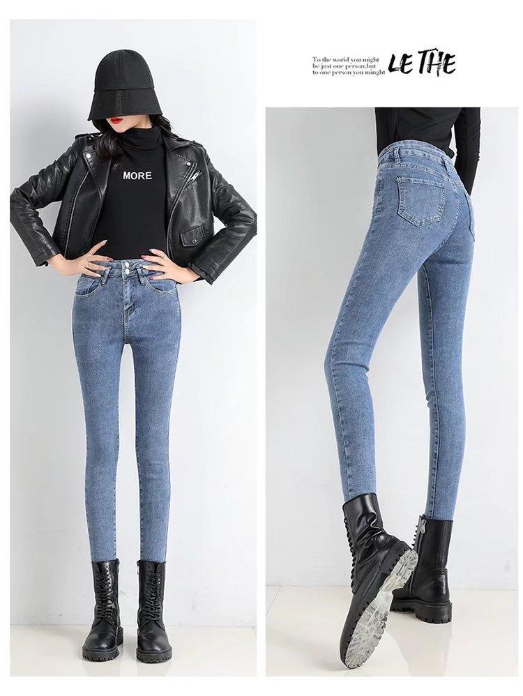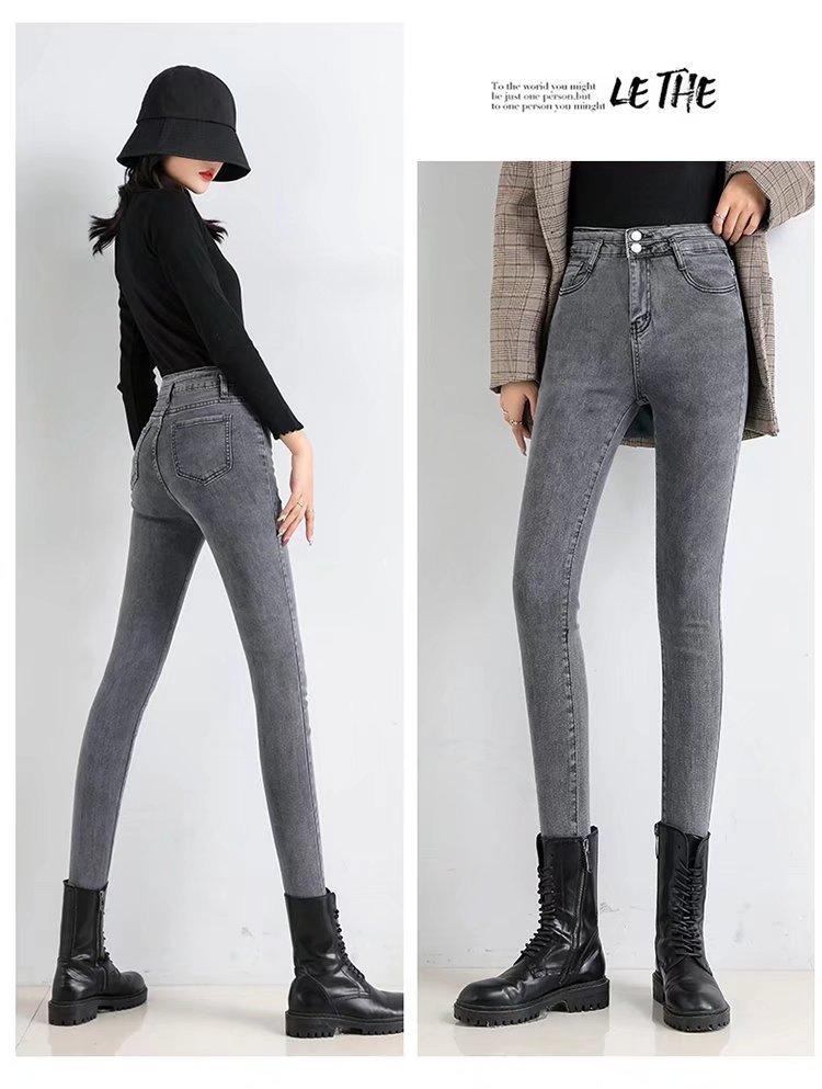 Pantalones vaqueros de cintura alta para mujer, de primavera y otoño, ajustados, adelgazantes, negros, elásticos, estilo coreano, con leggings y pantalones pitillo.