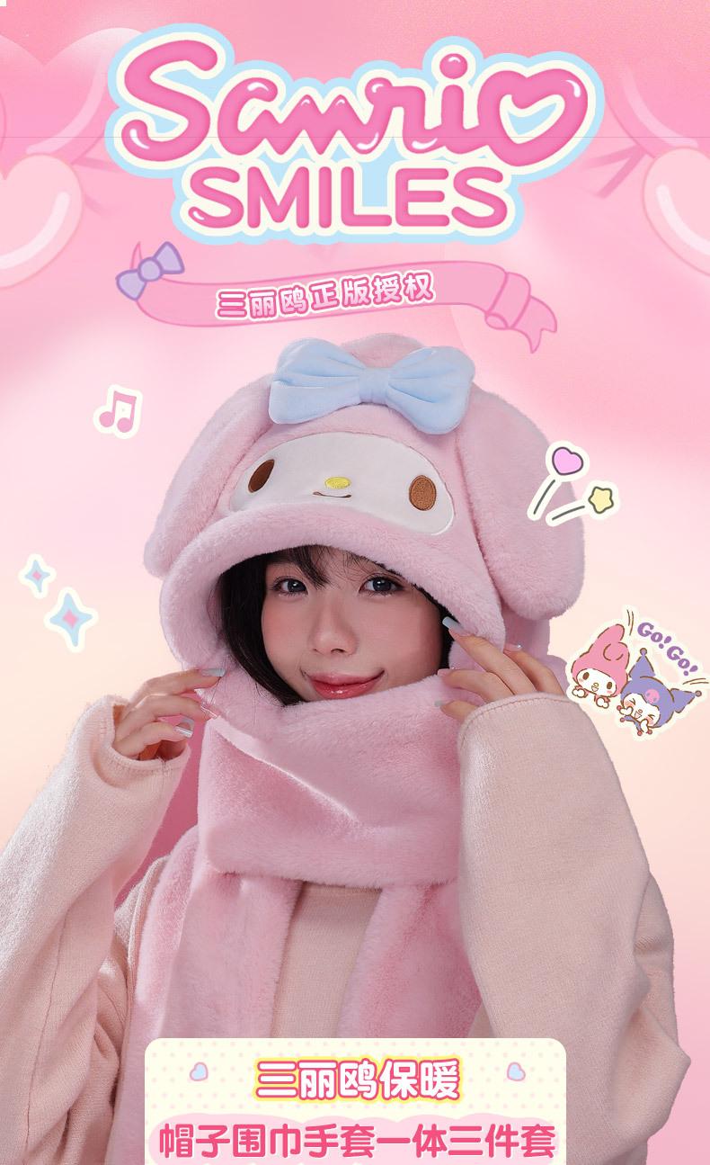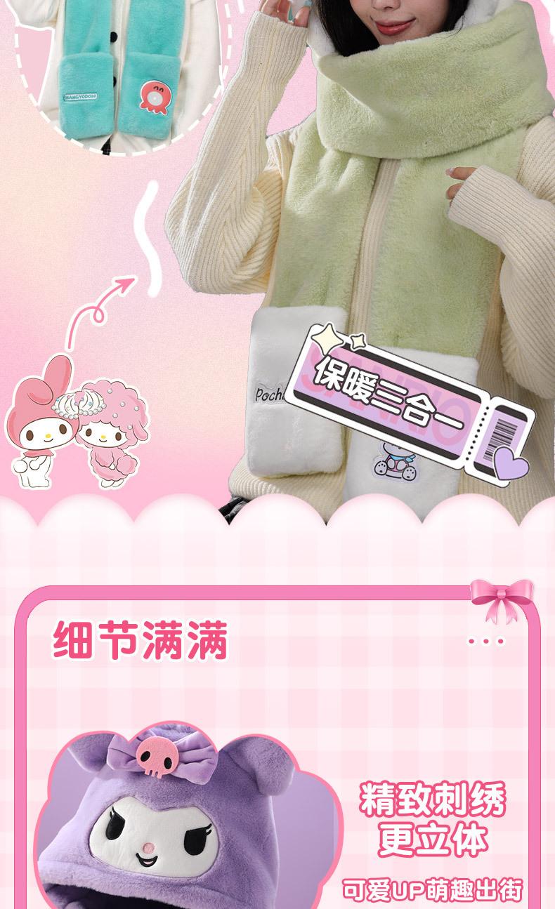 Conjunto de tres piezas de gorro y bufanda. Bufanda de invierno tres en uno para mujer. Gorro de felpa cálido, guantes y bufanda. Conjunto de una pieza.