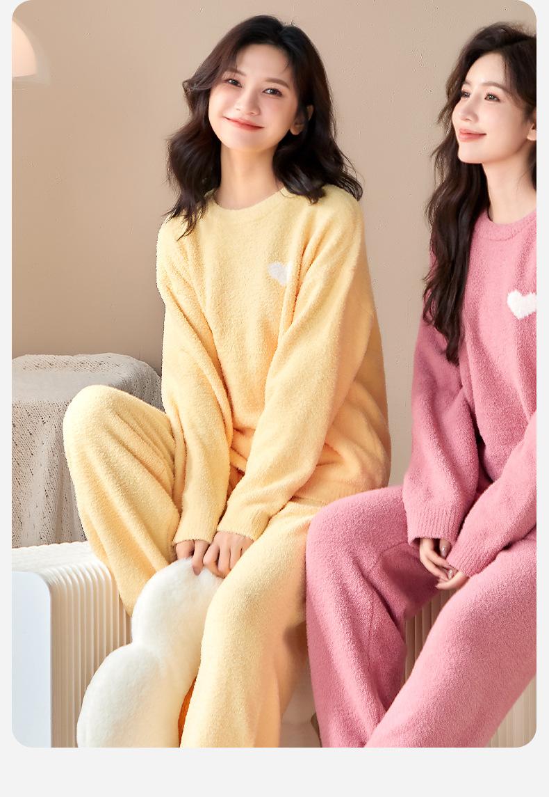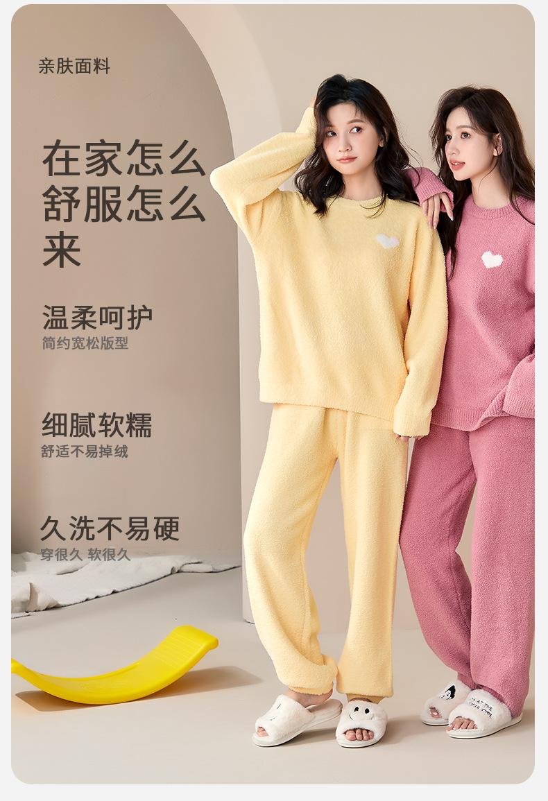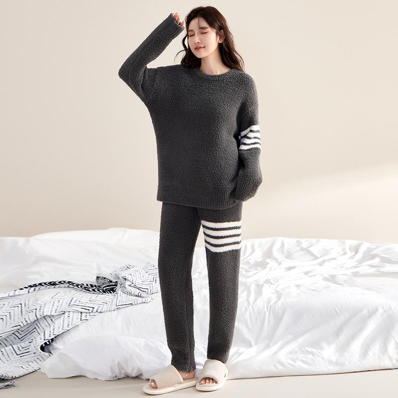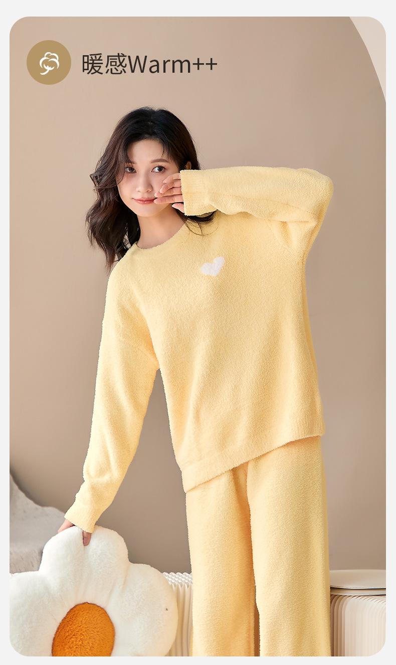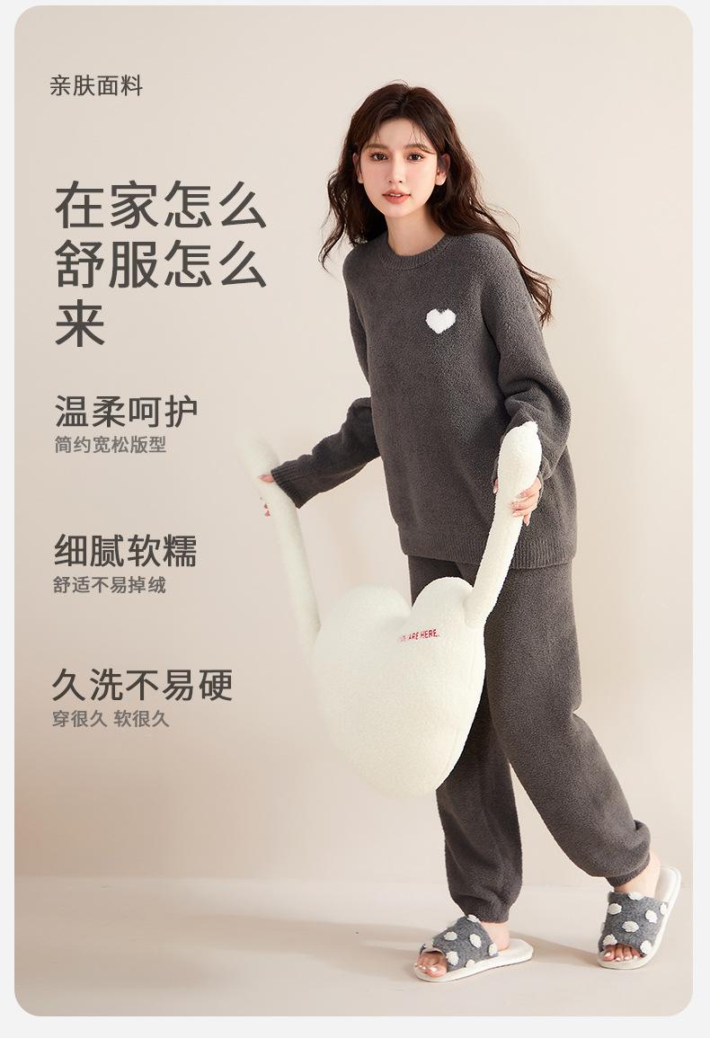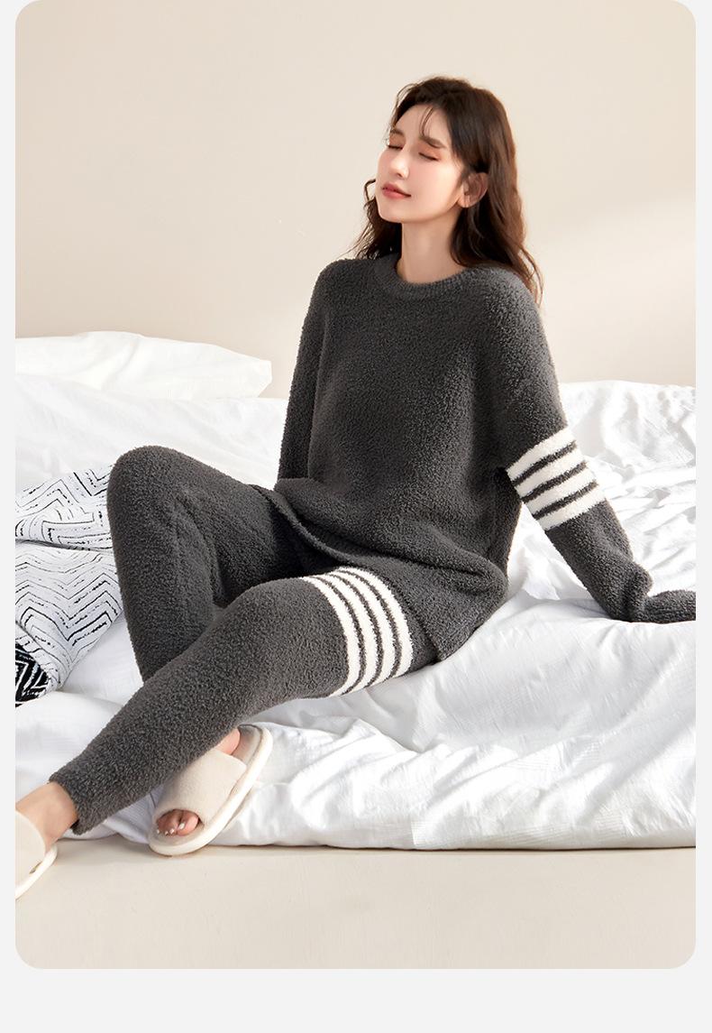 Traje de casa cálido, pijama suave de otoño e invierno para mujer, forro polar, terciopelo coral grueso, cuello redondo, se puede usar al aire libre