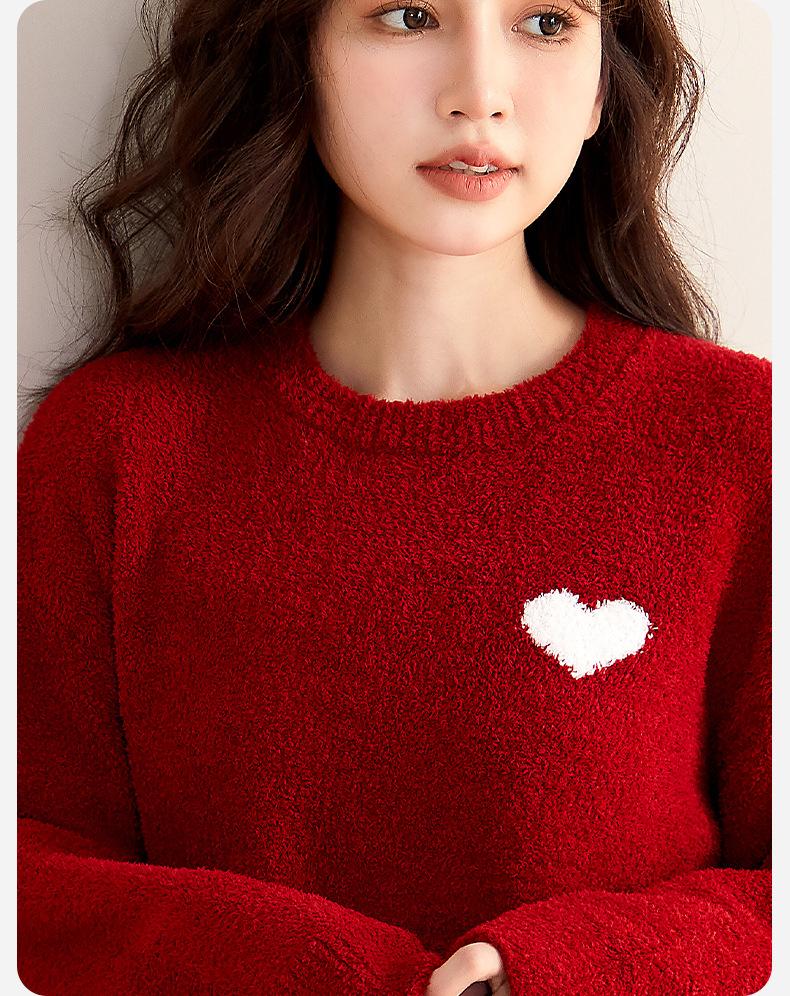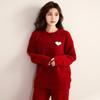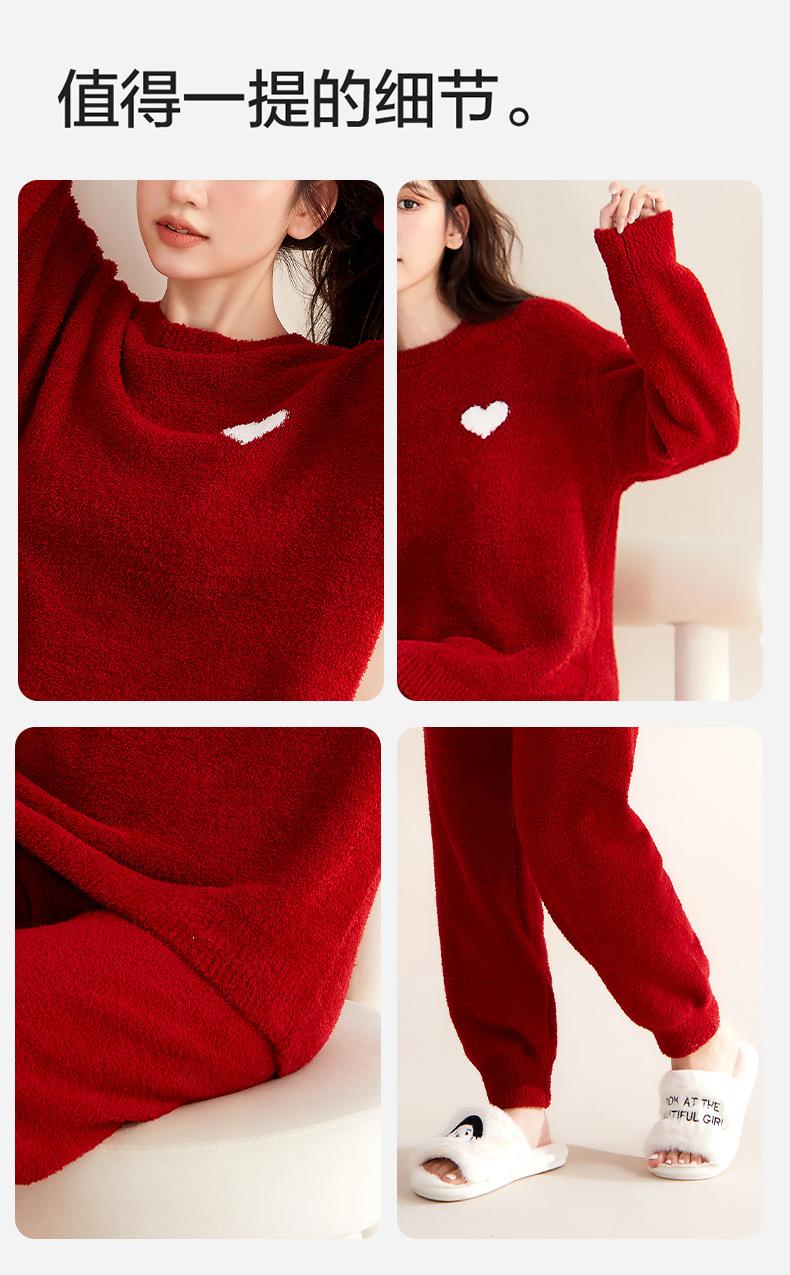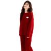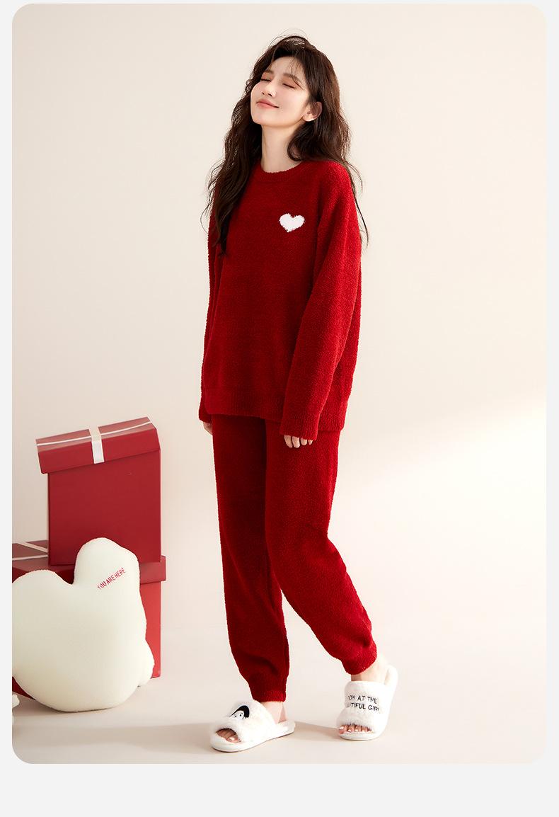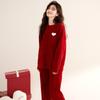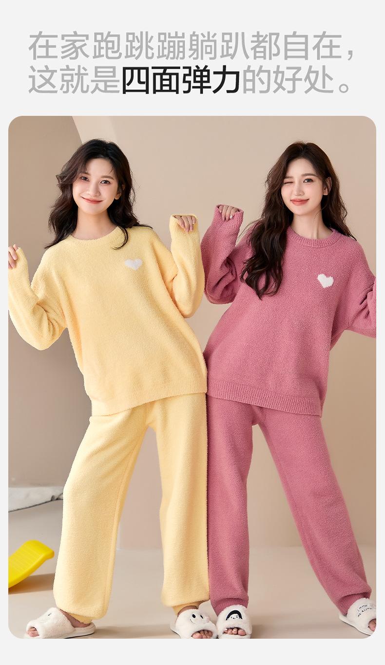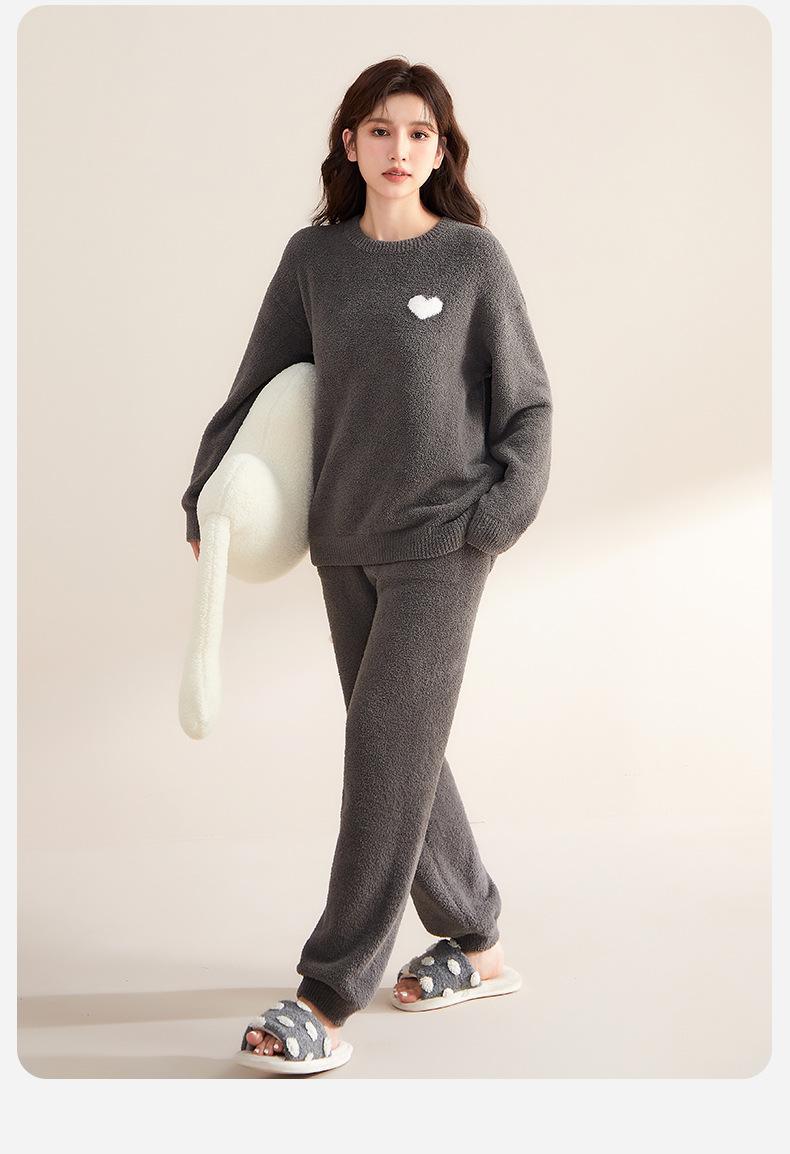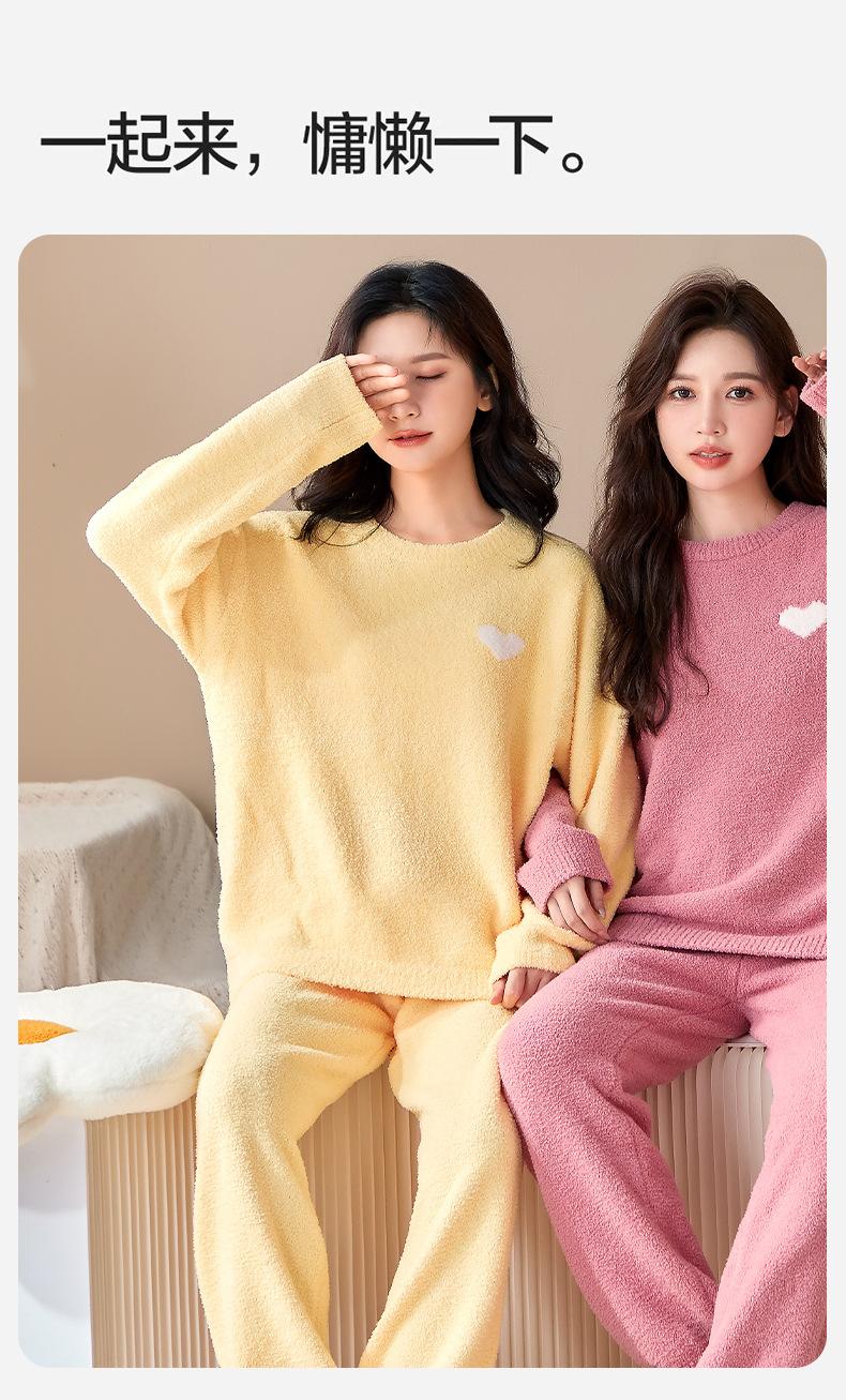 Traje de casa cálido, pijama suave de otoño e invierno para mujer, forro polar, terciopelo coral grueso, cuello redondo, se puede usar al aire libre