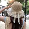 Sombrero de Playa para Mujer Verano Protección Solar Sombrero de Paja Estilo Hepburn Vacaciones de Playa Encaje Sombrero para el Sol Transpirable Sombrero de Pescador