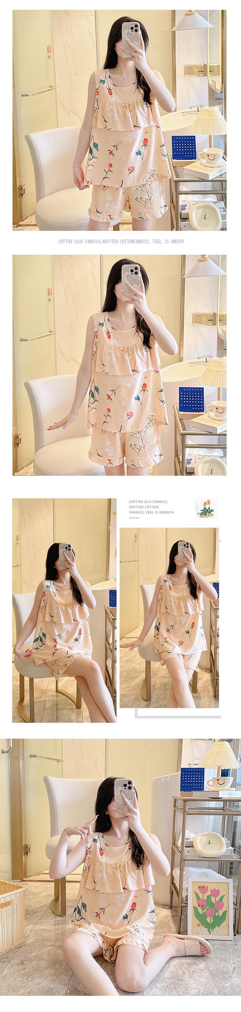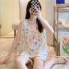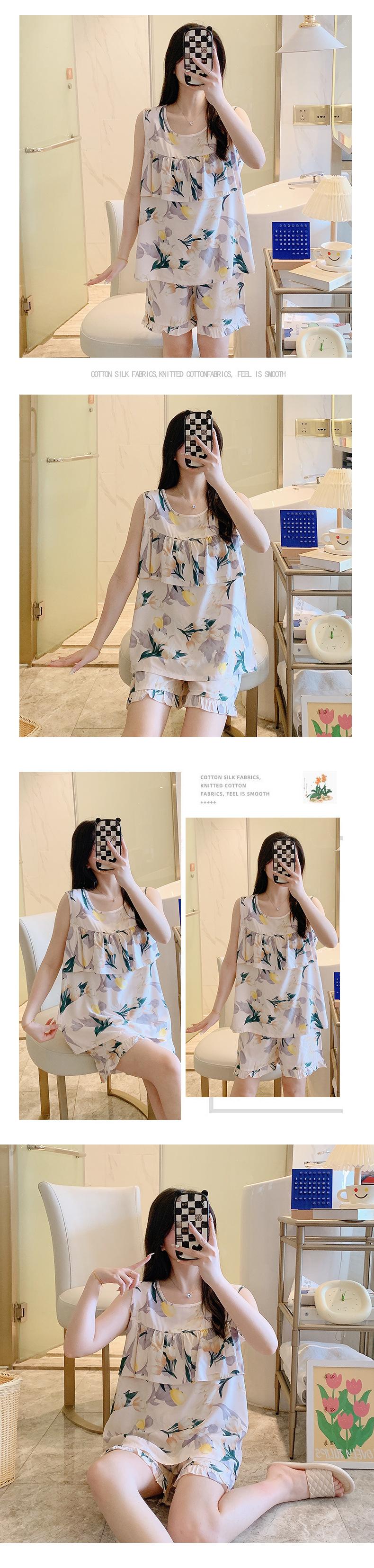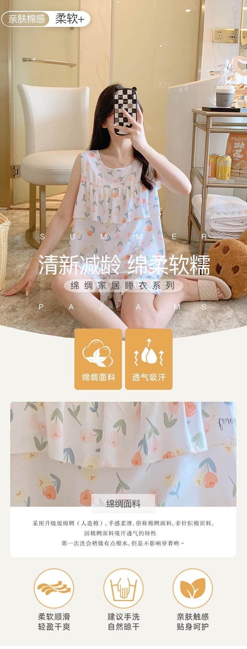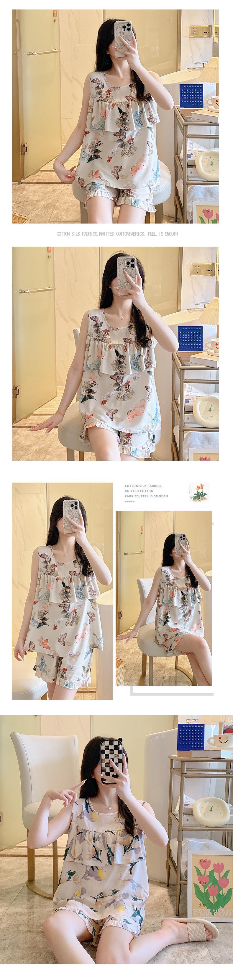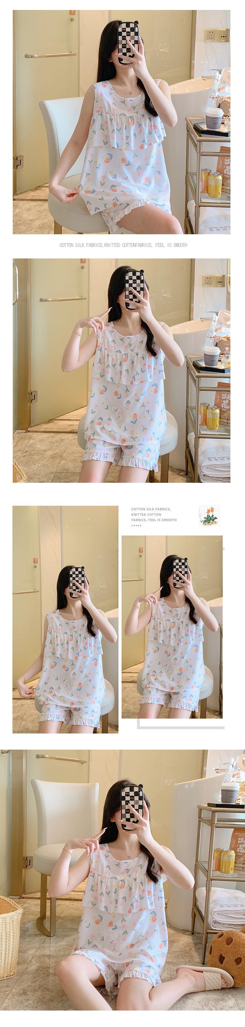Pijama de seda de algodón para mujer, traje de verano sin mangas, pijama fino de seda de algodón sintético, ropa para el hogar, ropa de abrigo de talla grande dulce