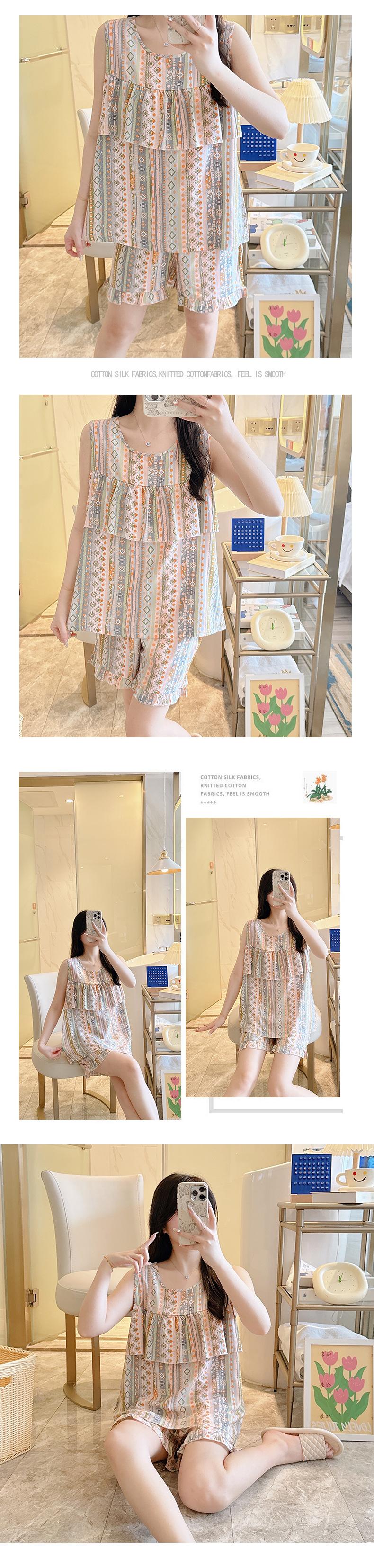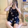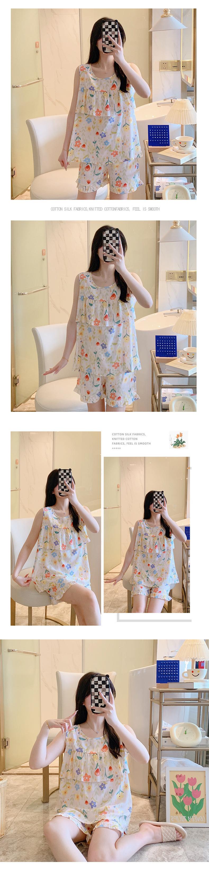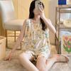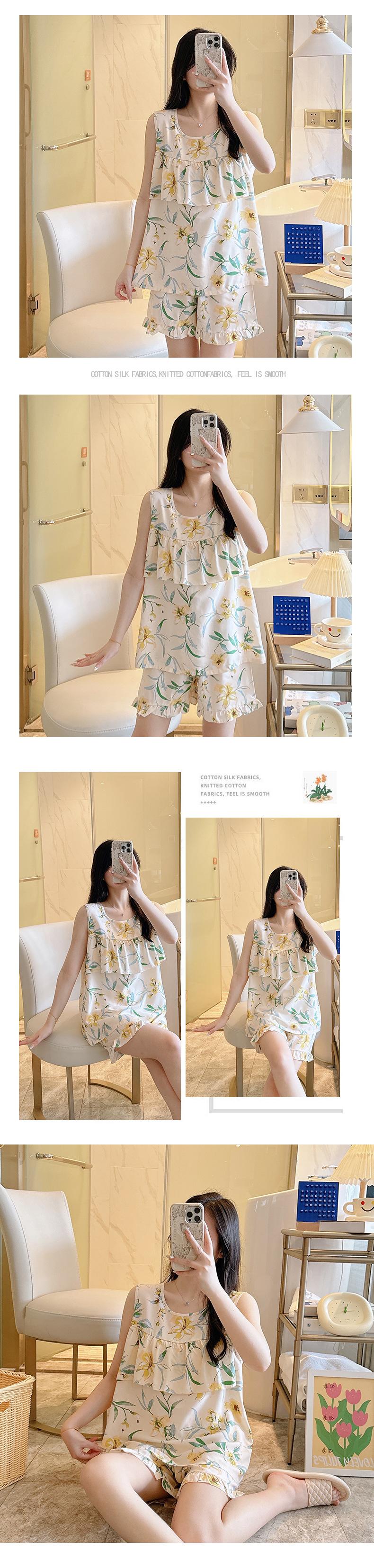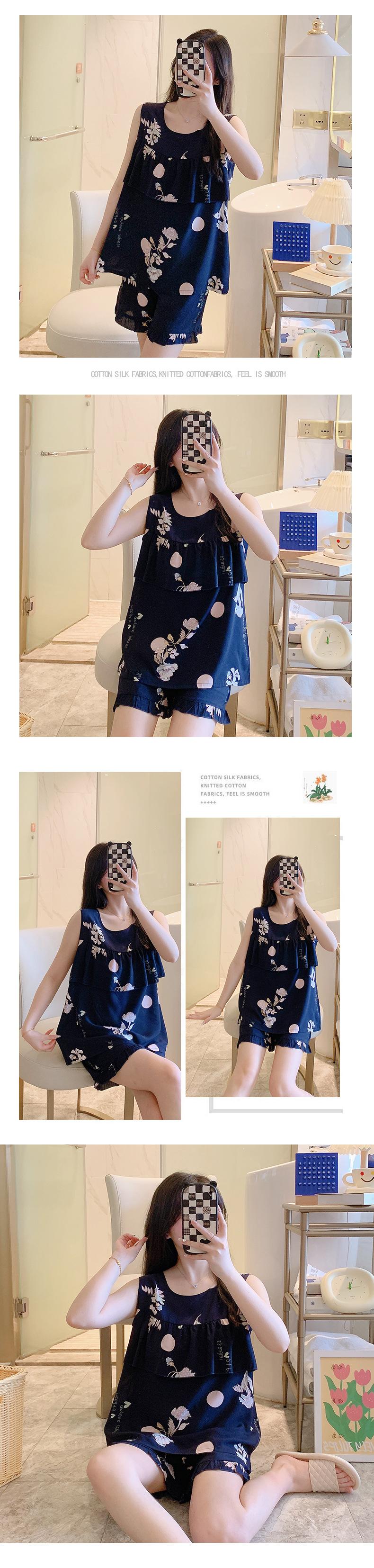 Pijama de seda de algodón para mujer, traje de verano sin mangas, pijama fino de seda de algodón sintético, ropa para el hogar, ropa de abrigo de talla grande dulce