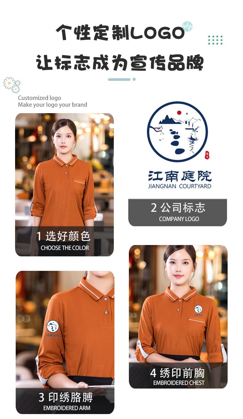 Ropa de trabajo de camarero de catering, camiseta de manga larga para mujer, tienda de té con leche, ropa de cafetería, restaurante de comida rápida, suéter personalizado para otoño e invierno