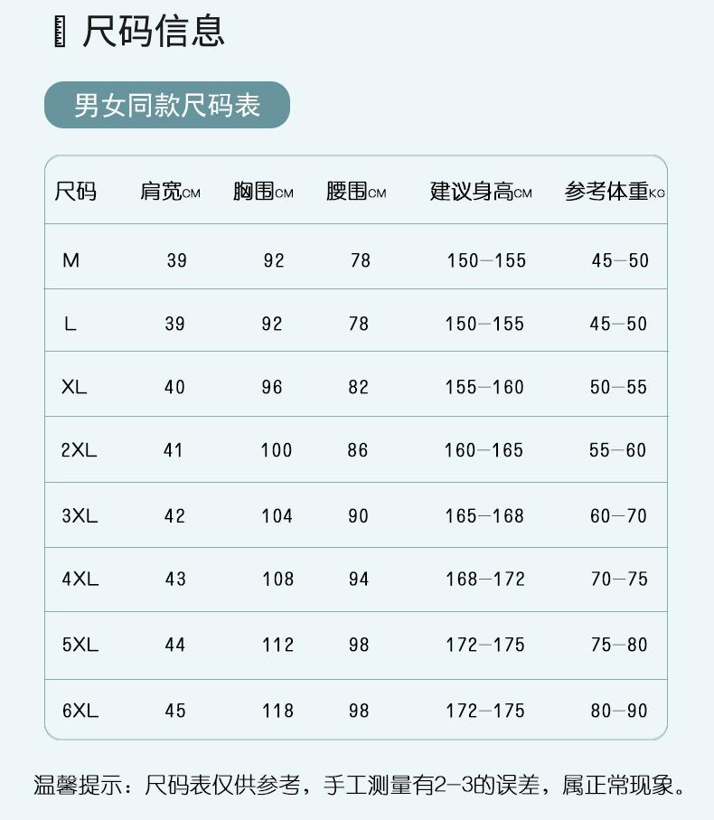 M, L, XL, 2XL, 3XL, 4XL, 5XL, 6XL