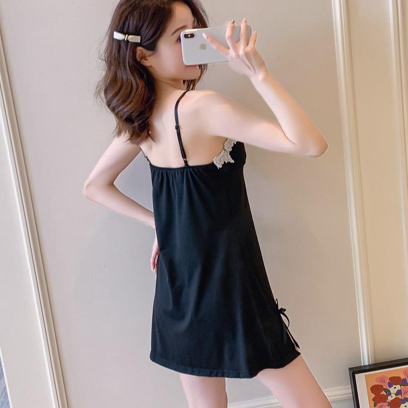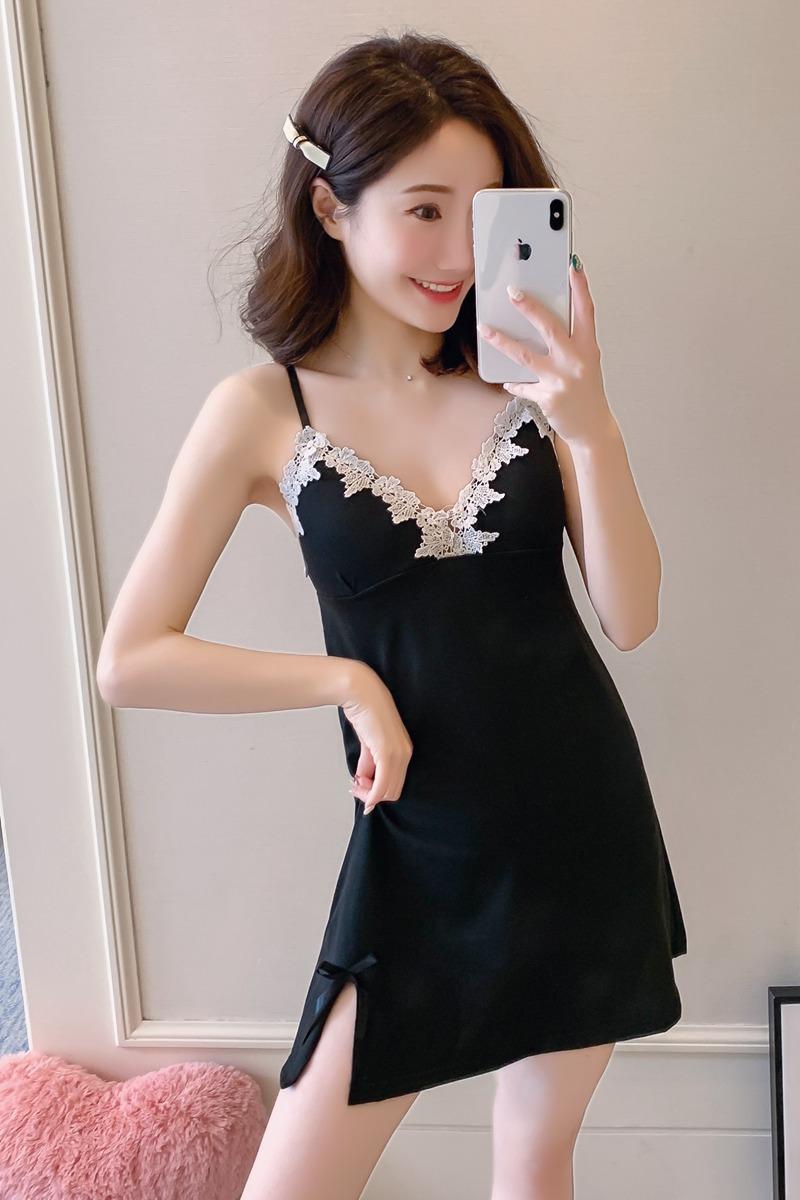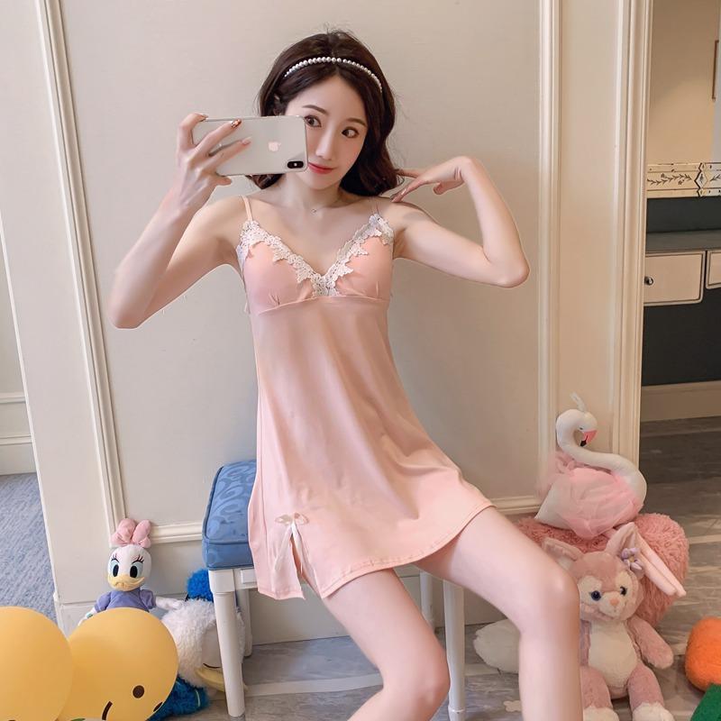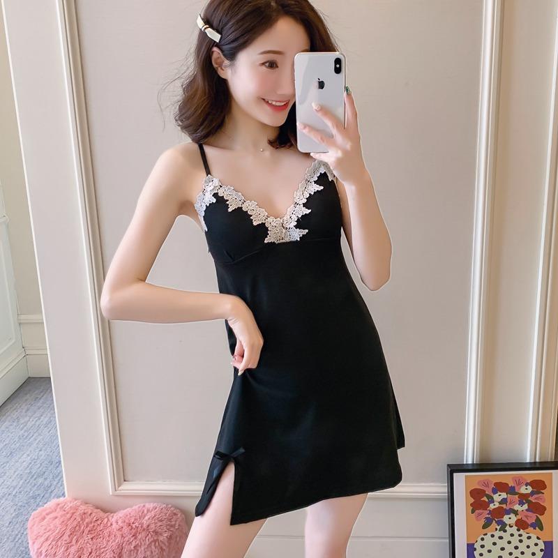 Pijama de encaje de verano para mujer, nuevo estilo con almohadilla para el pecho, ropa interior emocional de pecho pequeño, camisón sexy con tirantes, puro deseo para mujer