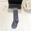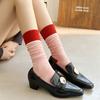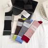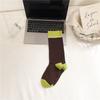 Calcetines de otoño e invierno para mujer, estilo japonés, calcetines de pantorrilla, calcetines retro de pelo largo con contraste de color, calcetines largos hasta la rodilla hechos a mano con ojo a ojo