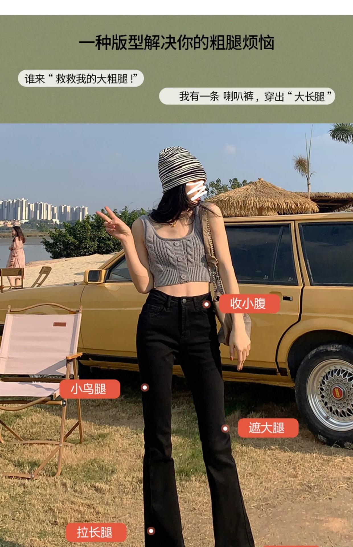 Pantalones vaqueros ajustados para mujer, de primavera, de talla grande, para chica gordita, de cintura alta, adelgazantes, versátiles, elásticos, negros, con diseño de herradura acampanado