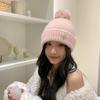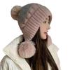 Gorro de lana de invierno para mujer, gorro de punto, estilo occidental, con protección para las orejas, bonito gorro de estilo coreano cálido con tres bolas de cuentas.