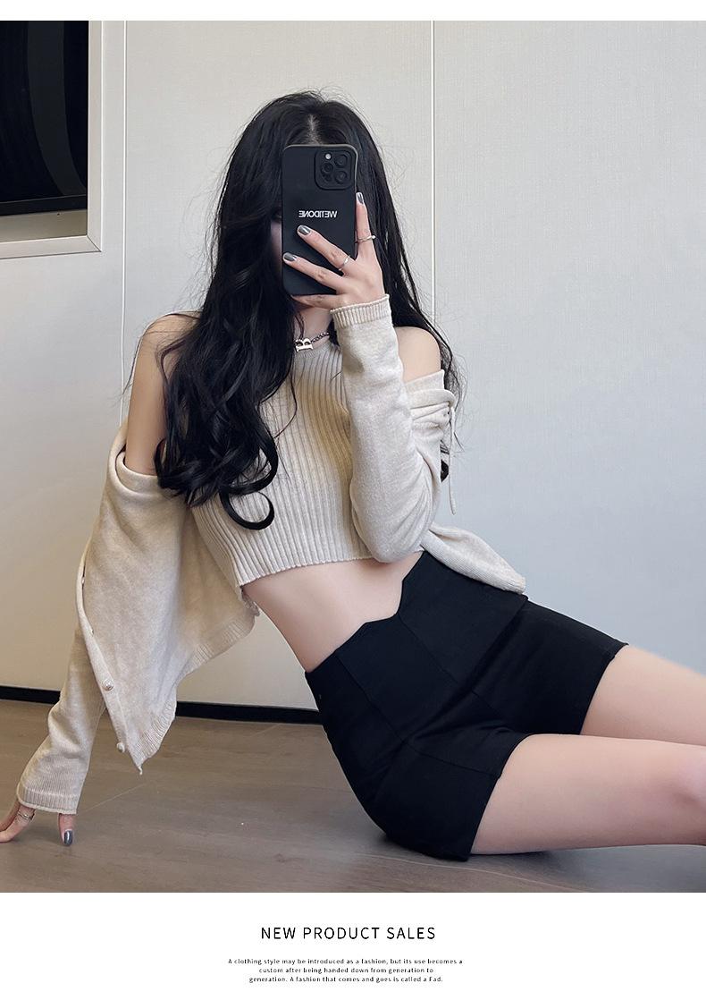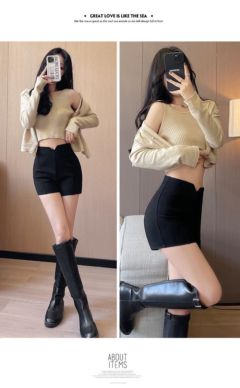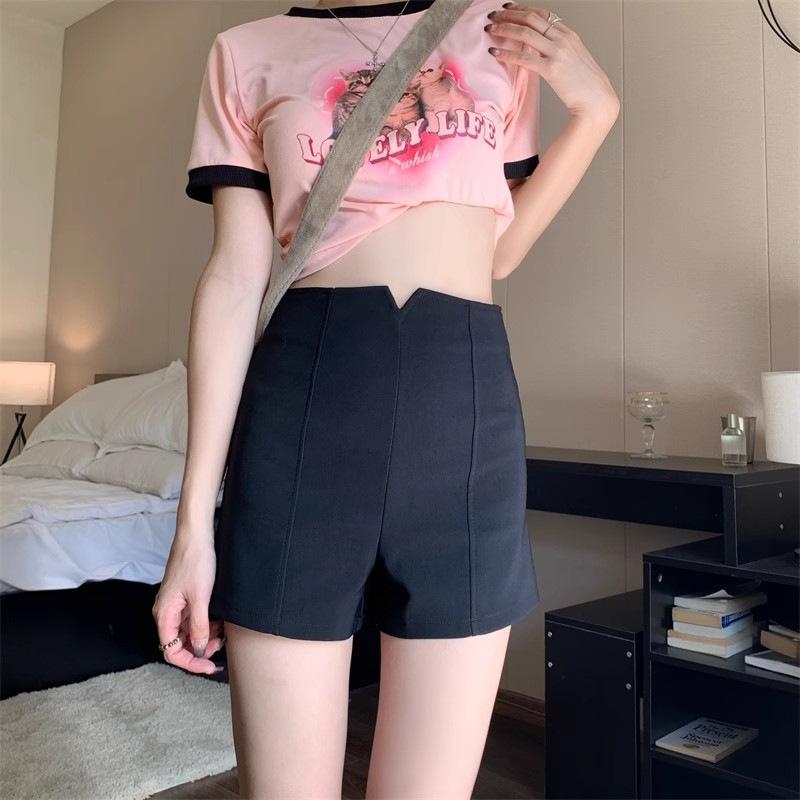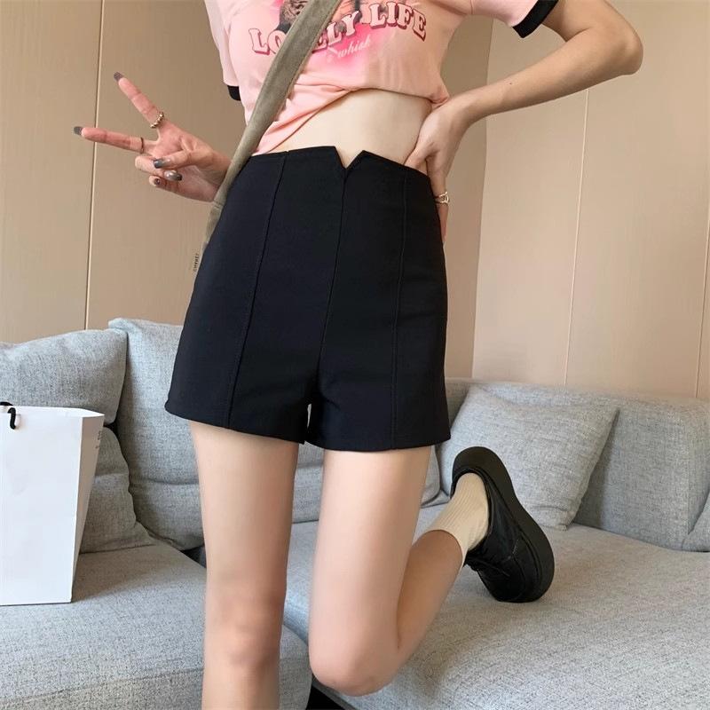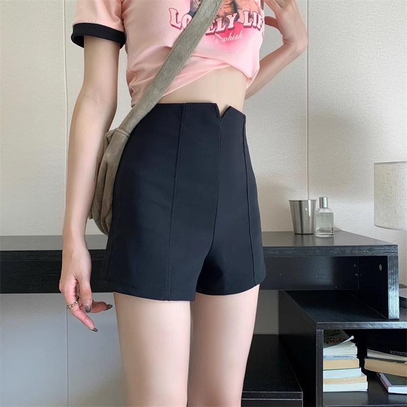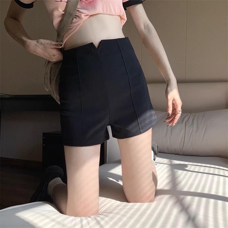 Traje Negro Shorts Delgados para Mujer 2025 Verano Nuevo Estilo Pequeño Cintura Alta Ajustado Sexy Línea A Pantalones Cortos Hot