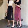 Falda dividida para mujer, verano 2023, nuevo estilo, elegante, negra, de longitud media, cintura alta, corte A, falda adelgazante.