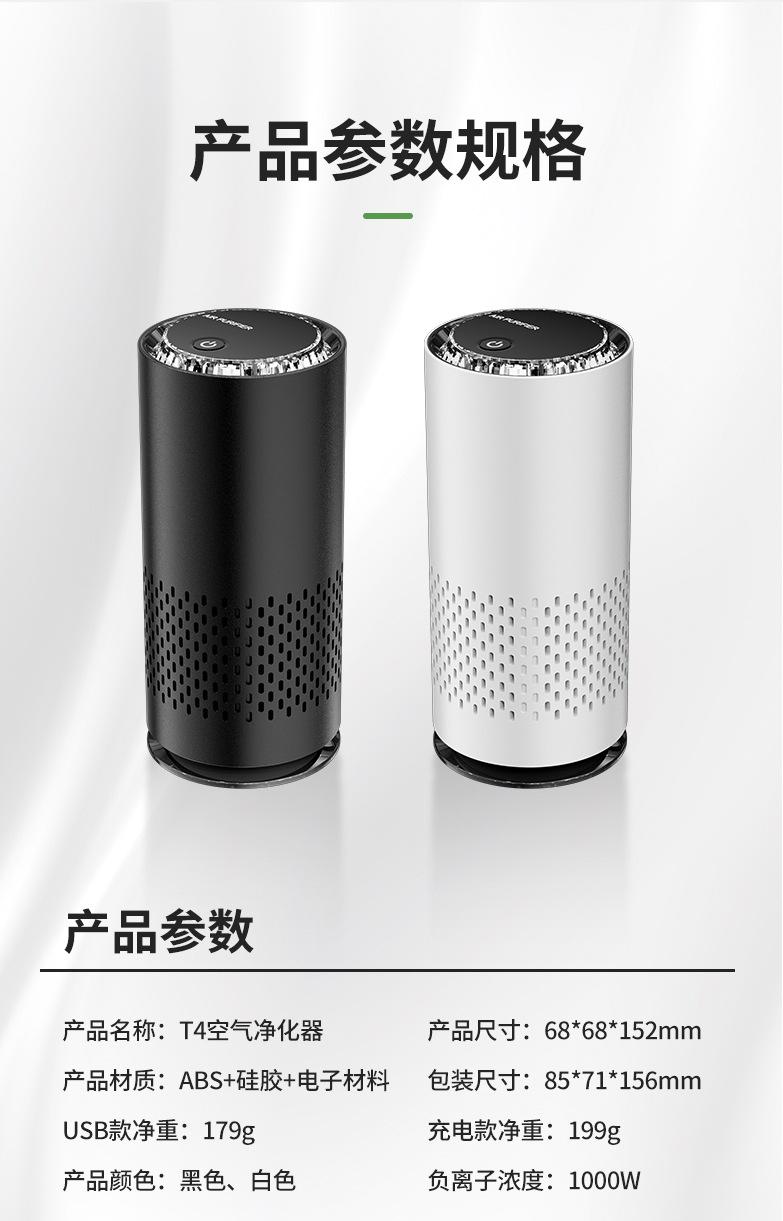 Purificador de aire para coche, nuevo, para casa, oficina, escritorio, iones negativos, pequeño, USB, para coche