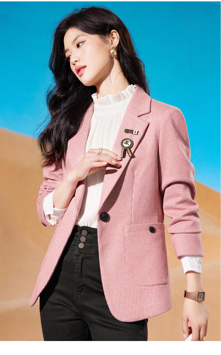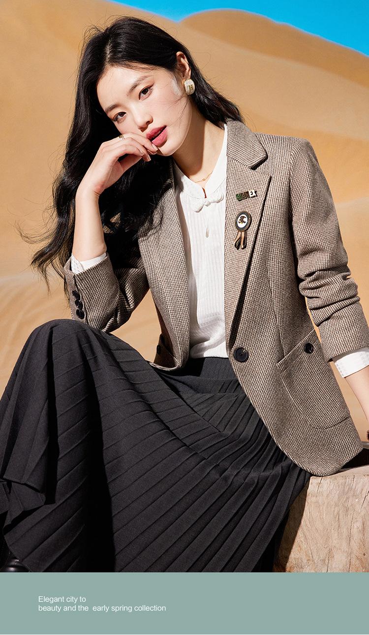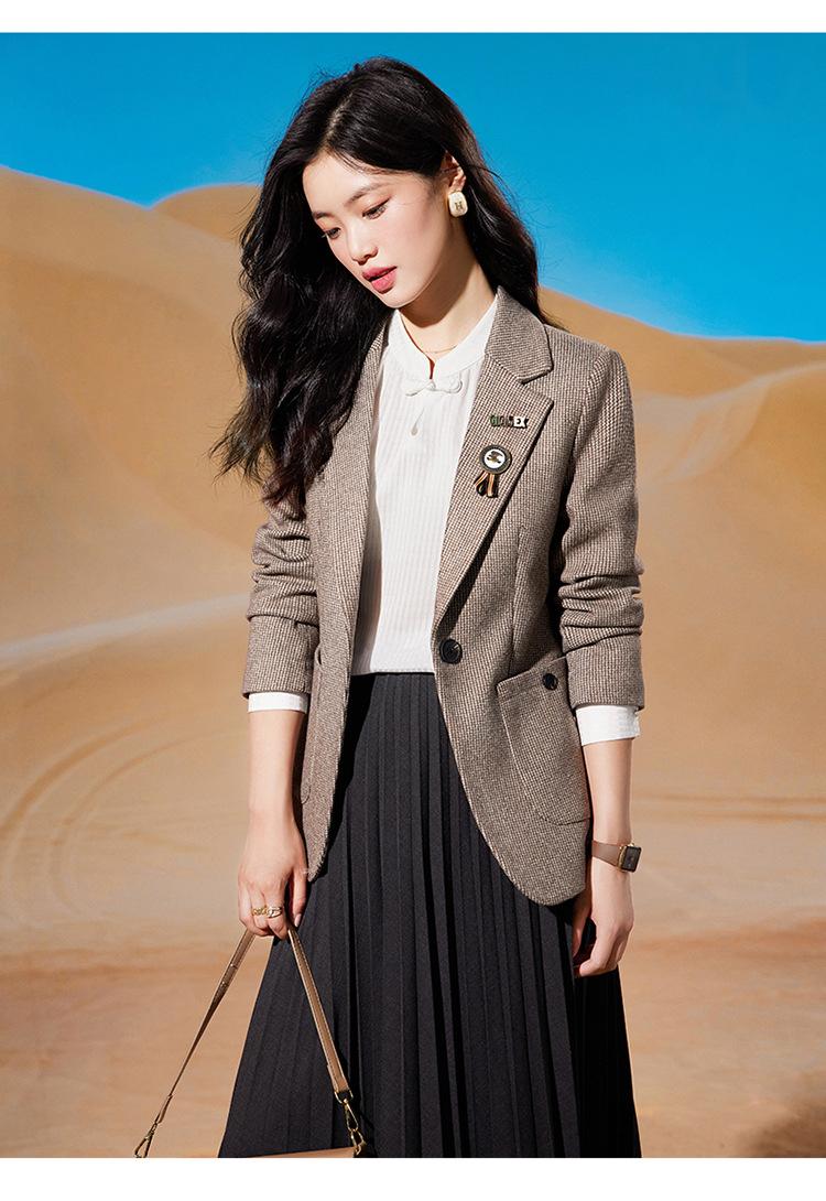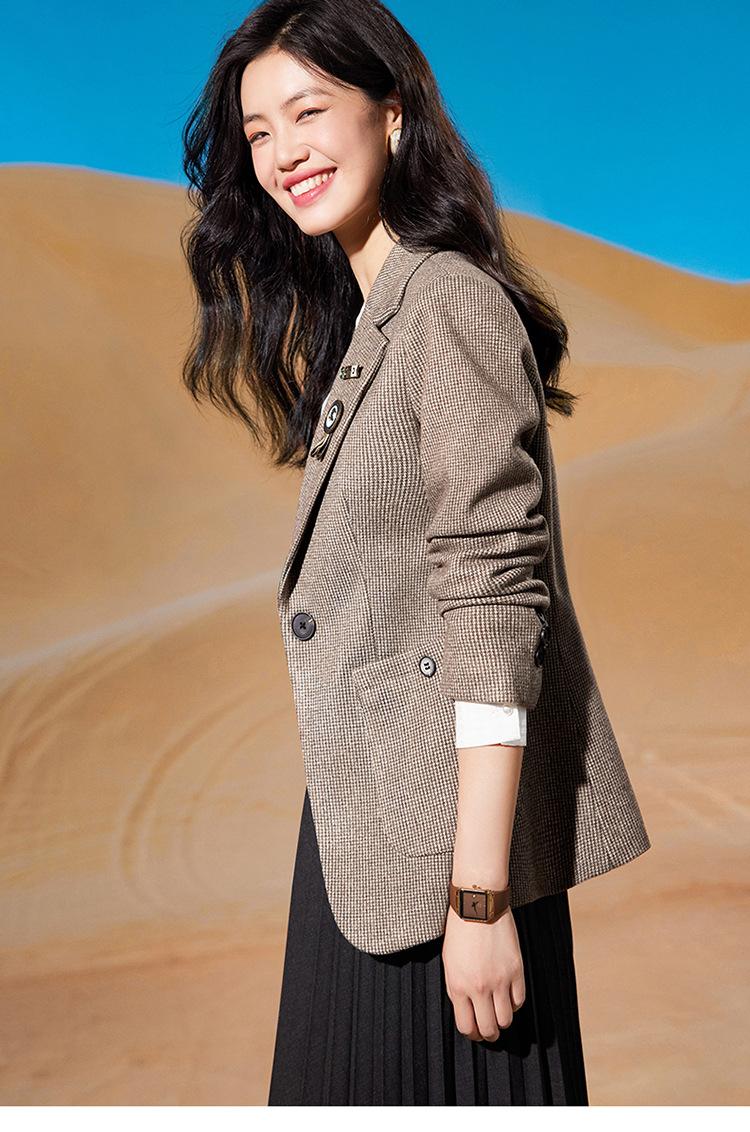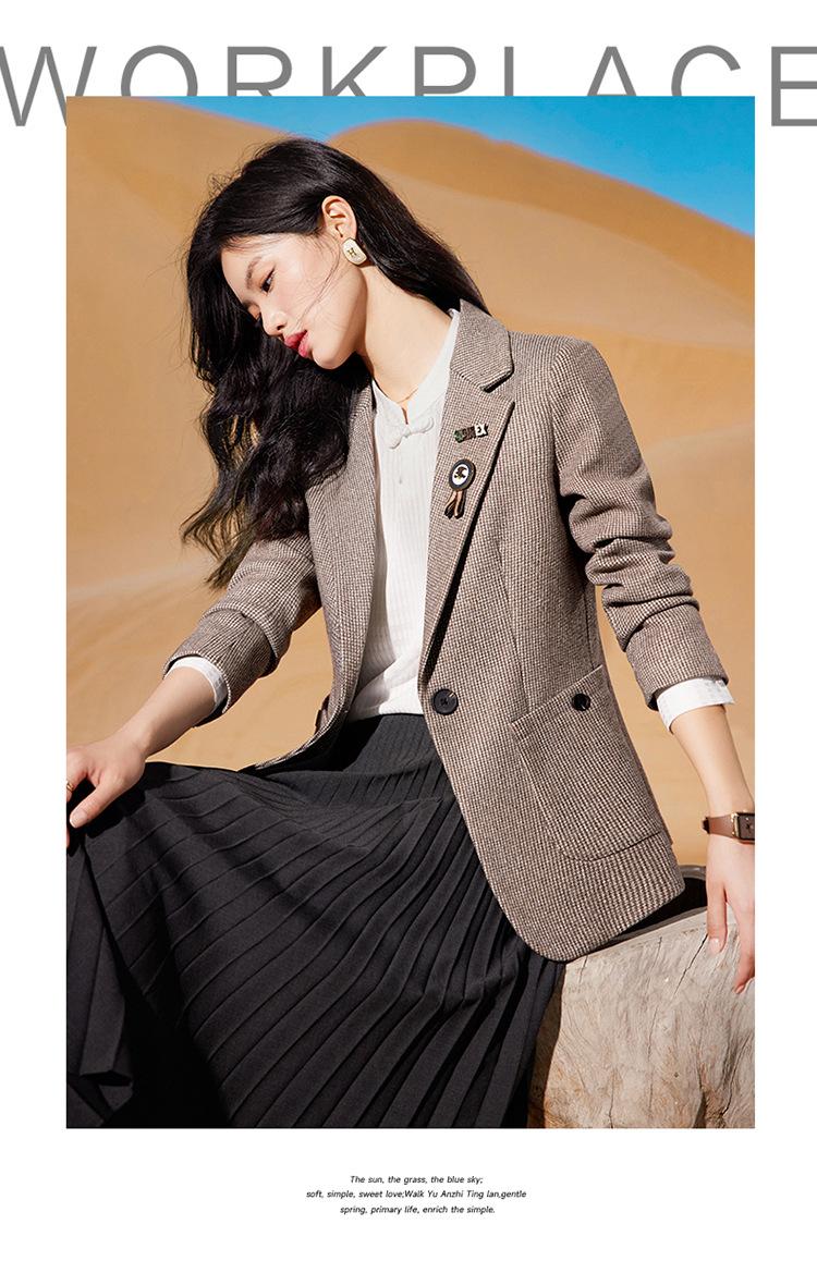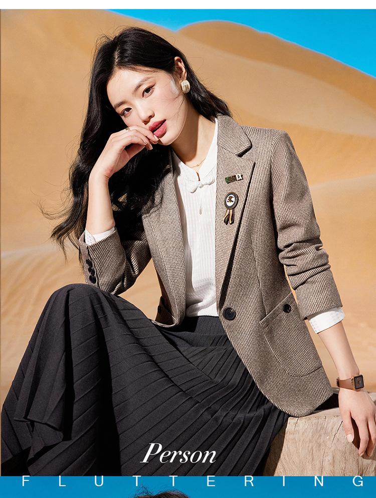 Transfronterizo Nuevo Otoño e Invierno Elegante Trajecito Pequeño de Lana Gruesa Chaqueta de Lana de Pata de Gallo Corta para Mujer