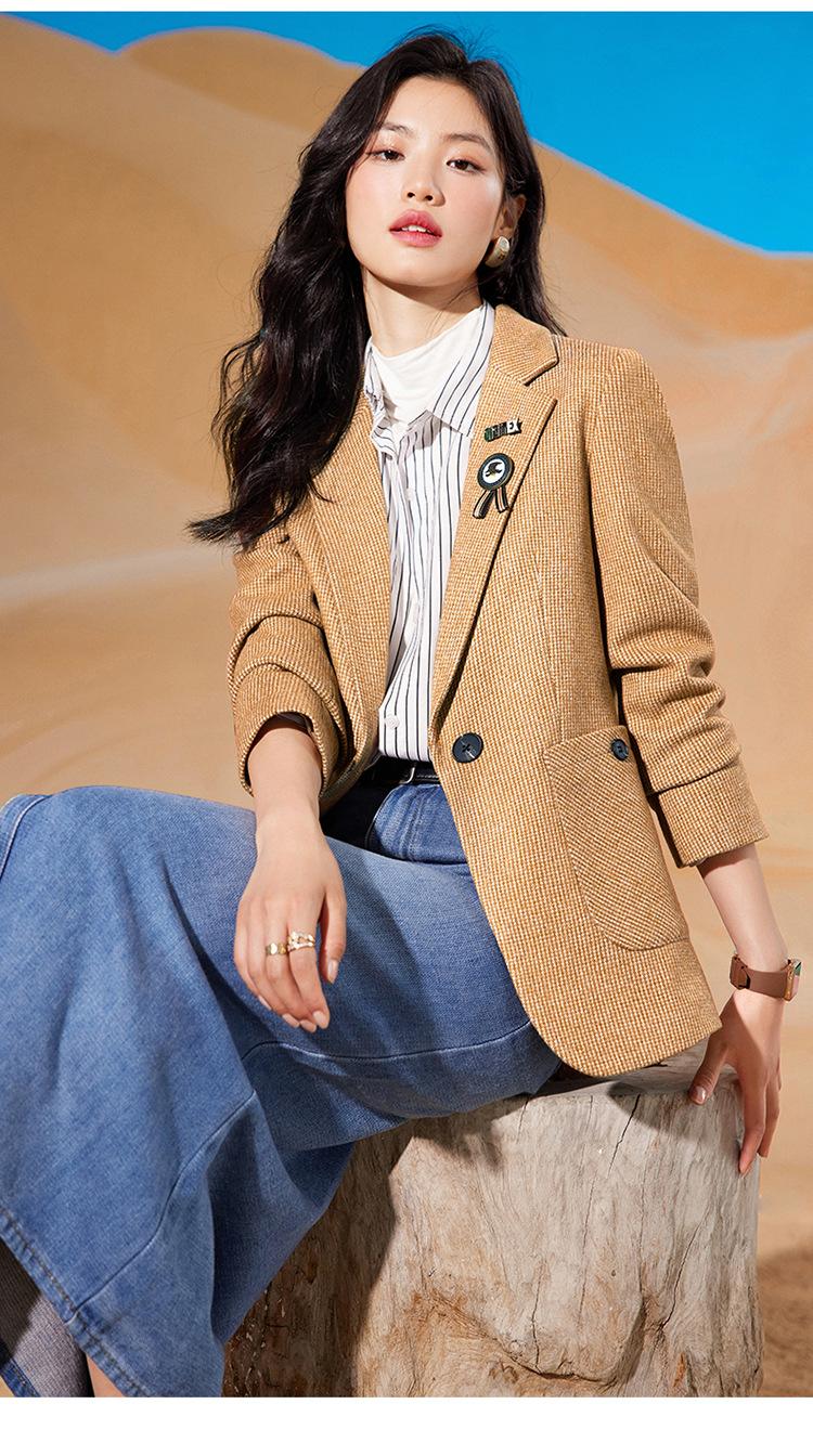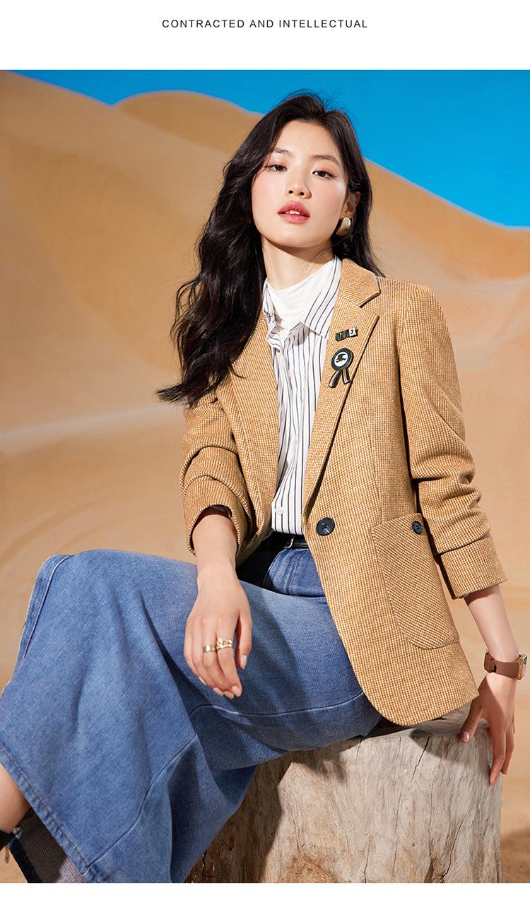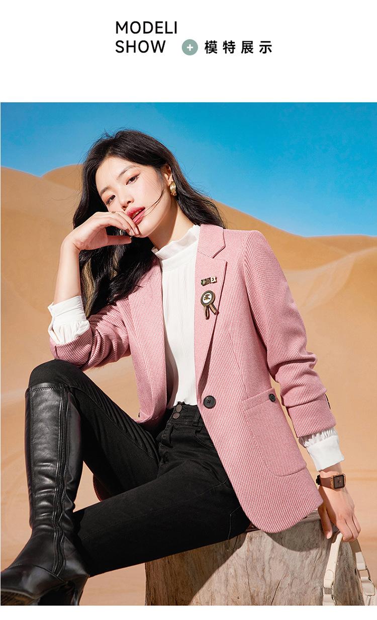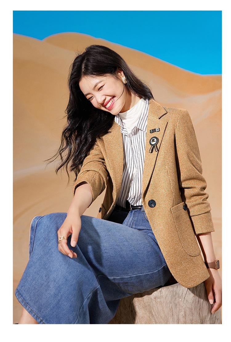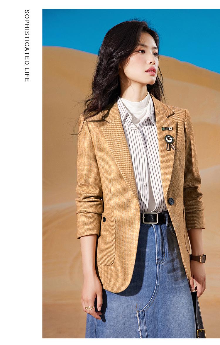 Transfronterizo Nuevo Otoño e Invierno Elegante Trajecito Pequeño de Lana Gruesa Chaqueta de Lana de Pata de Gallo Corta para Mujer