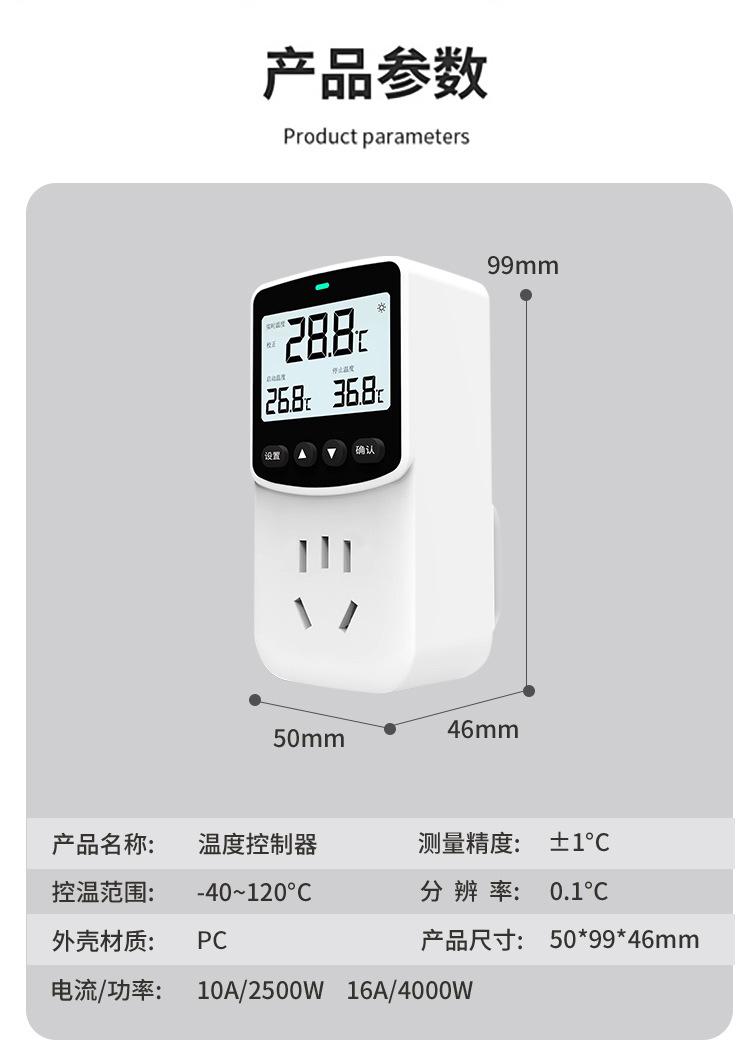 Interruptor de control de temperatura inteligente con pantalla digital, controlador de temperatura para refrigerador, pecera, caldera, controlador de temperatura ajustable automático con sonda