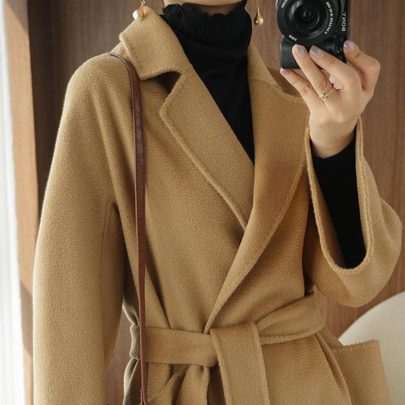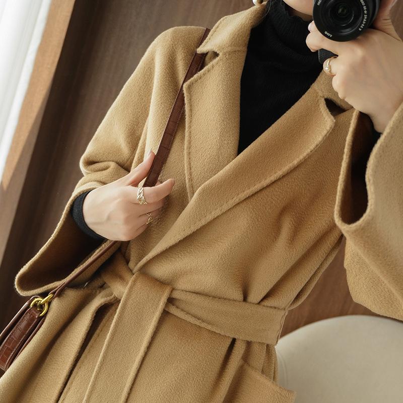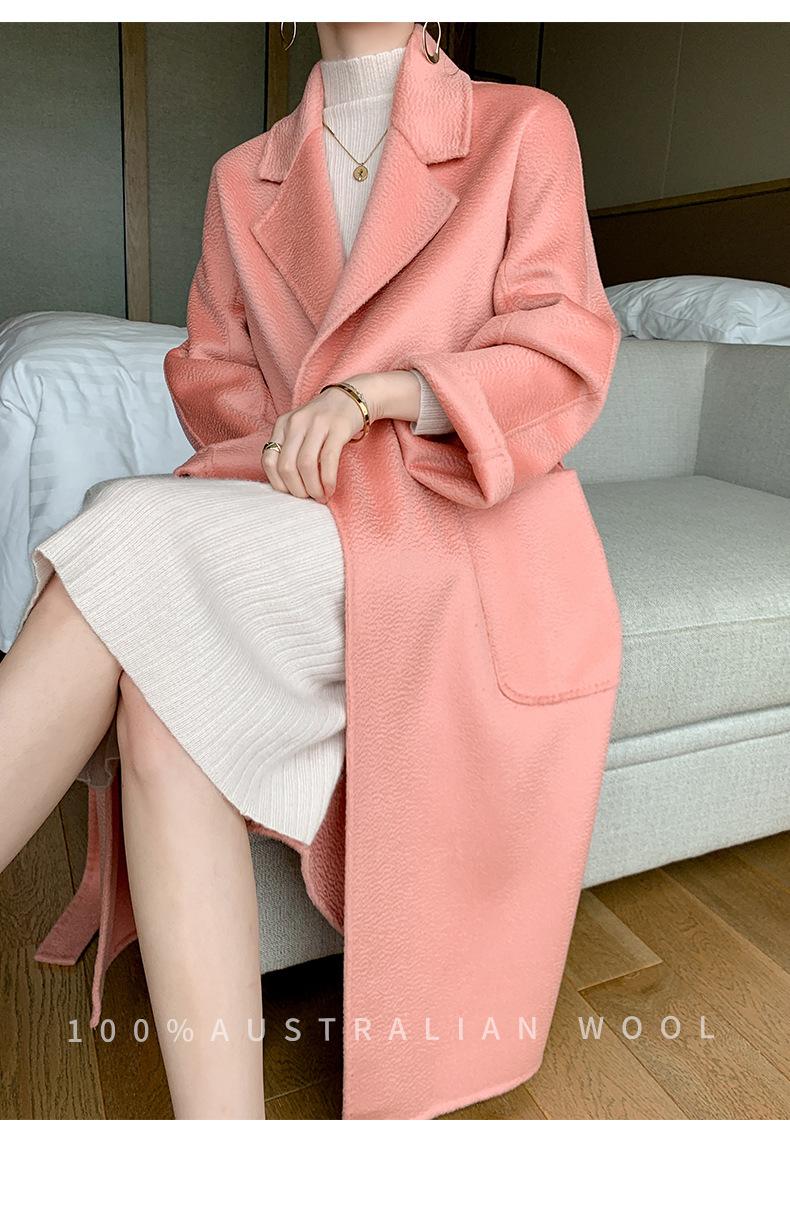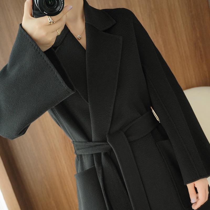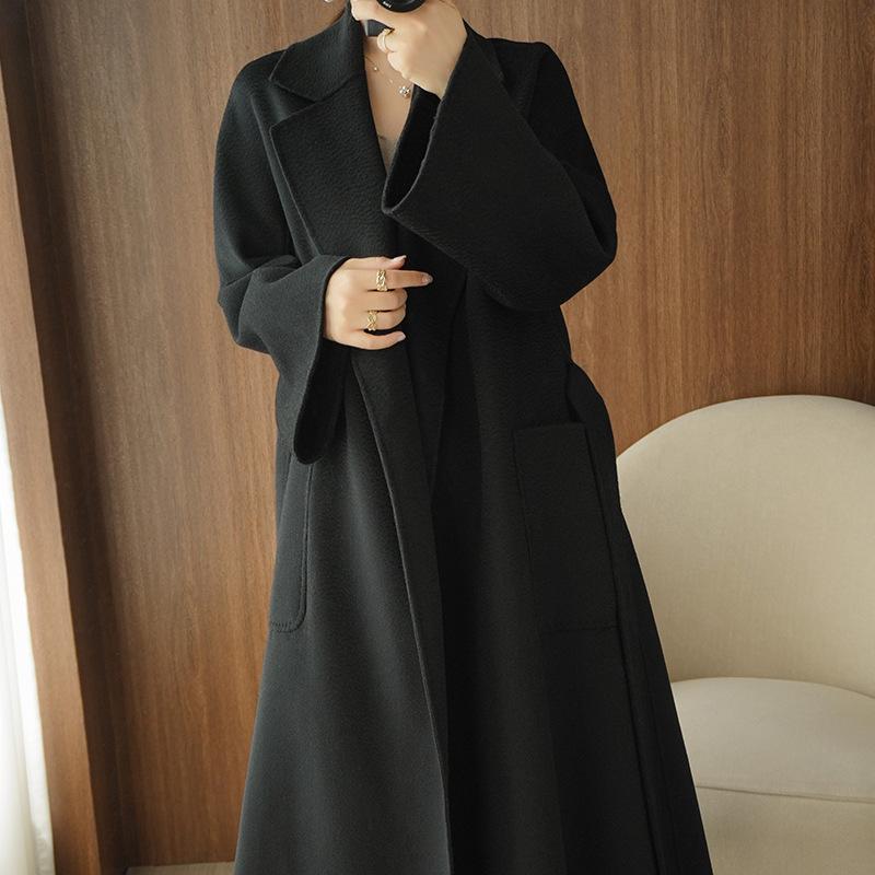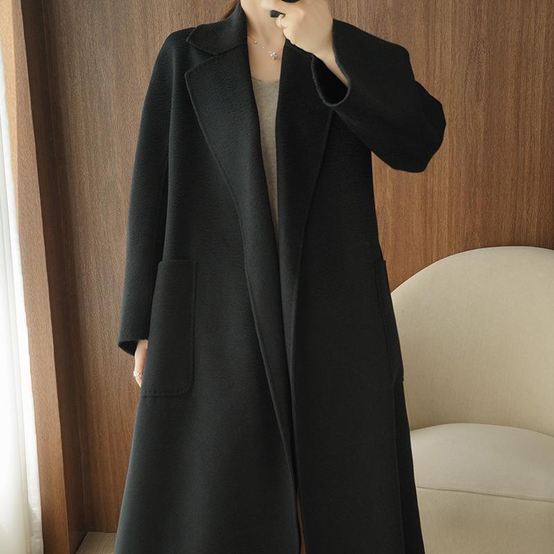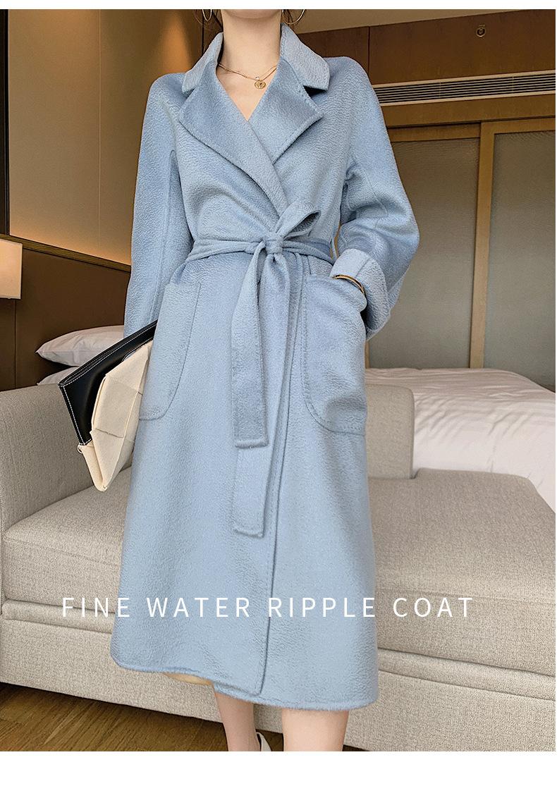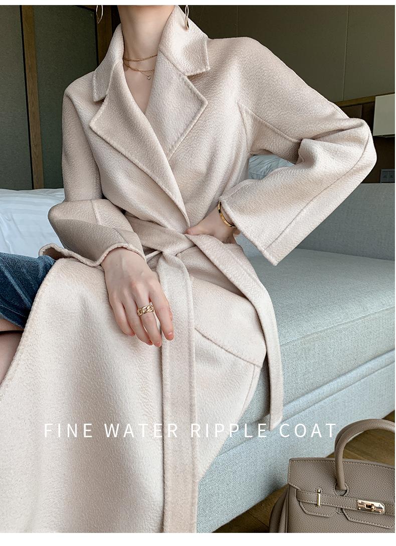 Abrigo de lana de doble cara nuevo de otoño e invierno, abrigo de ondulación de agua para mujer, abrigo de lana de doble cara de alta gama para mujer, abrigo largo