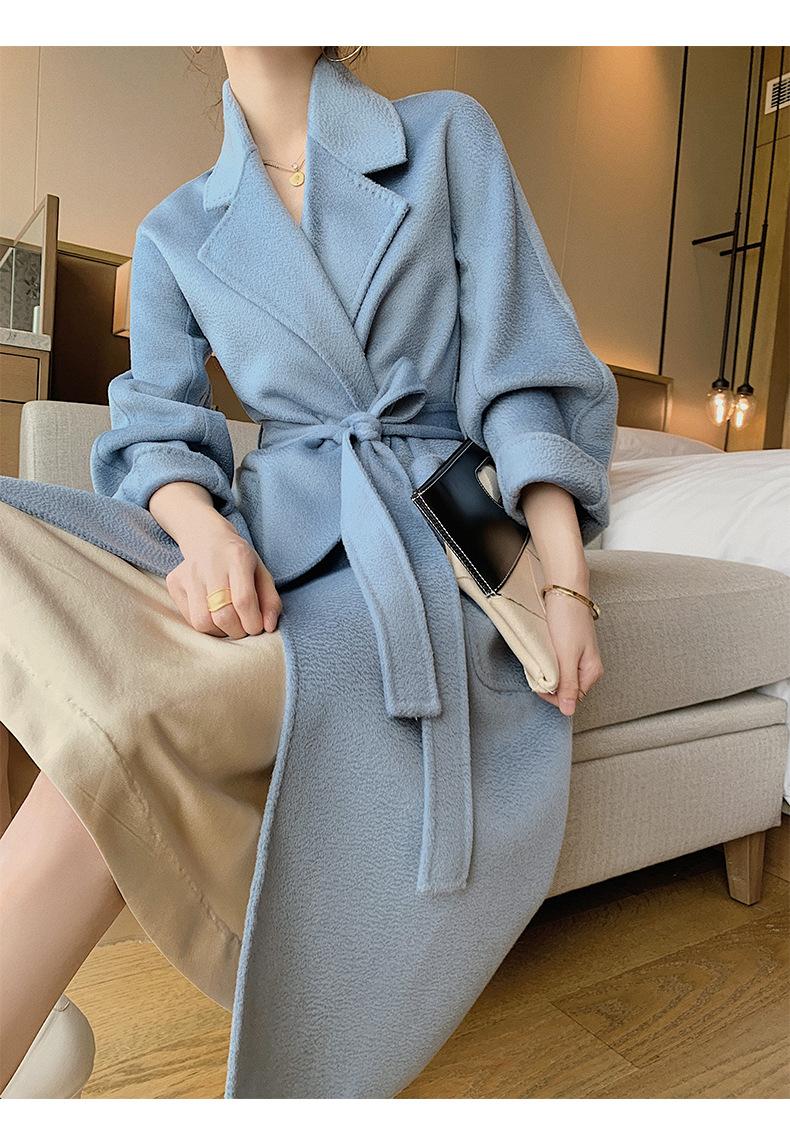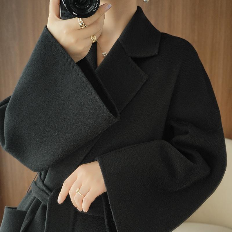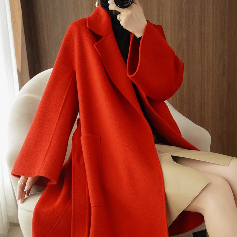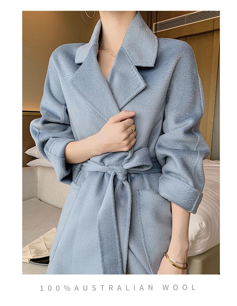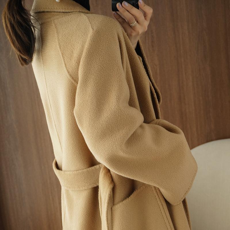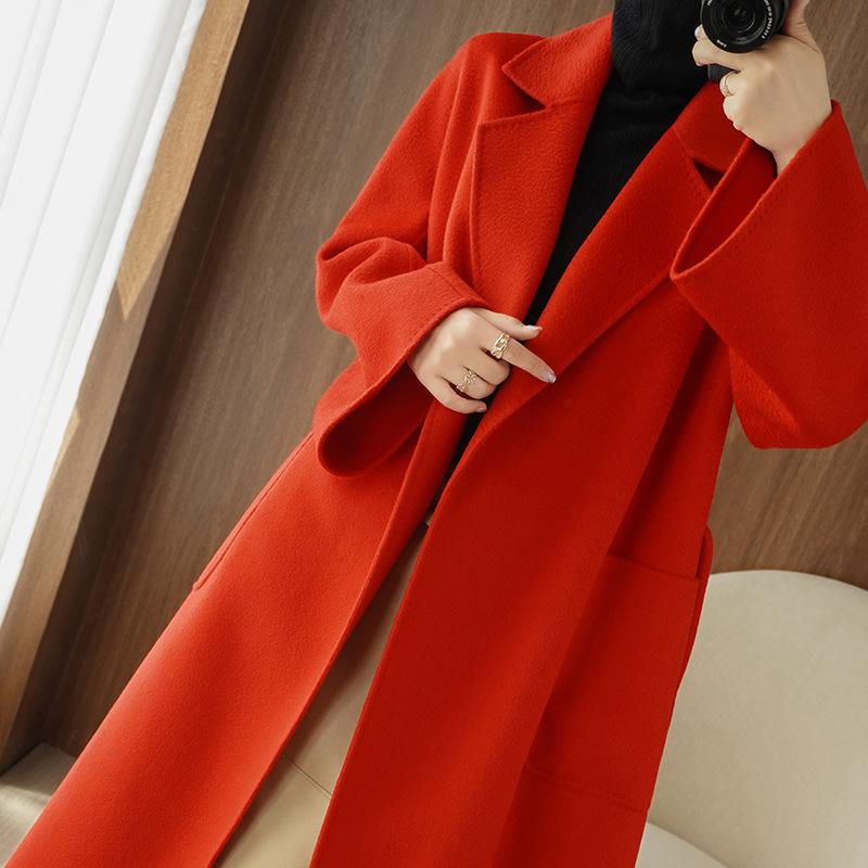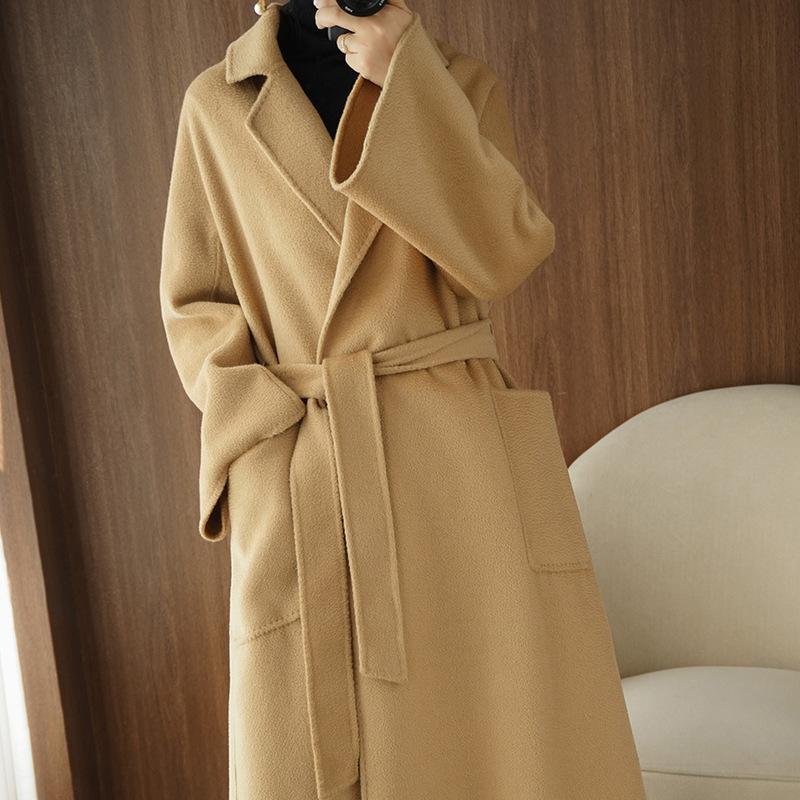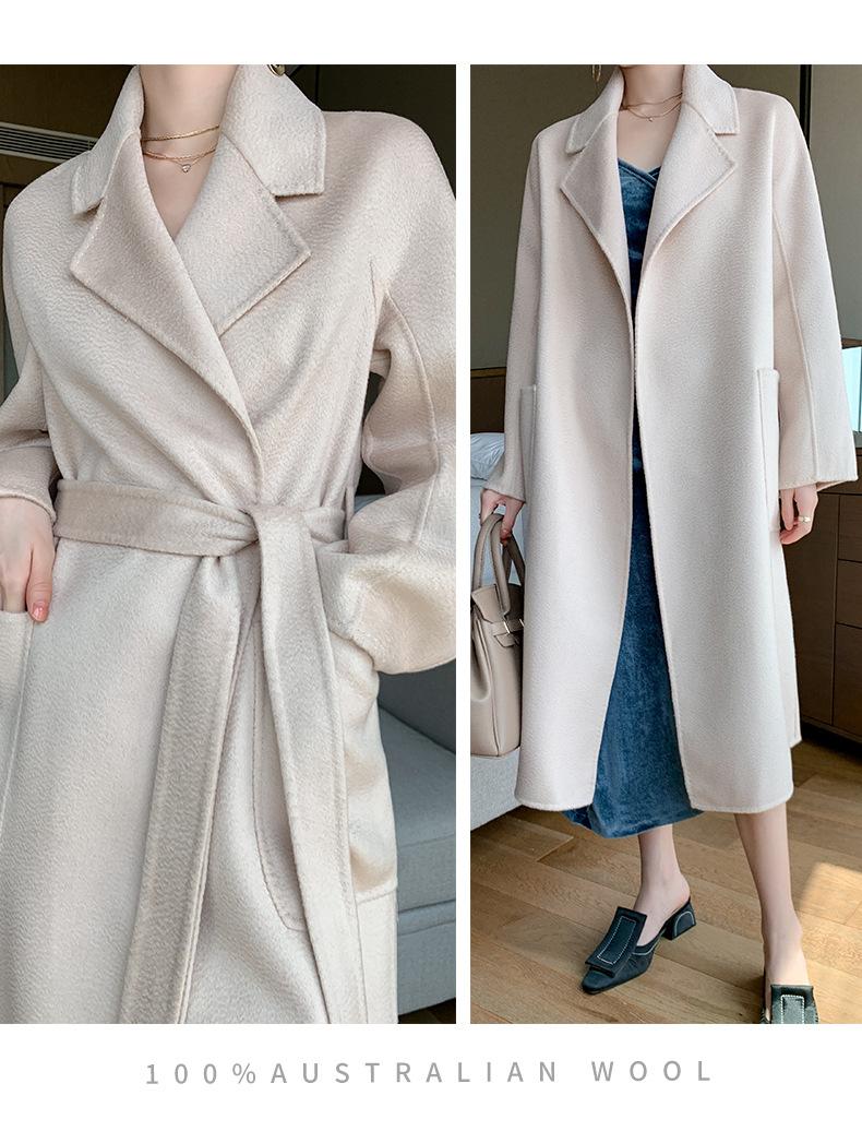 Abrigo de lana de doble cara nuevo de otoño e invierno, abrigo de ondulación de agua para mujer, abrigo de lana de doble cara de alta gama para mujer, abrigo largo