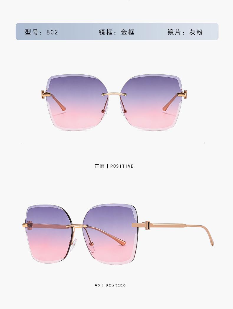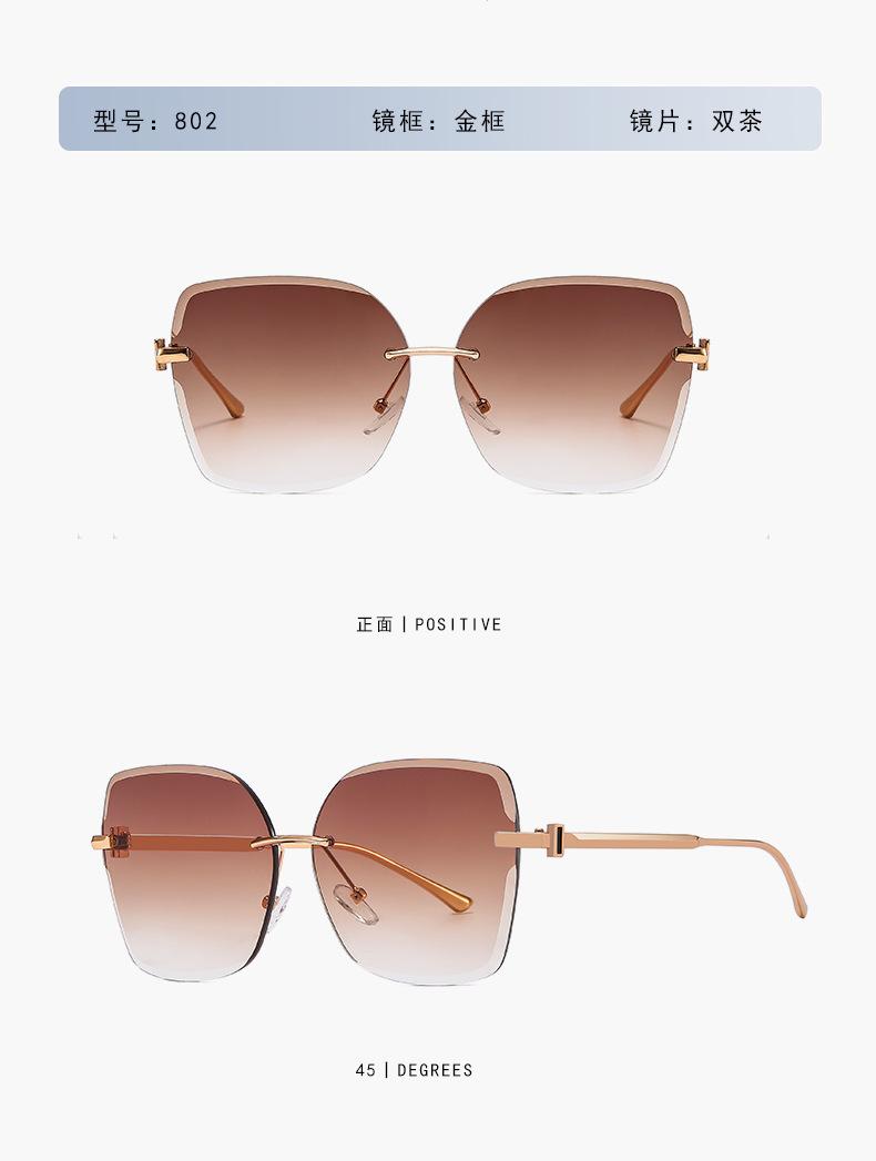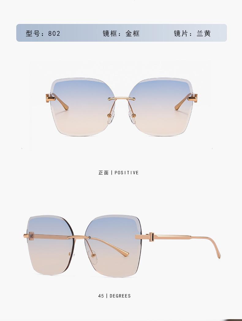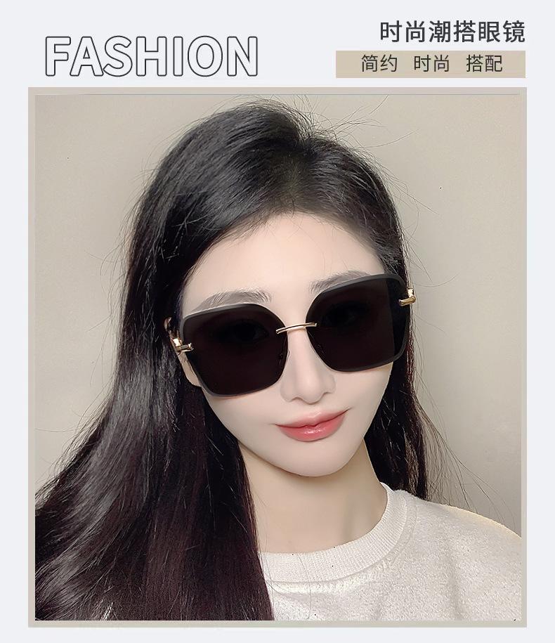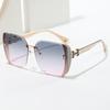 Nuevos lentes de sol sin montura para mujer, adornos metálicos, lentes de sol modernos, lentes estilo coreano, lentes de color degradado, lentes de montura grande