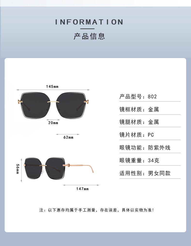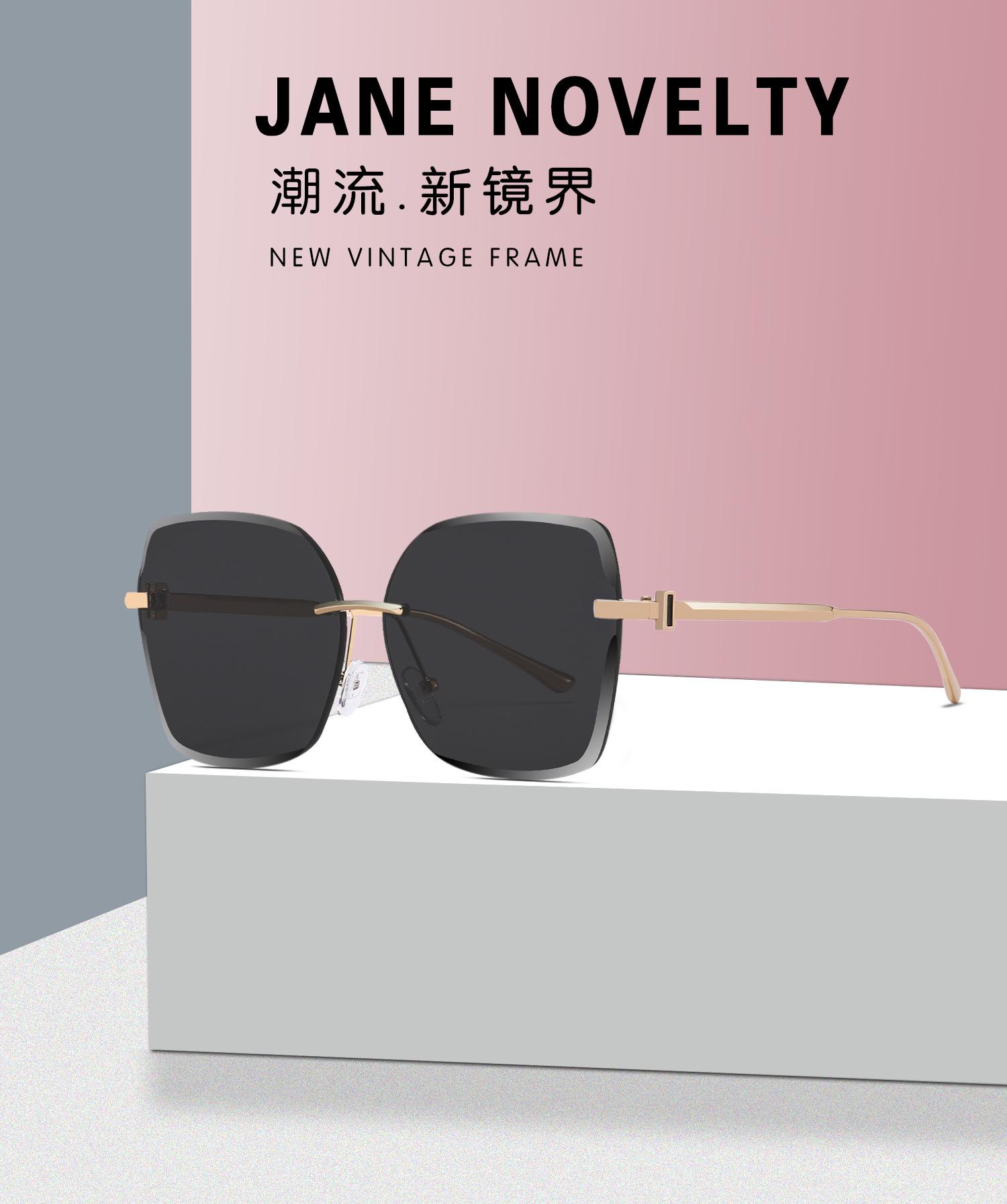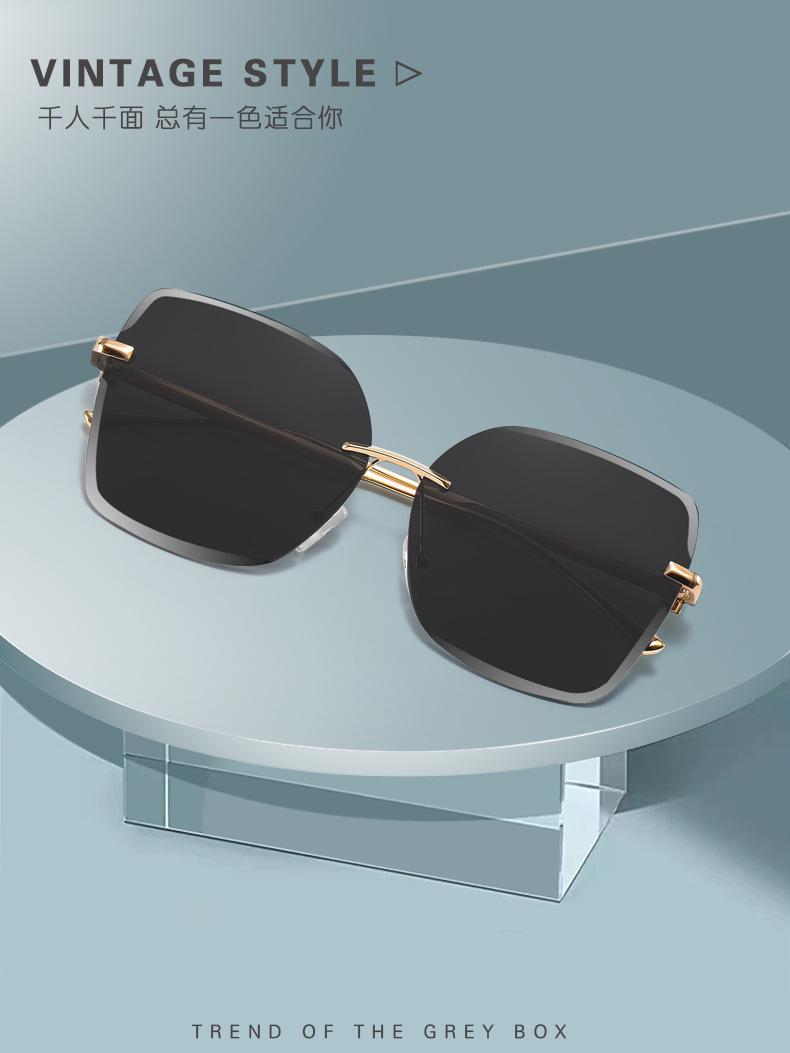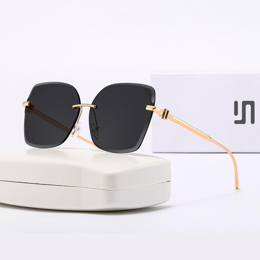 Nuevos lentes de sol sin montura para mujer, adornos metálicos, lentes de sol modernos, lentes estilo coreano, lentes de color degradado, lentes de montura grande