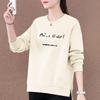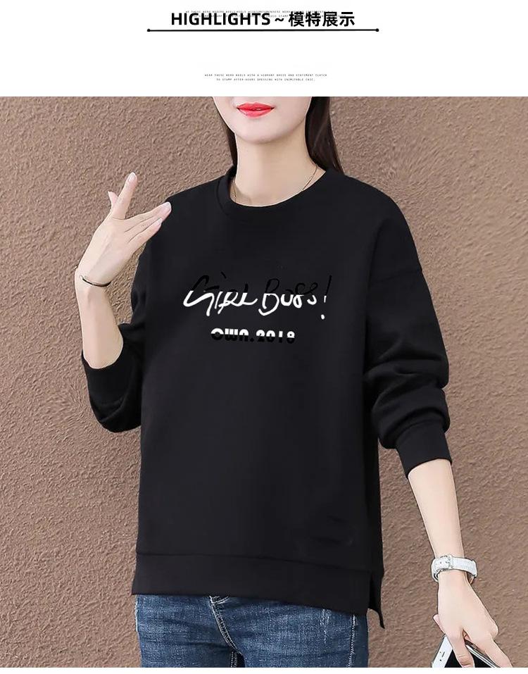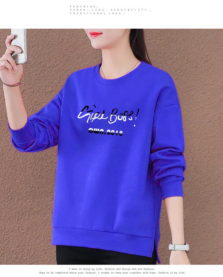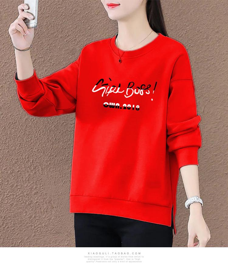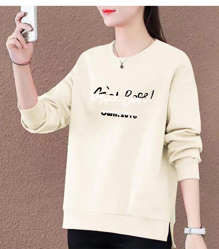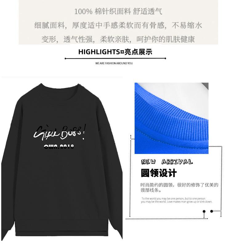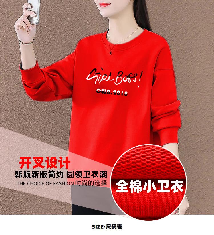 [100% algodón] Suéter de algodón con cuello redondo de otoño, abrigo fino holgado con abertura, top versátil de cuello redondo para mujer, moda
