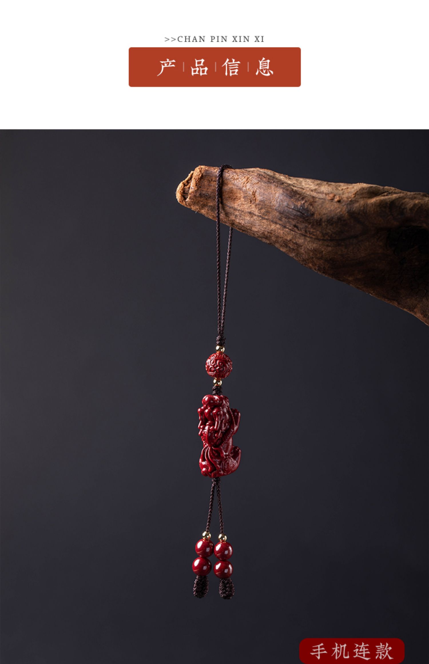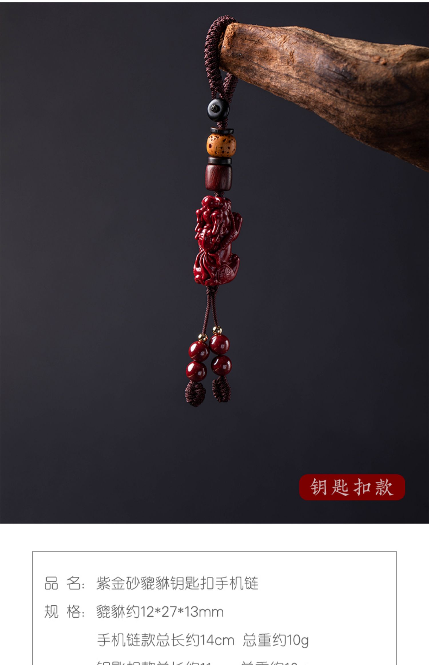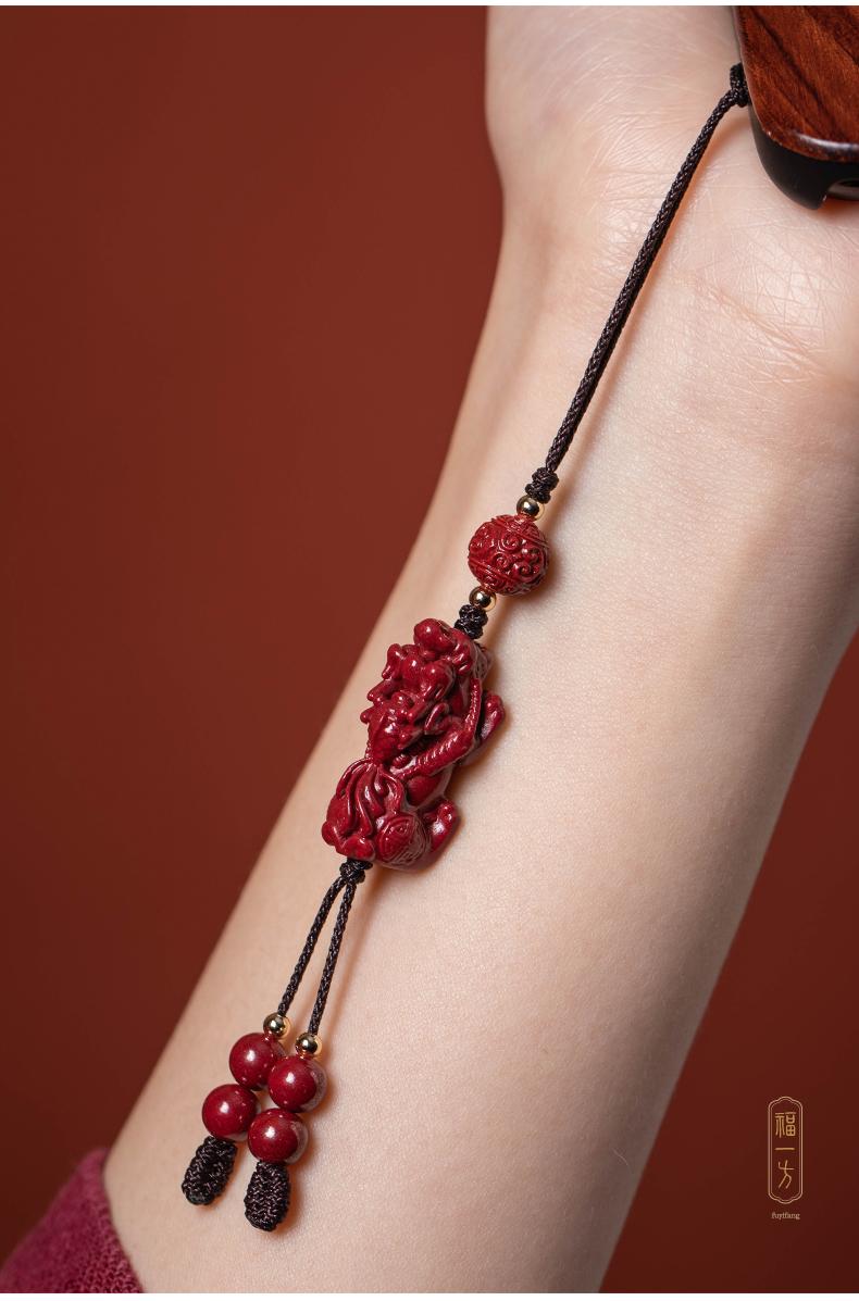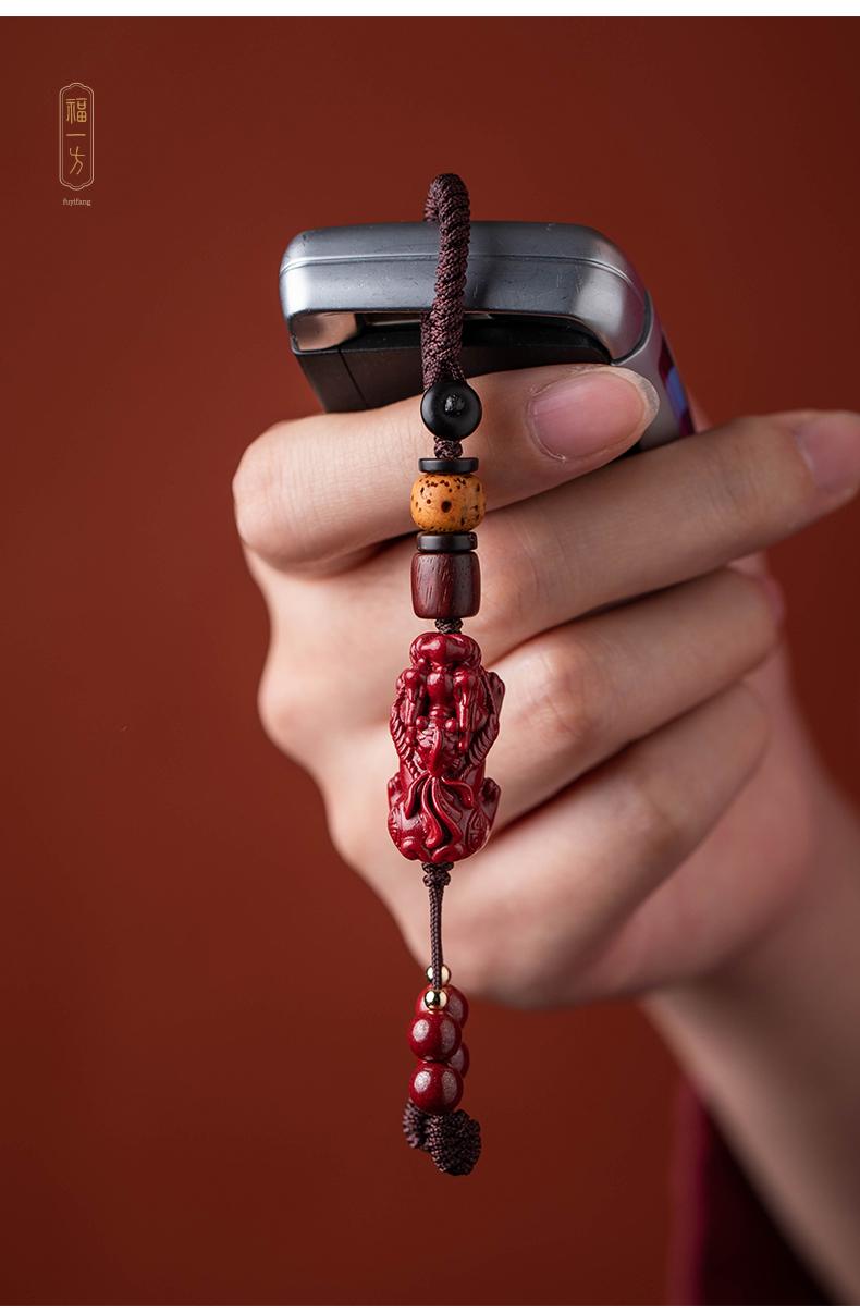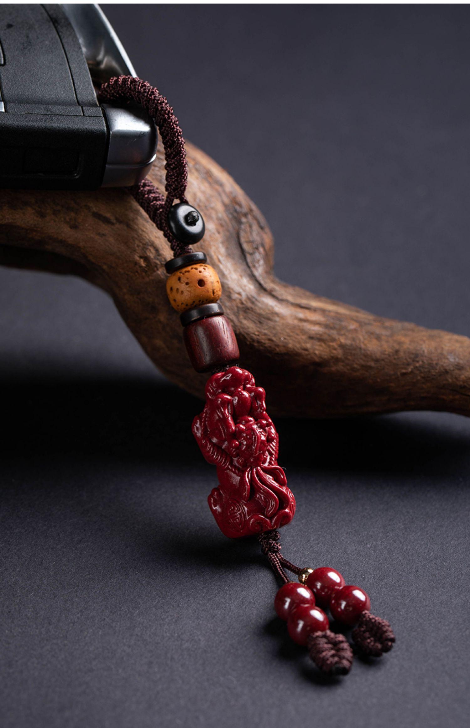 Colgante de piedra cinabrio original, valiente cadena para teléfono móvil, llavero con cordón y colgante portátil para hombres y mujeres