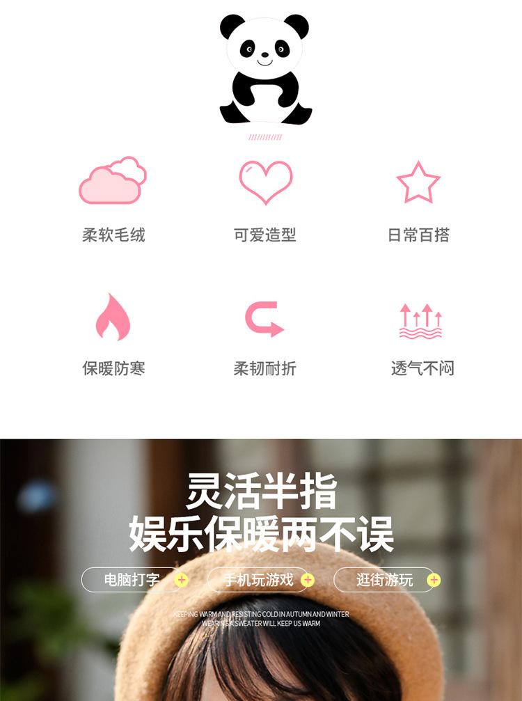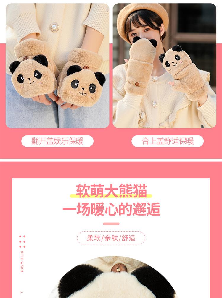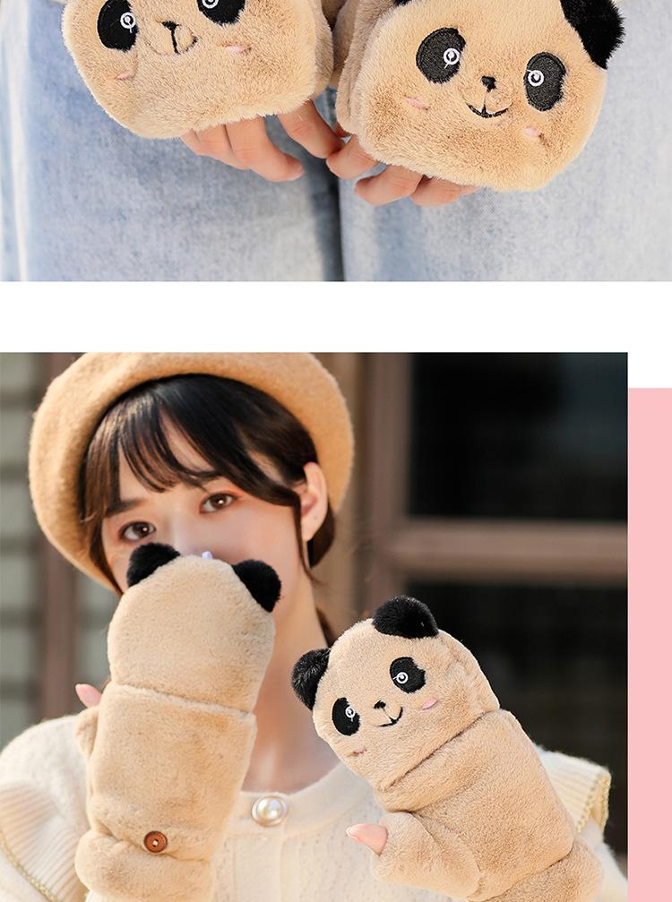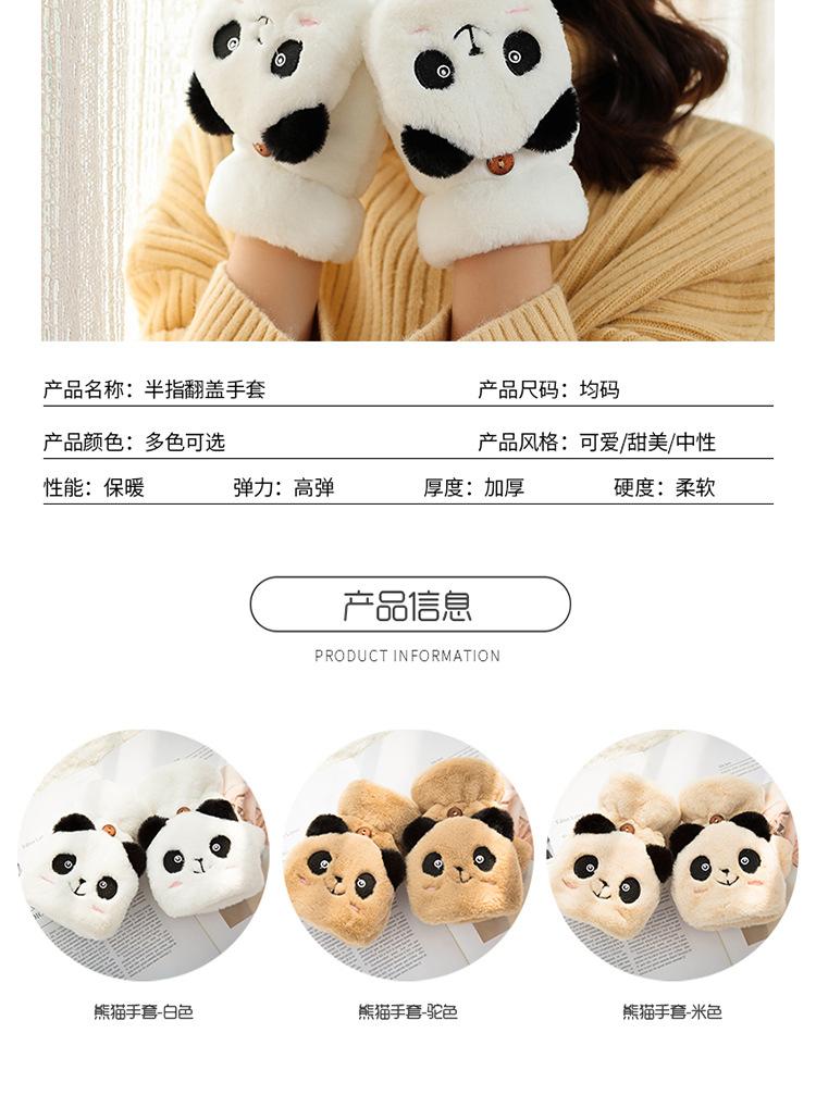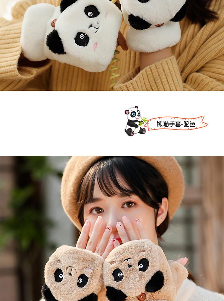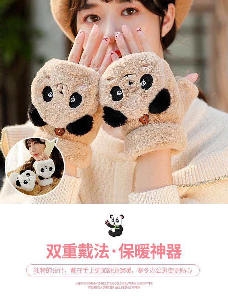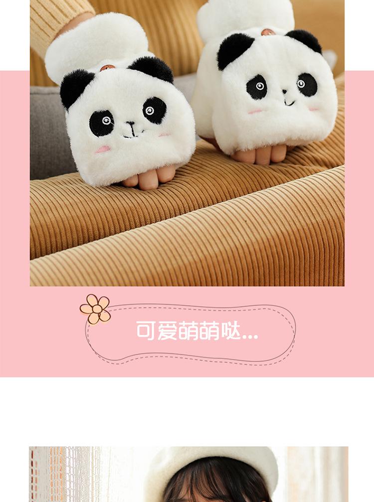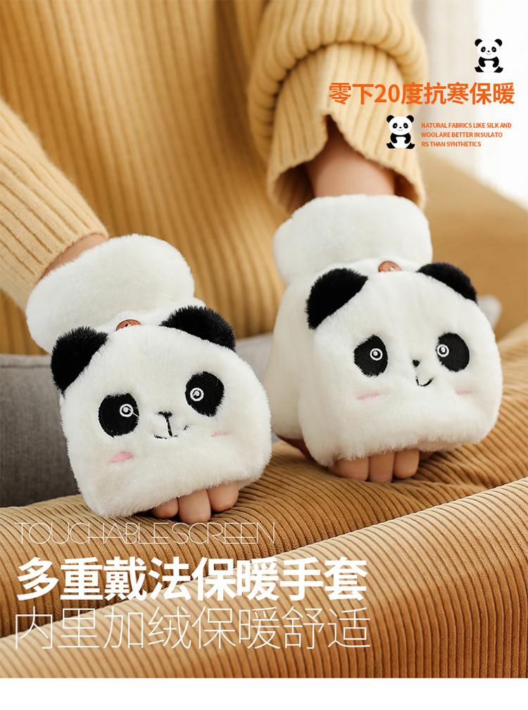 Guantes de Invierno de Felpa de Medio Dedo con Solapa, Cálidos, Gruesos, de Panda, sin Dedos, Tejidos, para Estudiante, para Escribir, con Suave Piel de Conejo