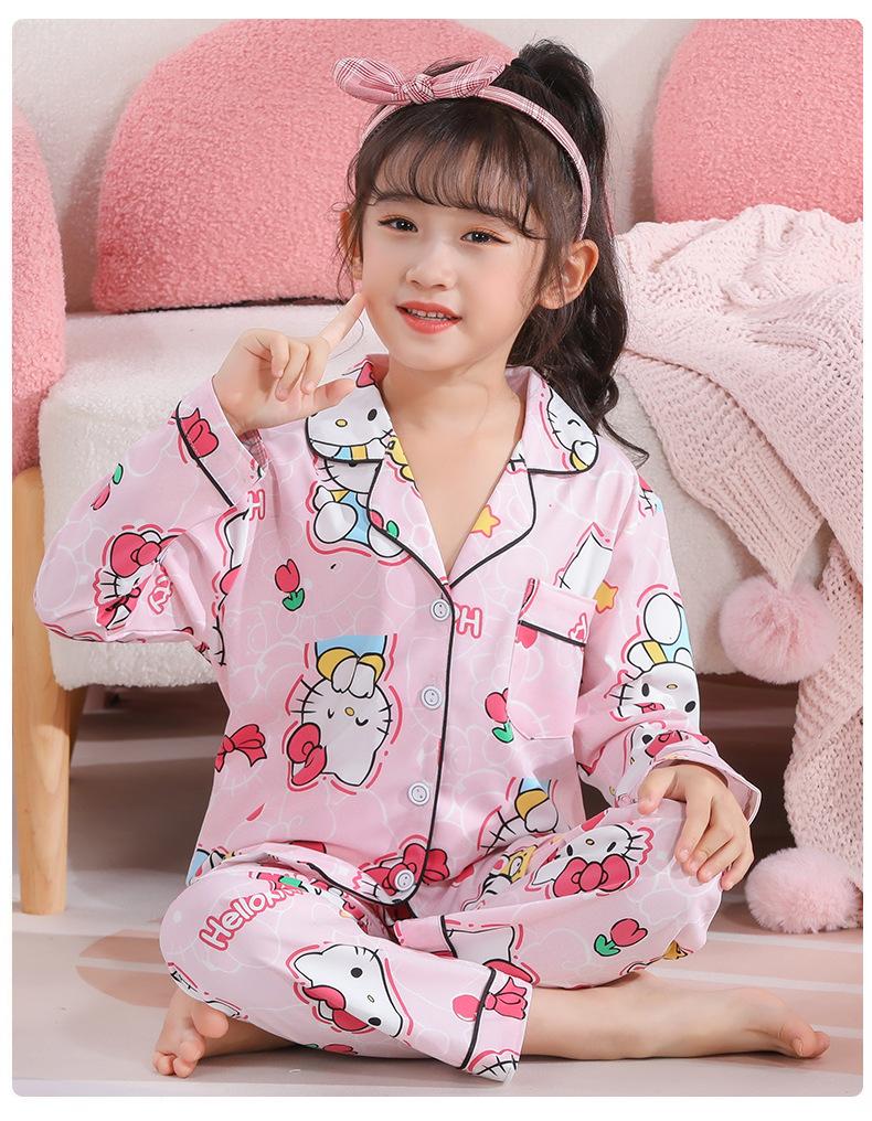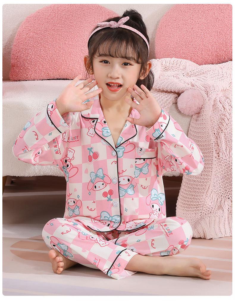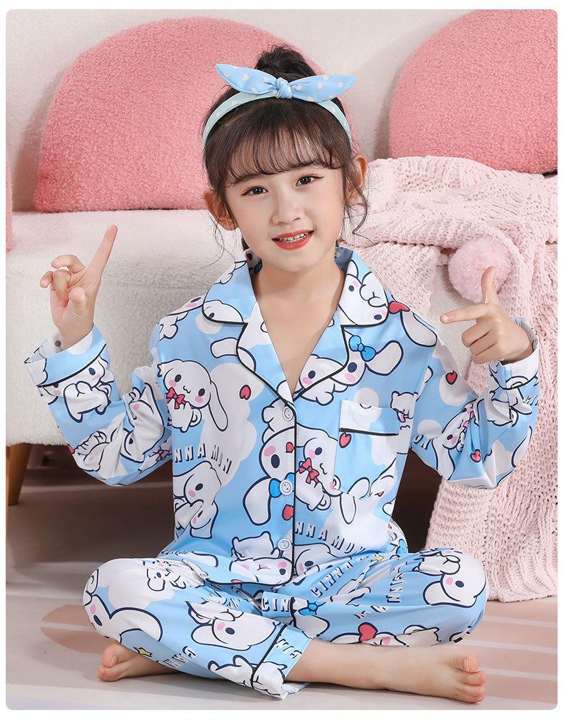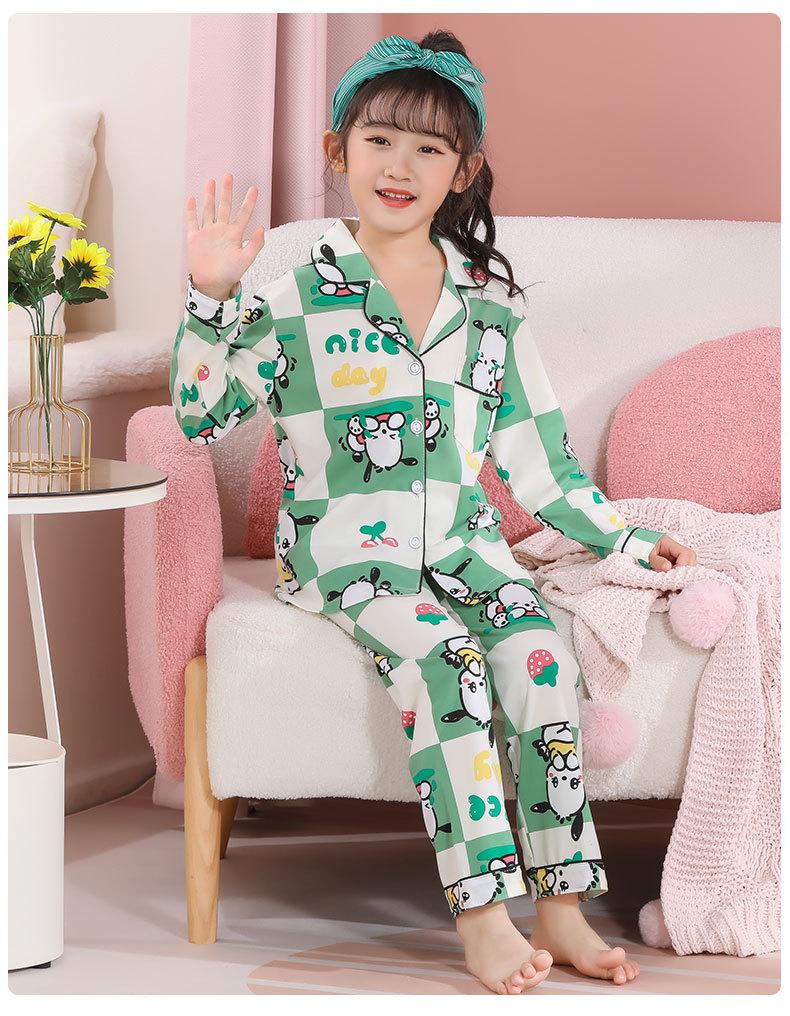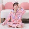 Pijamas de otoño para niños, cárdigan de manga larga con botones y solapa para niñas, pijamas para niños medianos y grandes, ropa de casa de dibujos animados para niños, ropa exterior