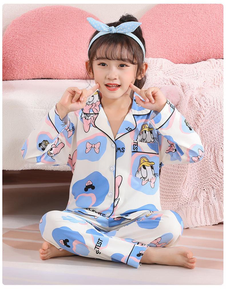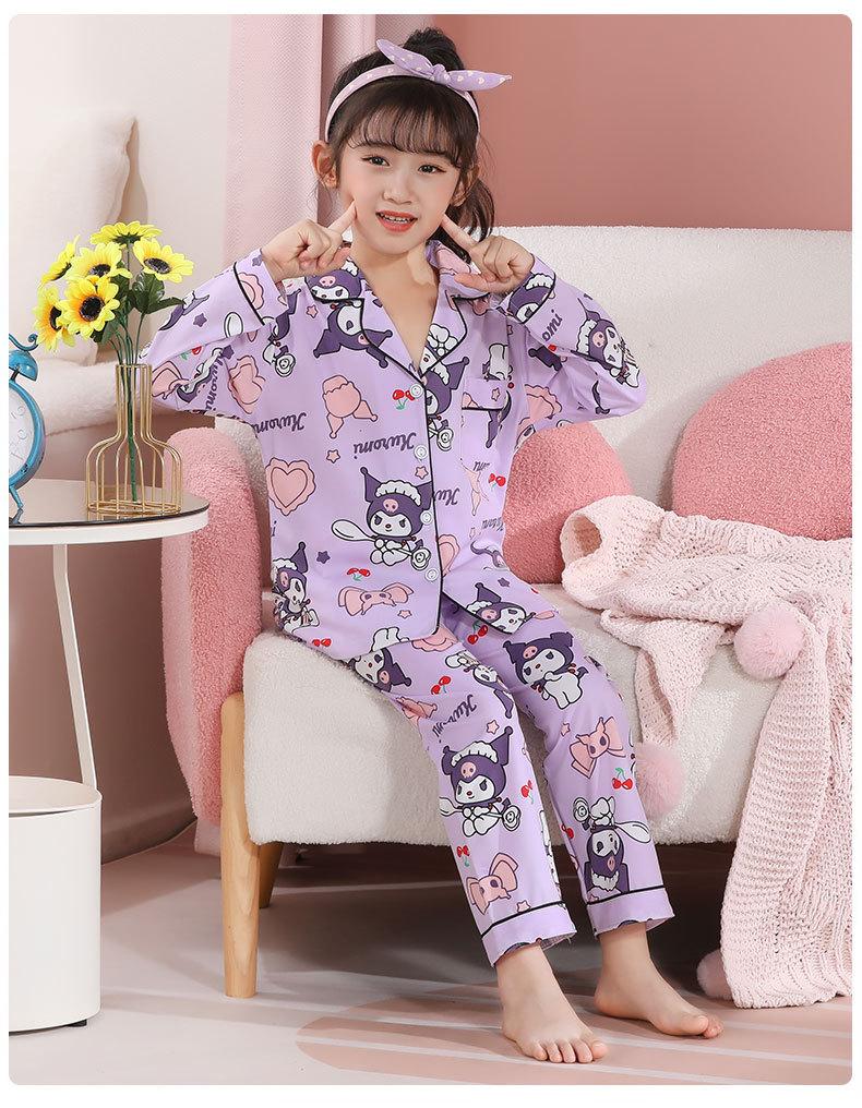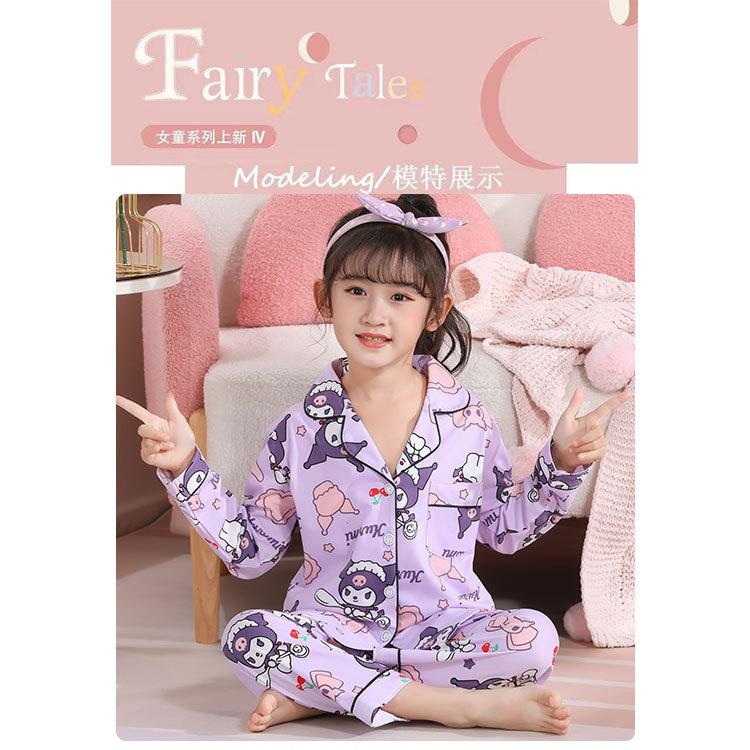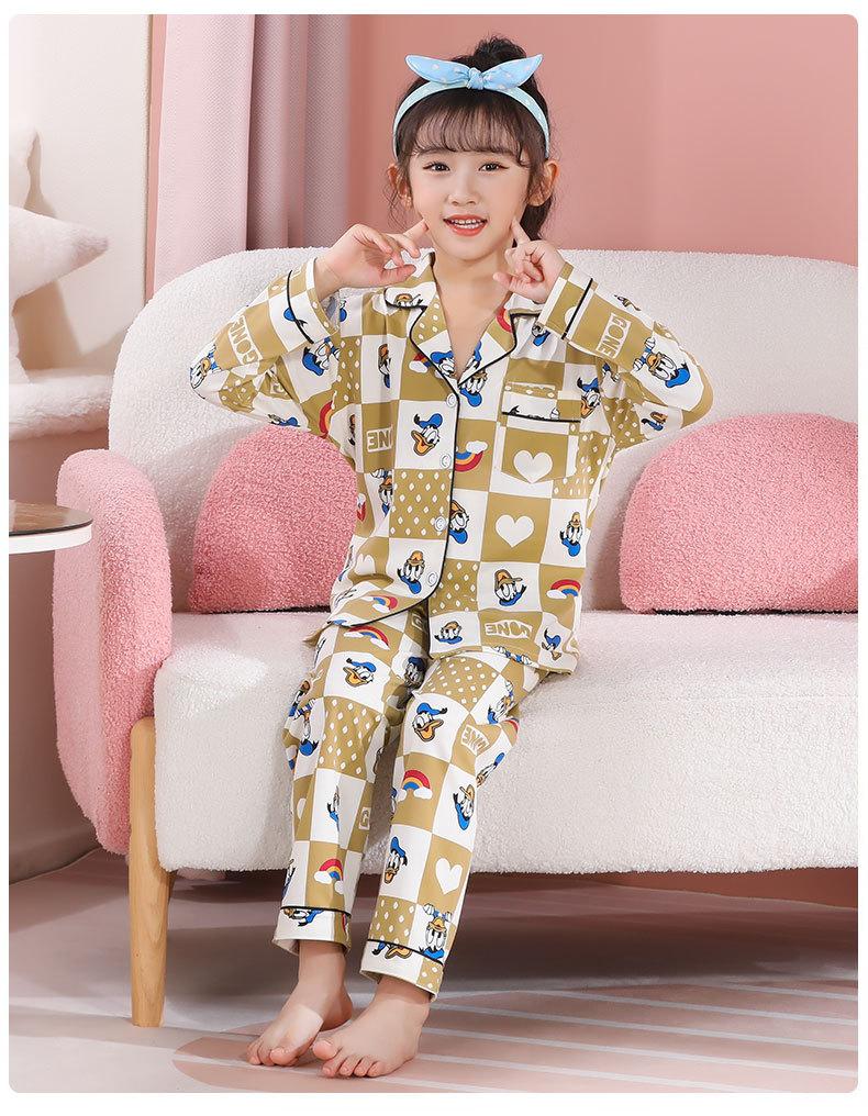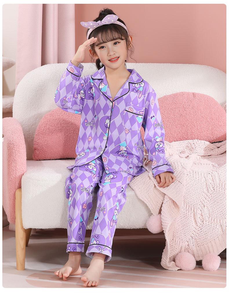Pijamas de otoño para niños, cárdigan de manga larga con botones y solapa para niñas, pijamas para niños medianos y grandes, ropa de casa de dibujos animados para niños, ropa exterior
