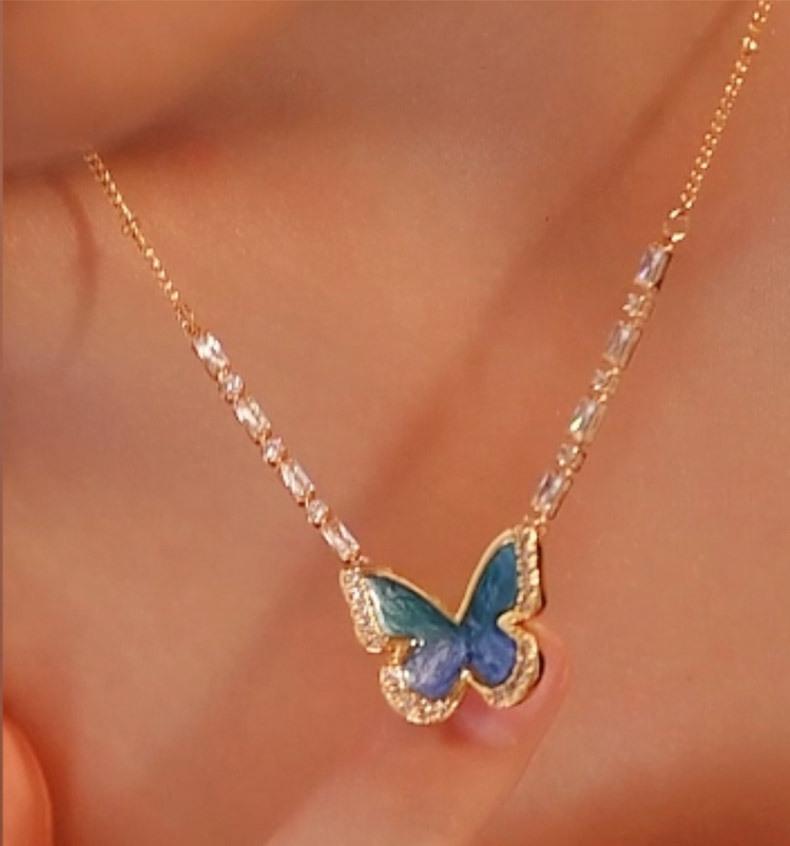 Collar de mariposa de esmalte, elegante collar azul degradado de ensueño para mujer, estilo Ins, nicho, elegante collar de alta gama, accesorios