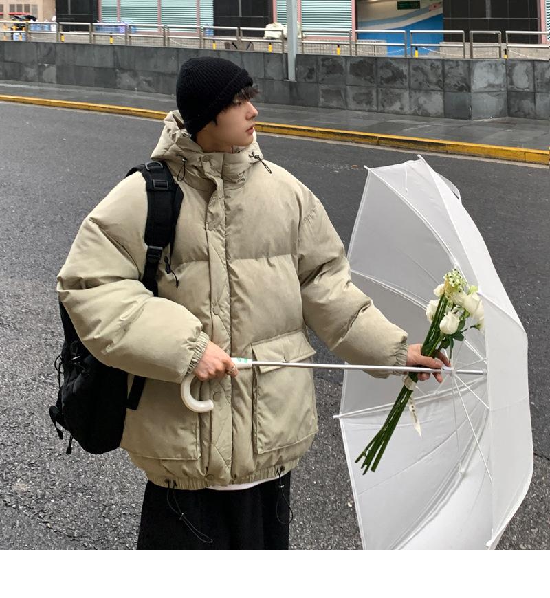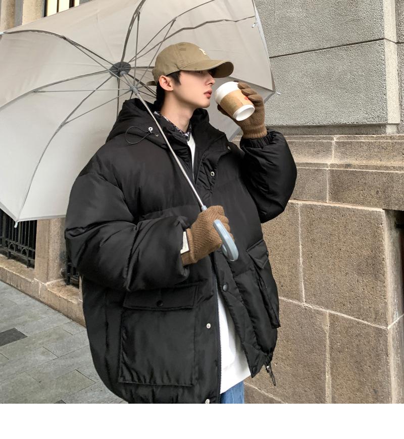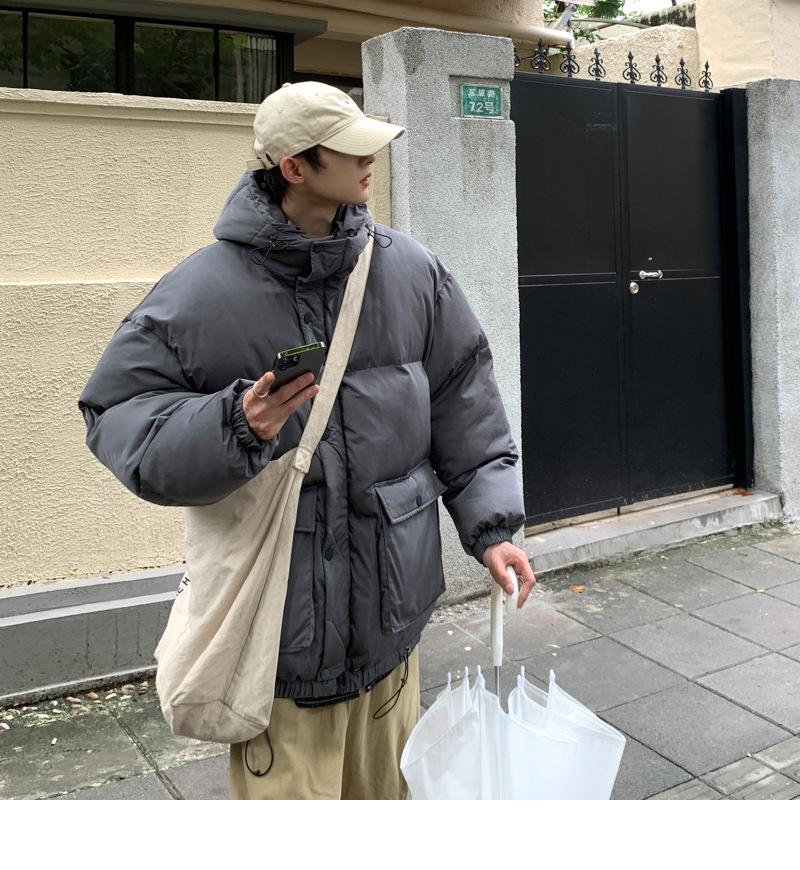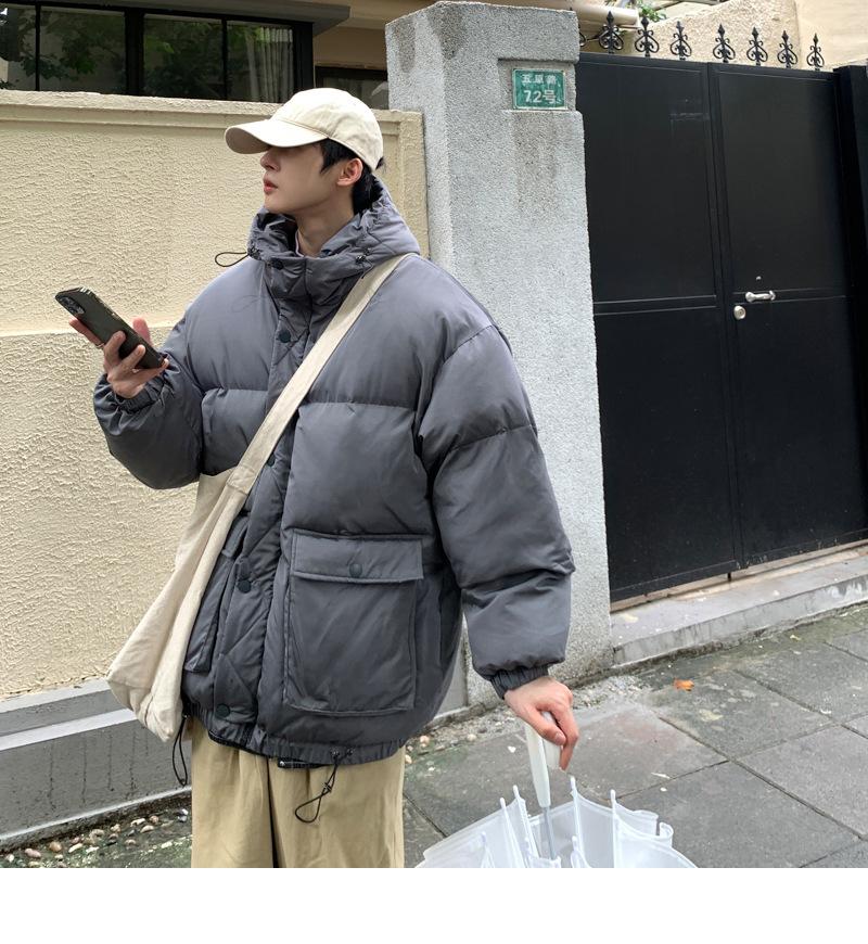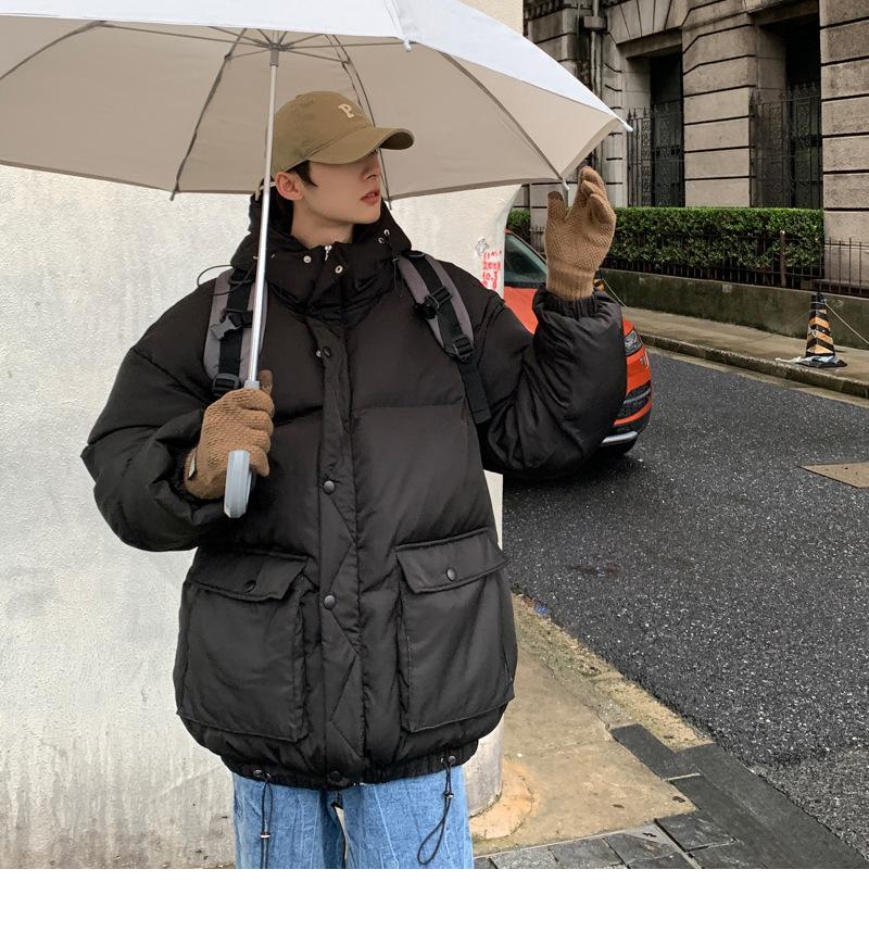 2023 nuevo abrigo acolchado de algodón con capucha y bolsillo de parche tridimensional de color sólido M331