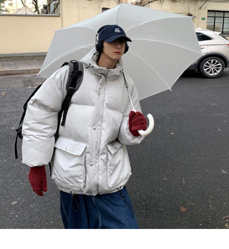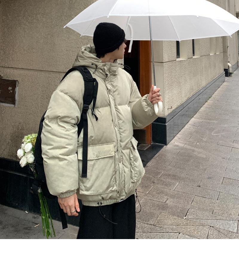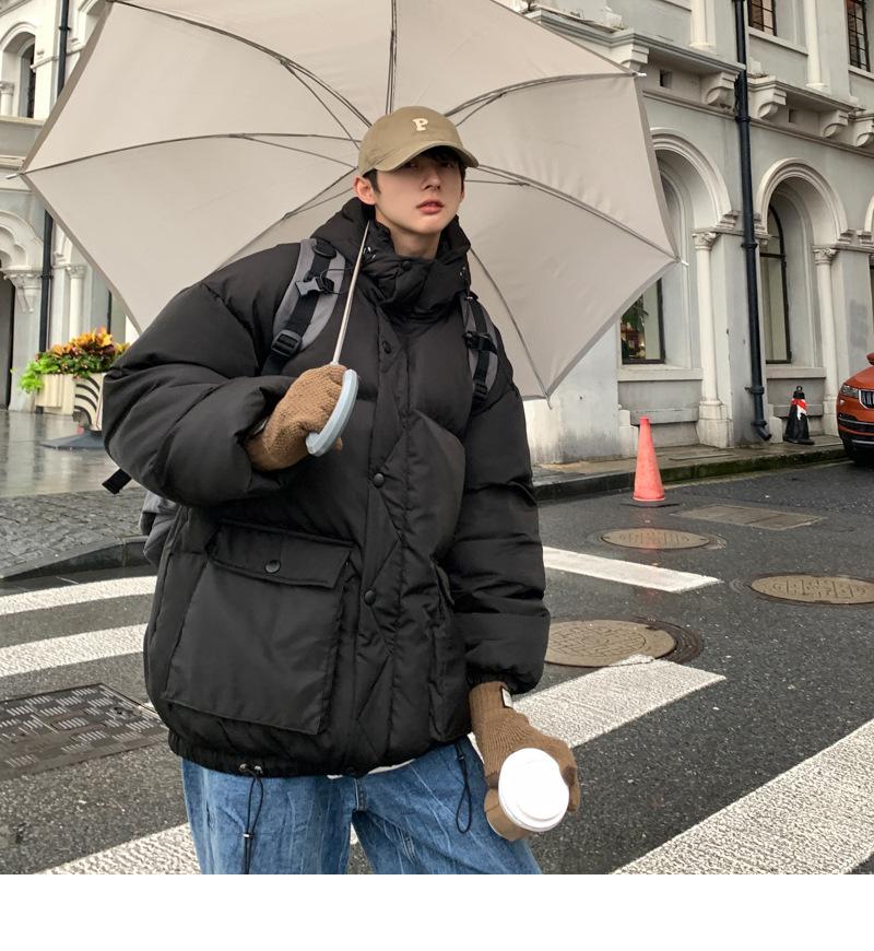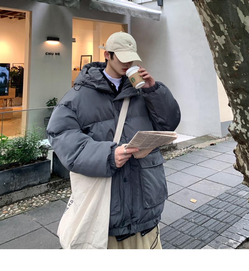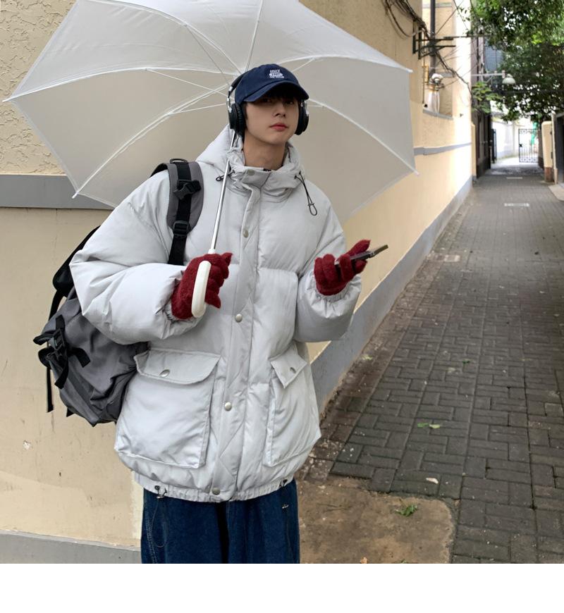 2023 nuevo abrigo acolchado de algodón con capucha y bolsillo de parche tridimensional de color sólido M331