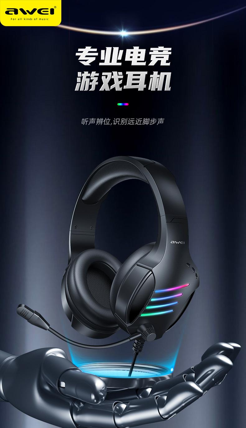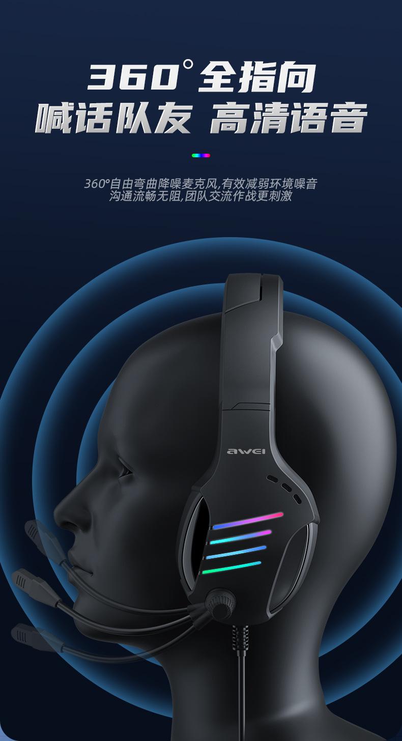 Auriculares con cable y micrófono para deportes electrónicos AWEI, nuevos y coloridos, con micrófono para apuntar todo el cuerpo, para escuchar y discriminar la voz.
